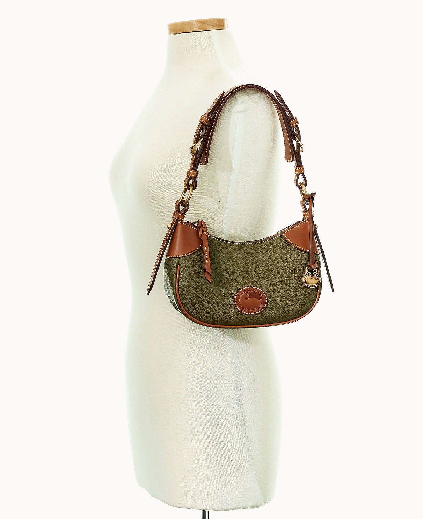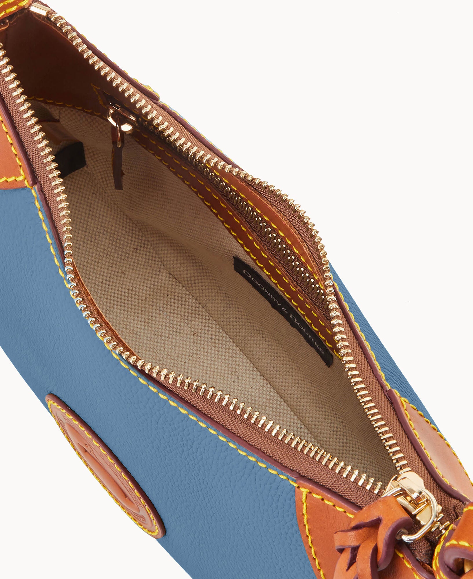 One inside zipper pocket. Handle drop length 9″. Lined. Zipper closure.