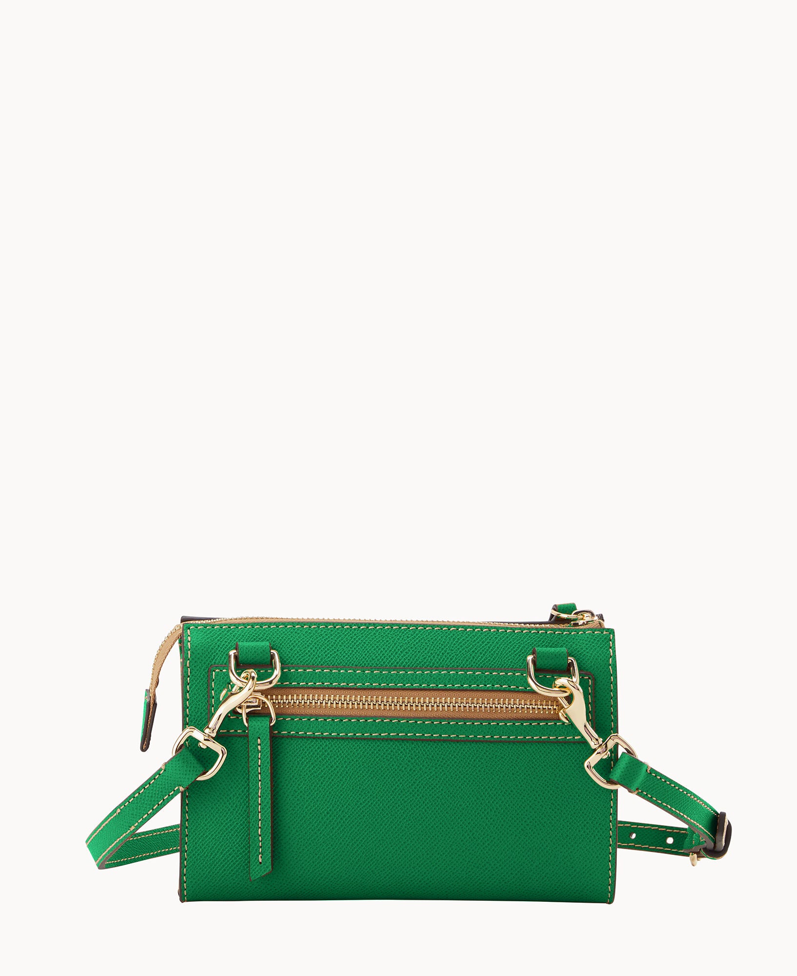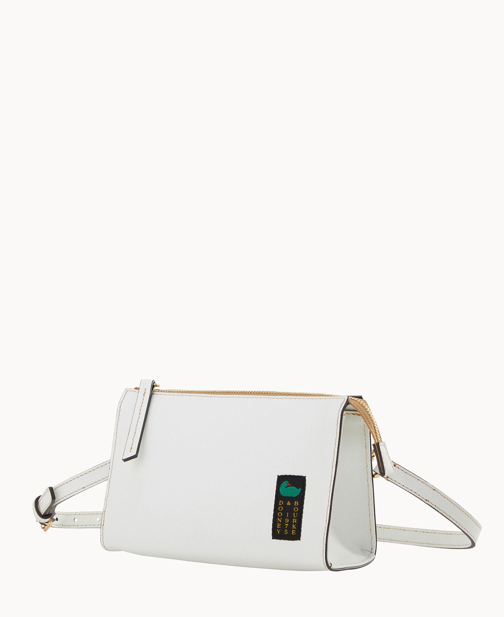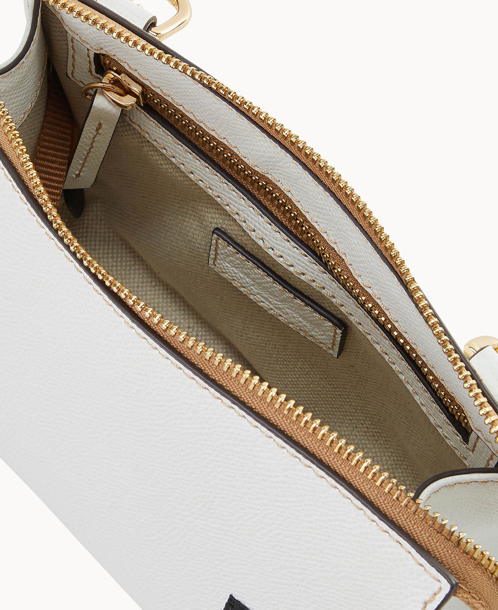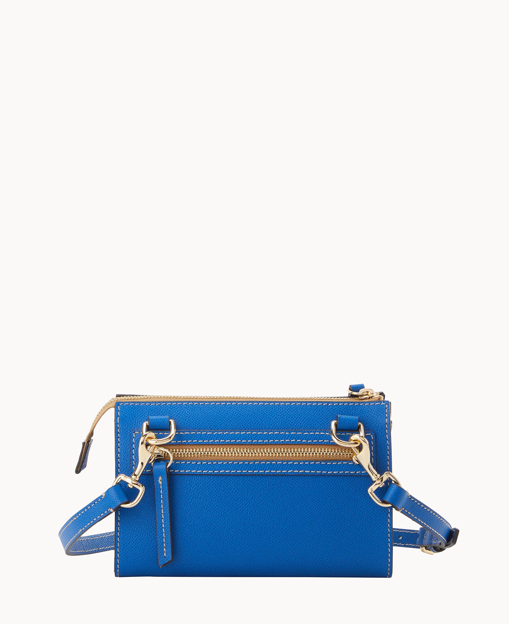 Outside zip pocket. Inside zip pocket. Inside pocket. Inside key hook. Adjustable strap. Detachable strap. Removable strap. Strap drop length 25″. Lined. Zipper closure.
