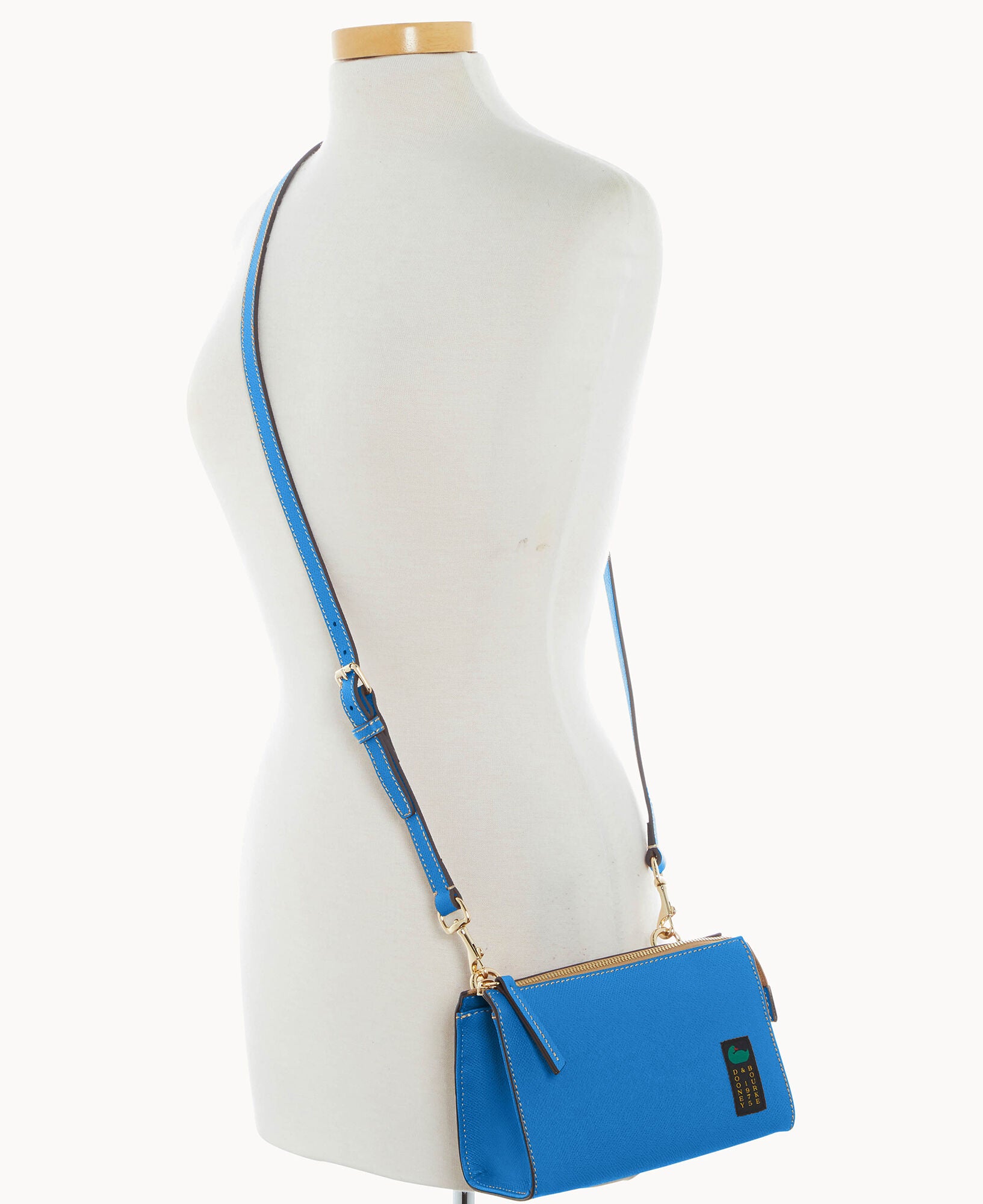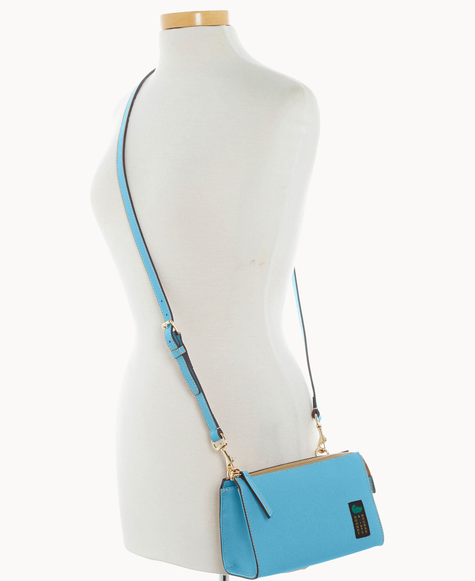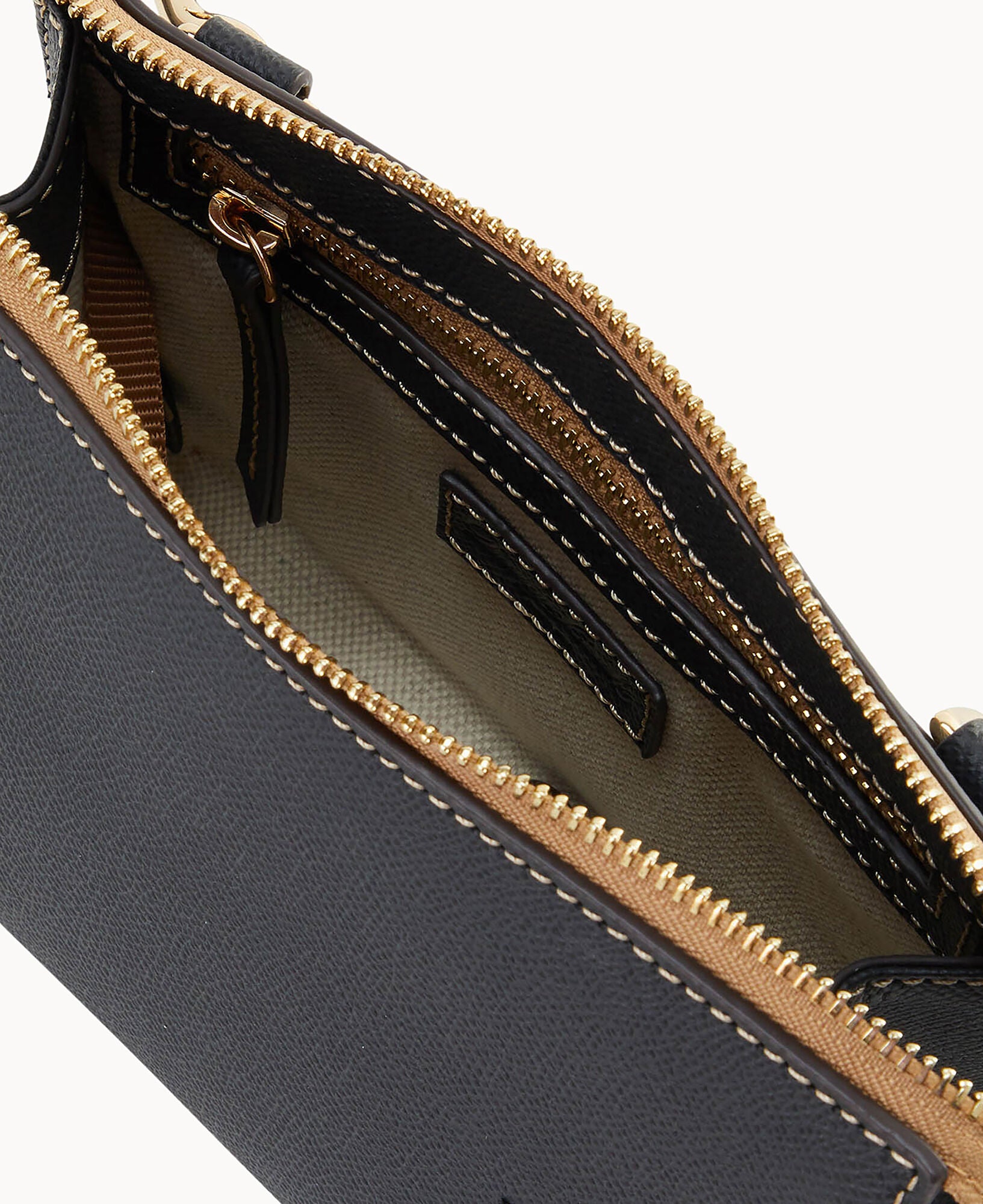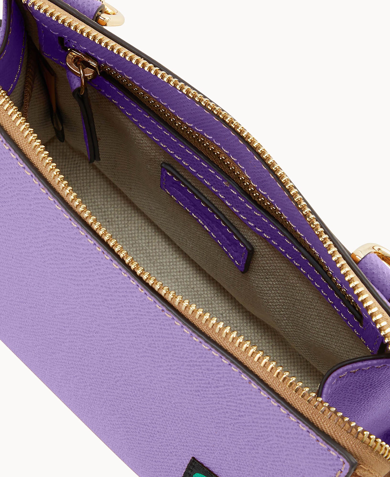 Outside zip pocket. Inside zip pocket. Inside pocket. Inside key hook. Adjustable strap. Detachable strap. Removable strap. Strap drop length 25″. Lined. Zipper closure.