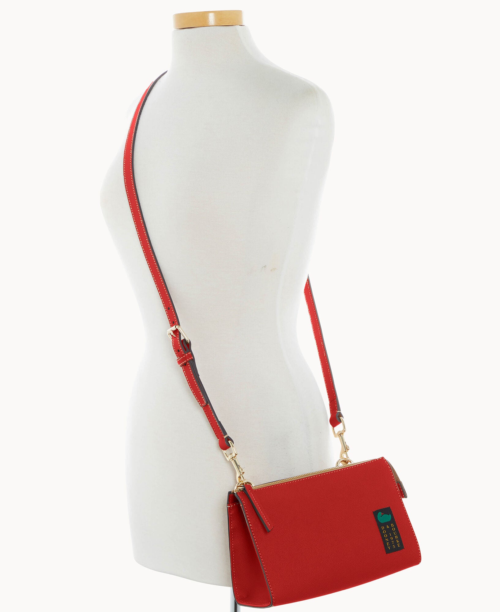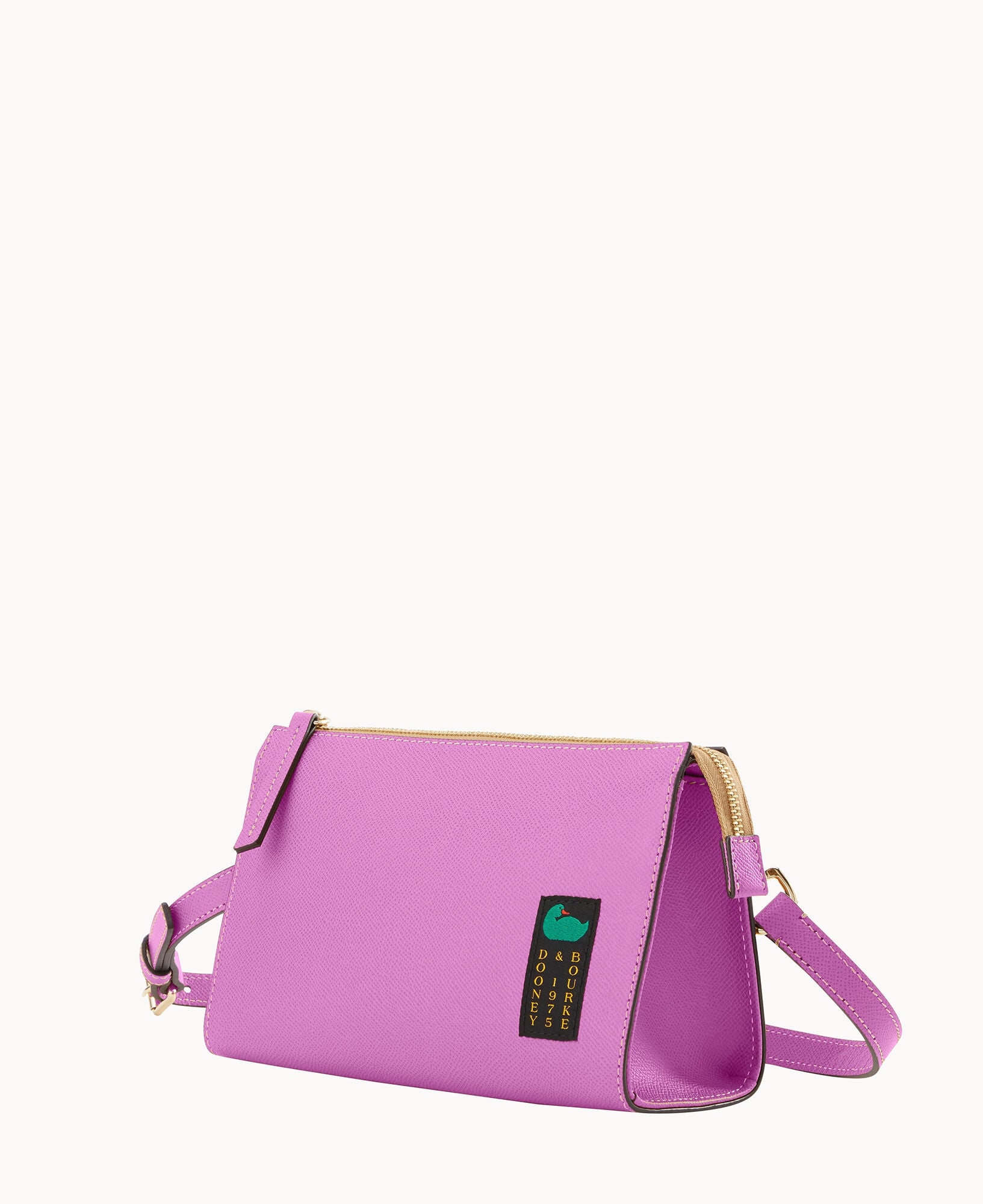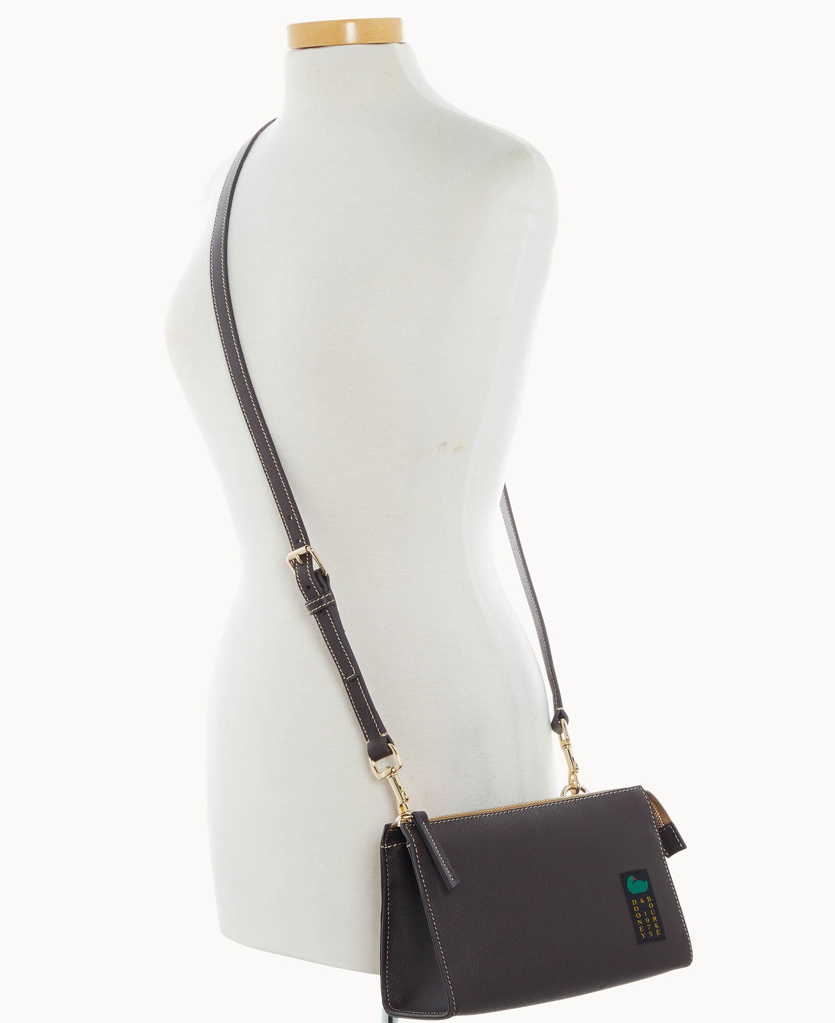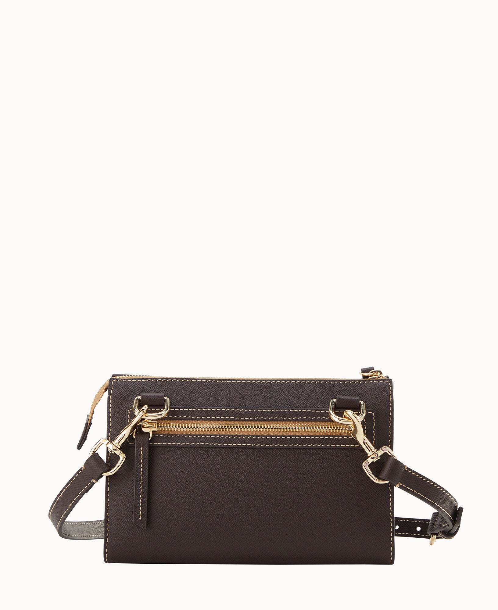 Outside zip pocket. Inside zip pocket. Inside pocket. Inside key hook. Adjustable strap. Detachable strap. Removable strap. Strap drop length 25″. Lined. Zipper closure.