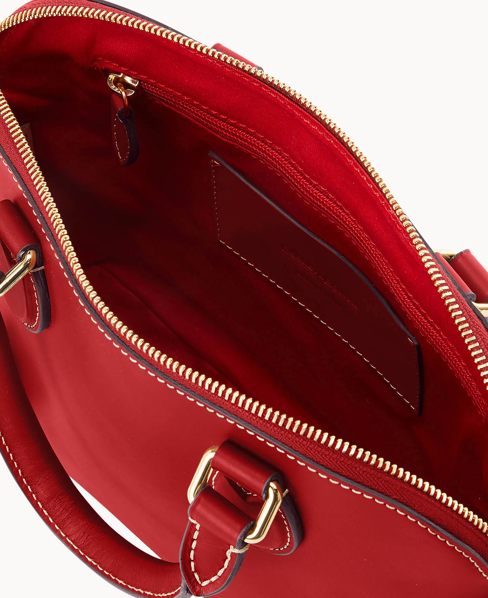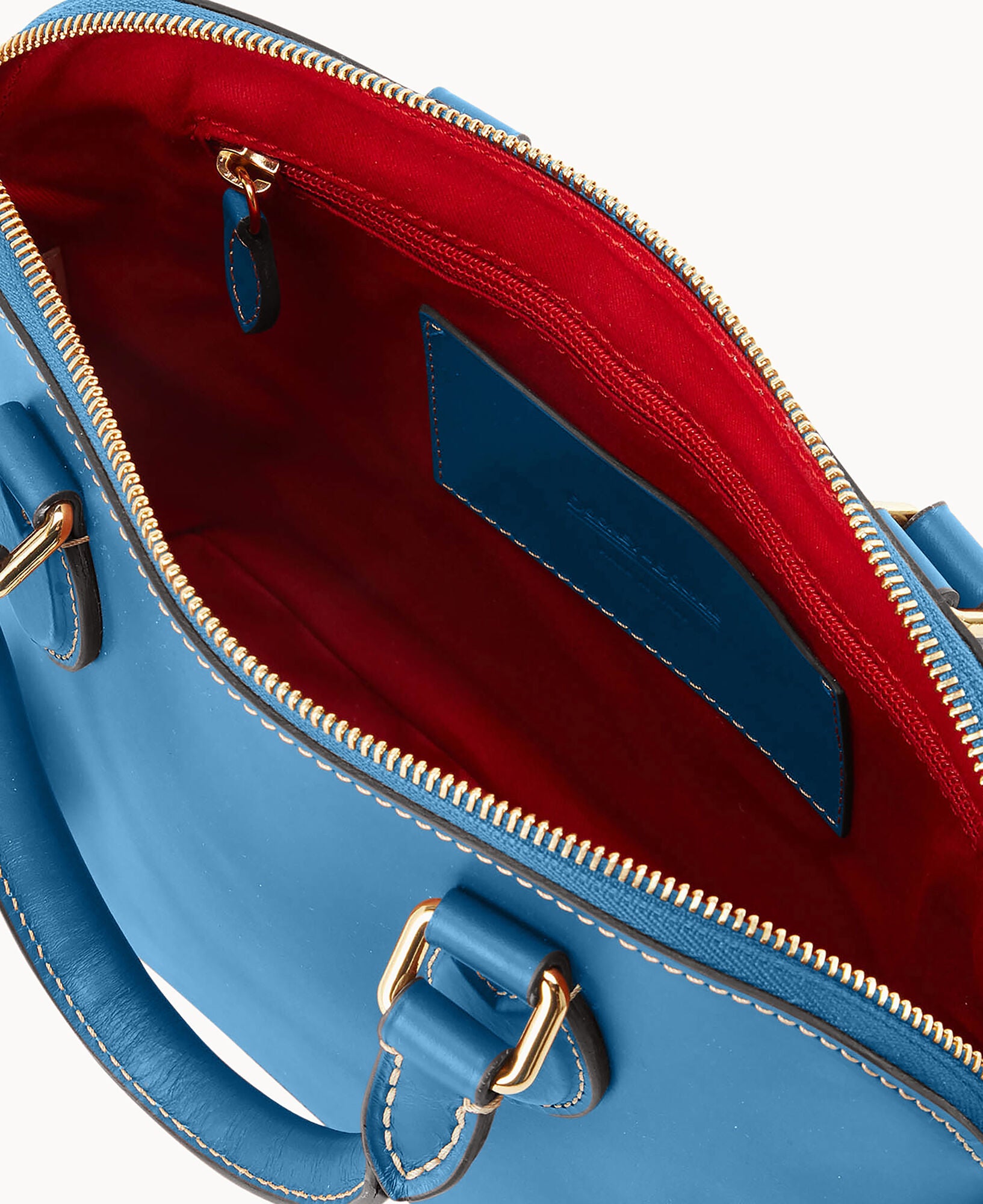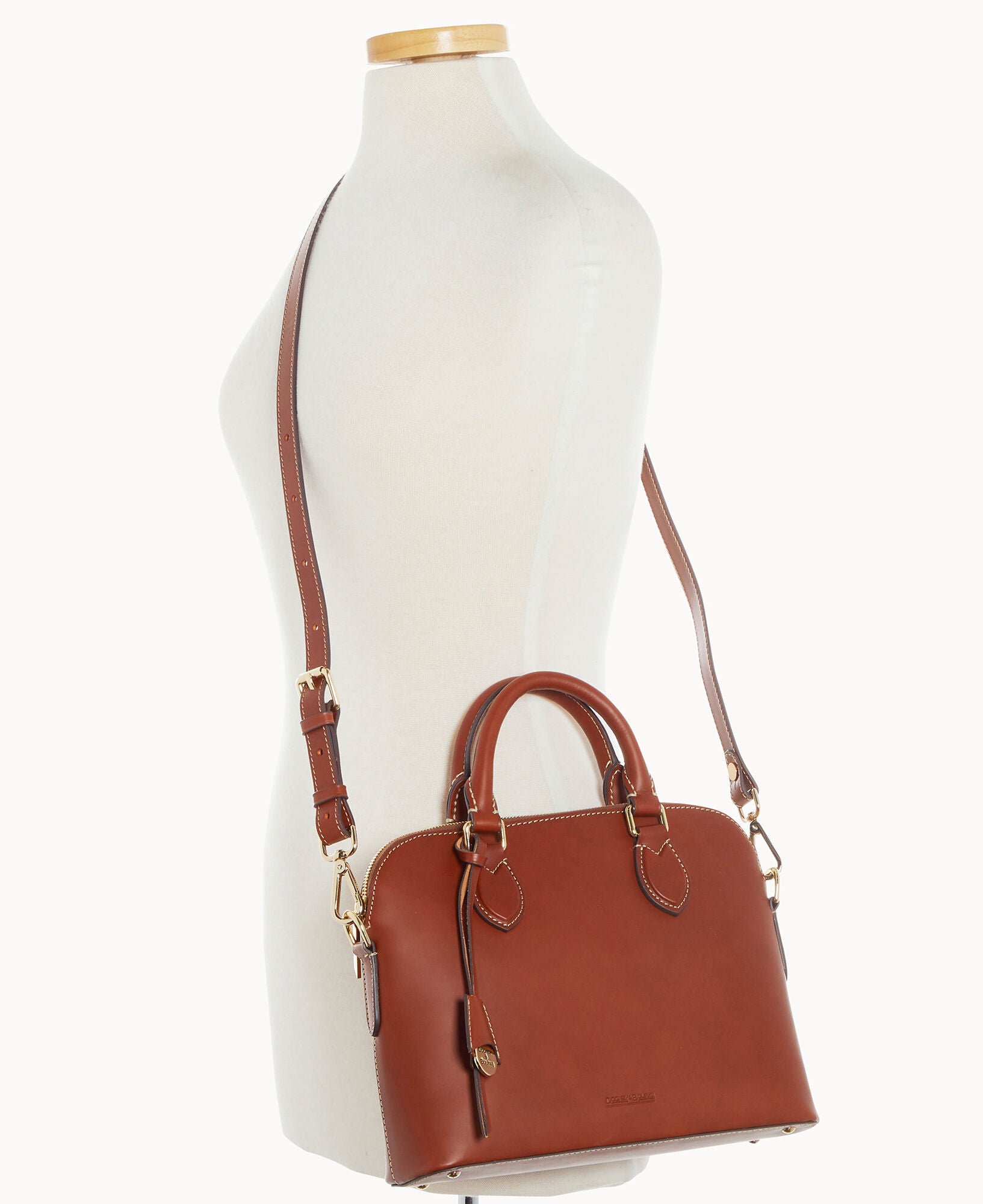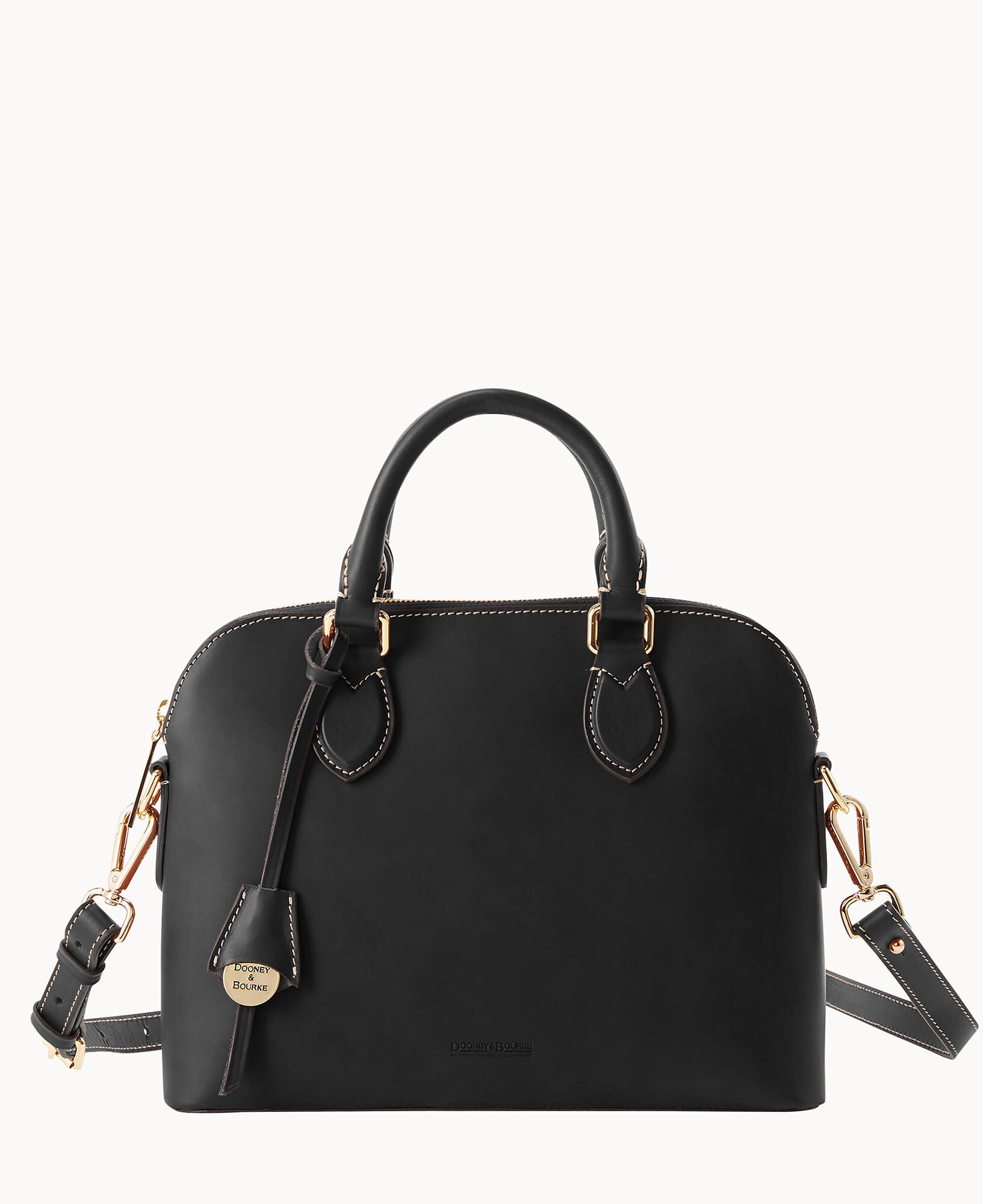 One inside slip pocket. One inside zip pocket. Cell phone pocket. Adjustable strap and detachable strap. Strap drop length 24″. Handle drop length 3.25″. Hanging medallion. Lined. Feet. Zipper closure.