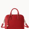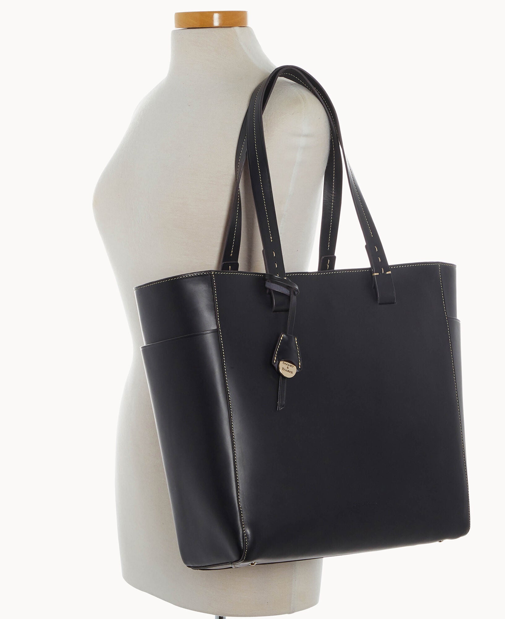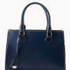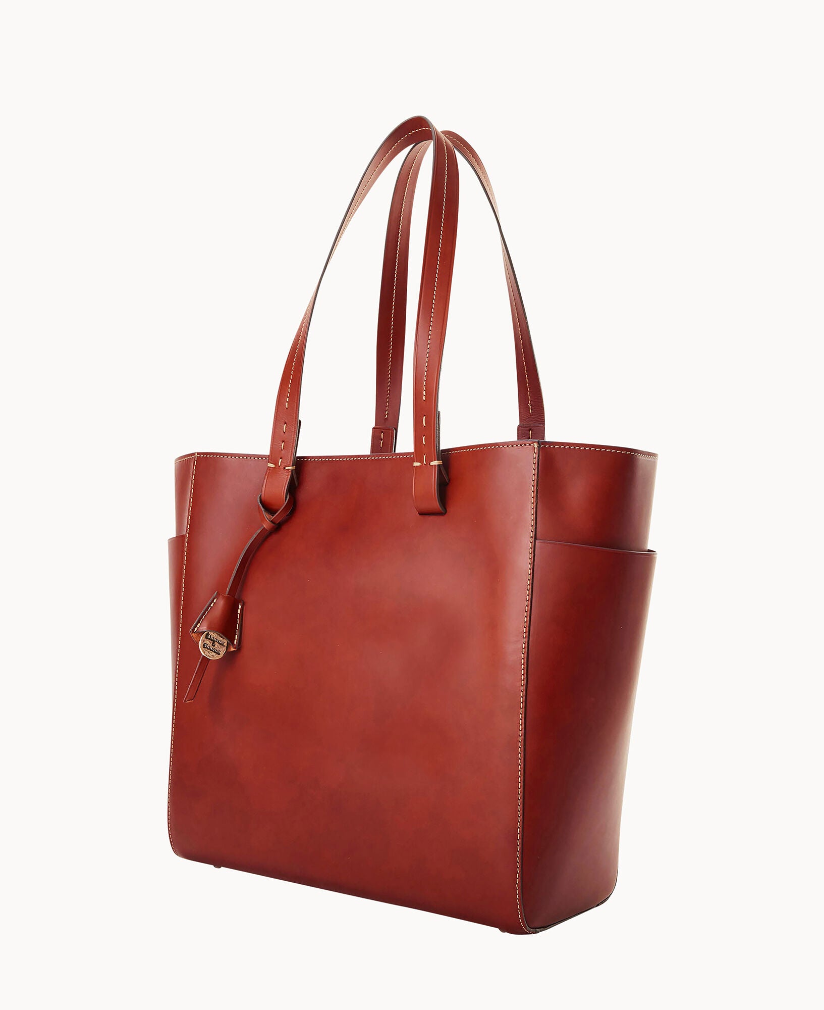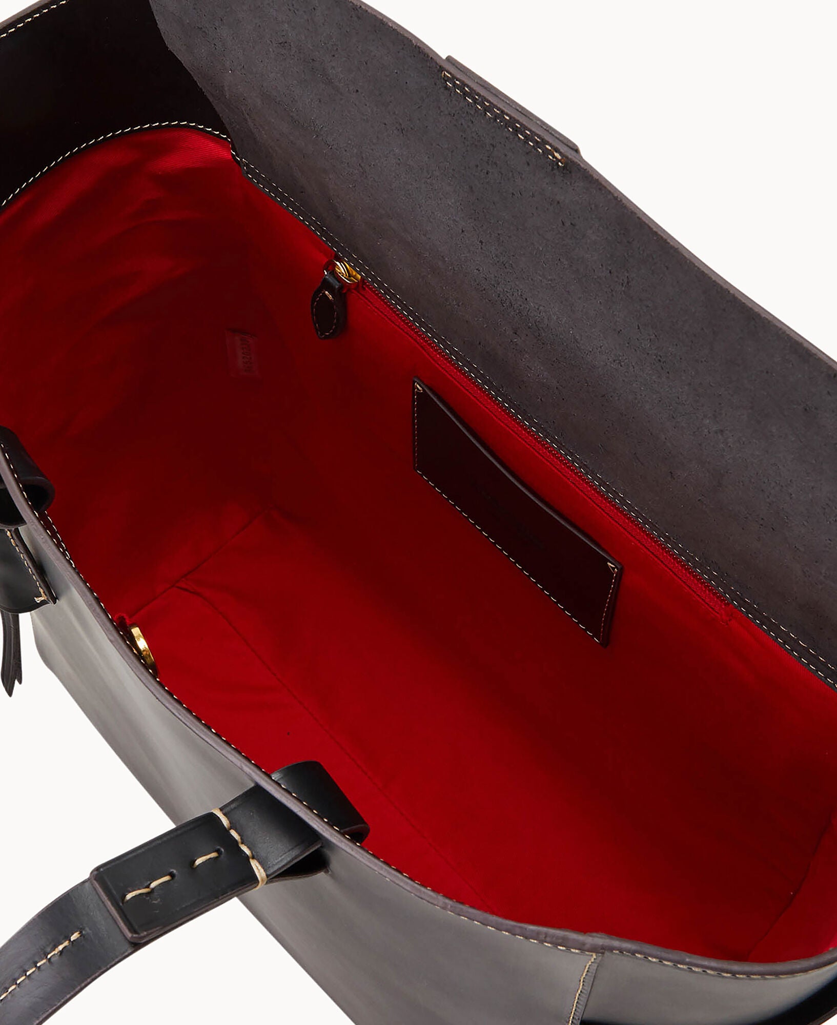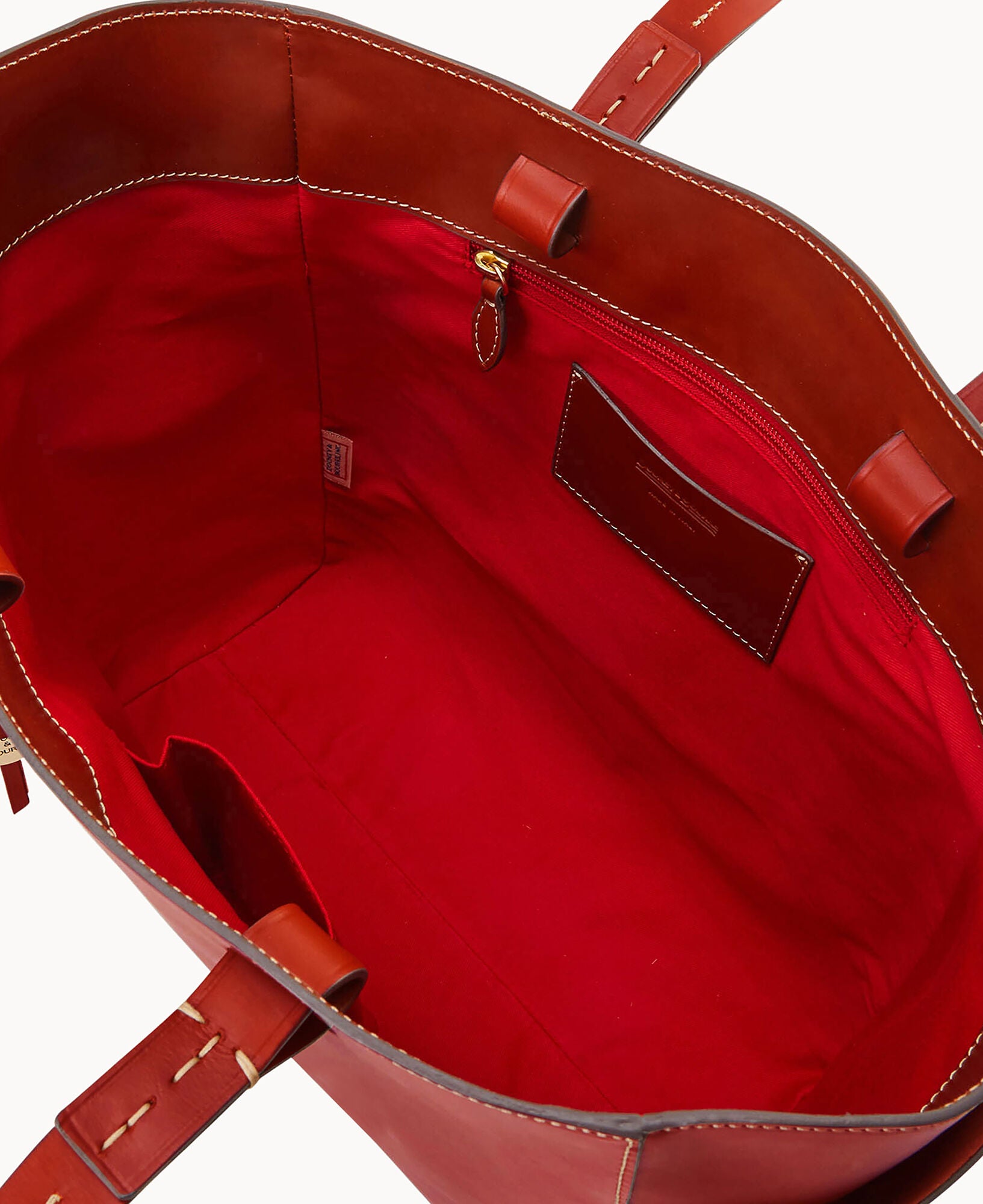 Two outside pockets. One inside pocket. One inside zip pocket. One inside credit card slot. Handle drop length 11″. Magnetic snap closure. Feet. Removable medallion. Lined.