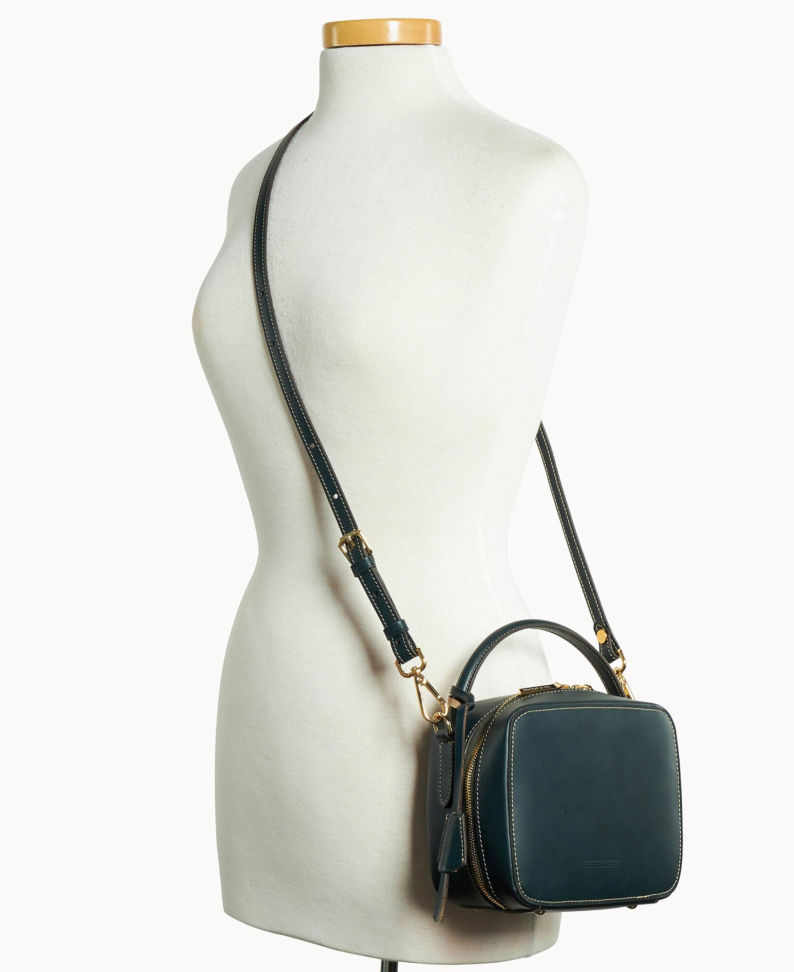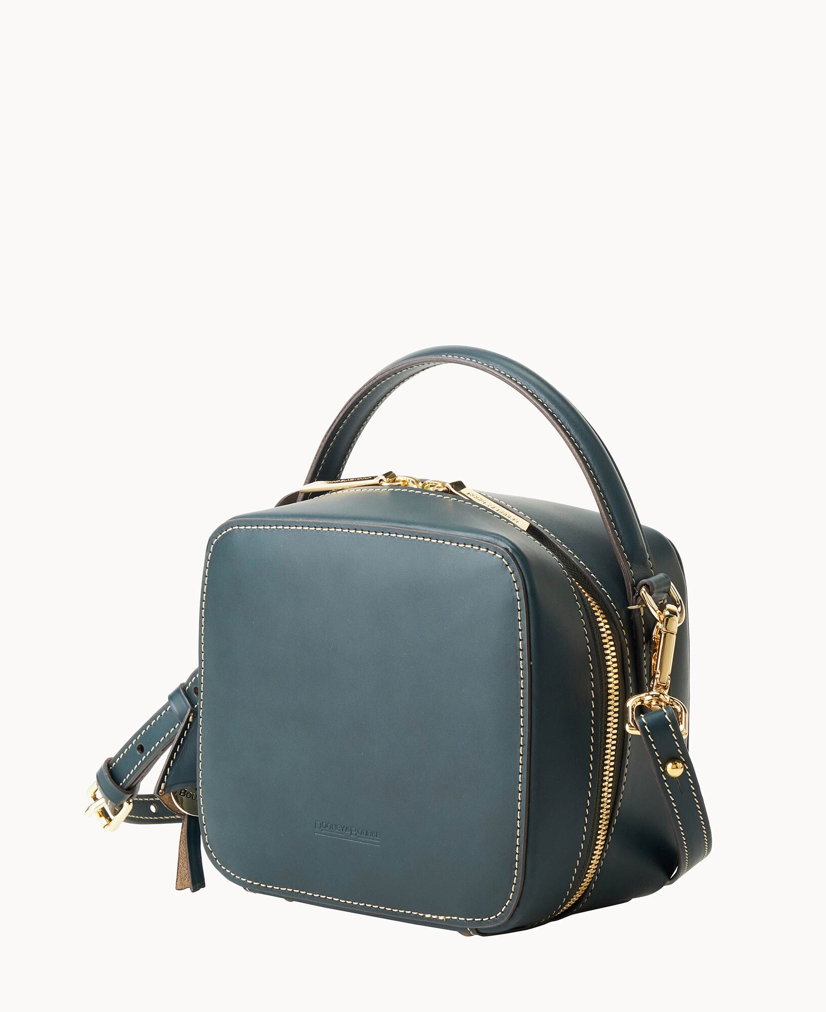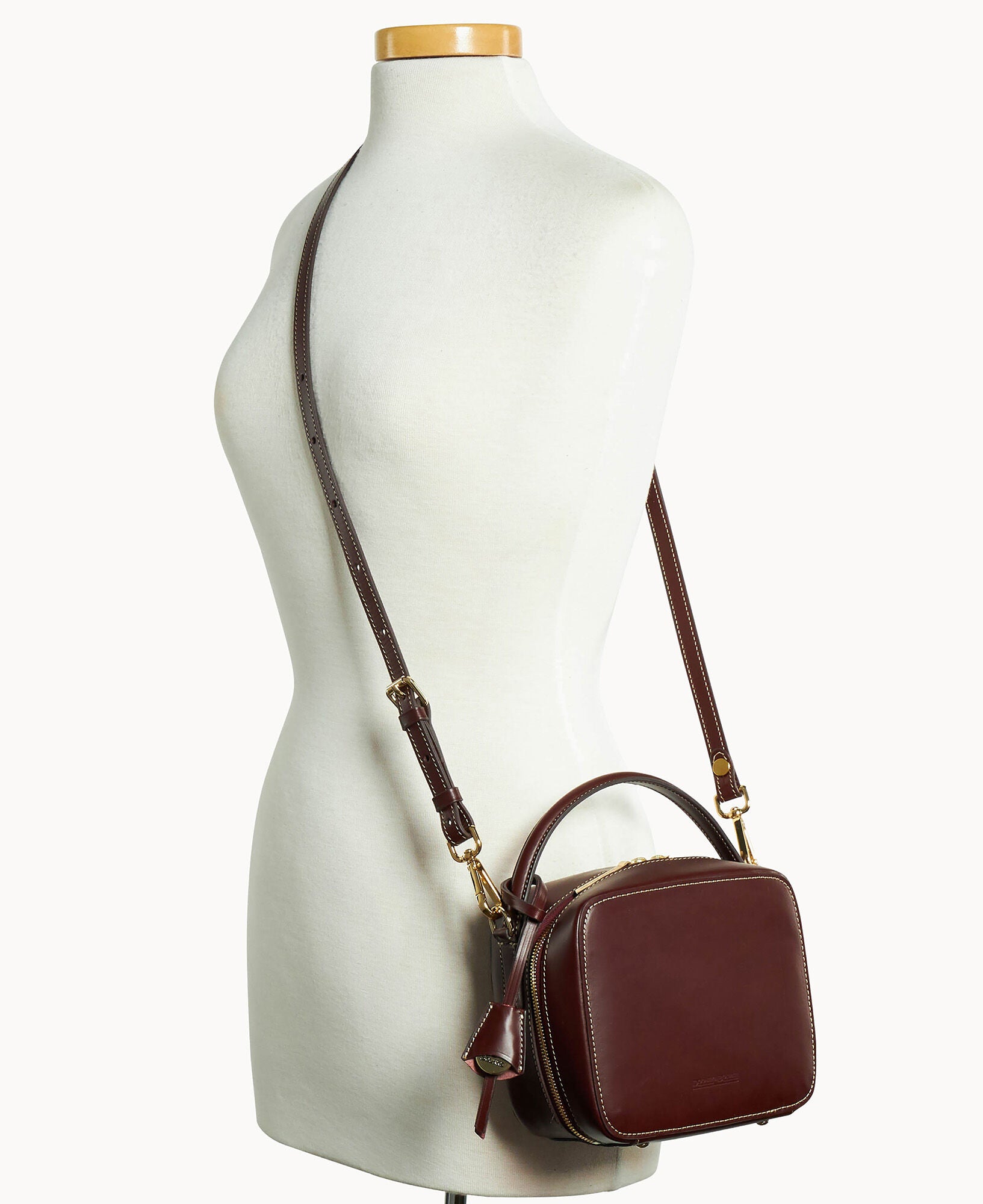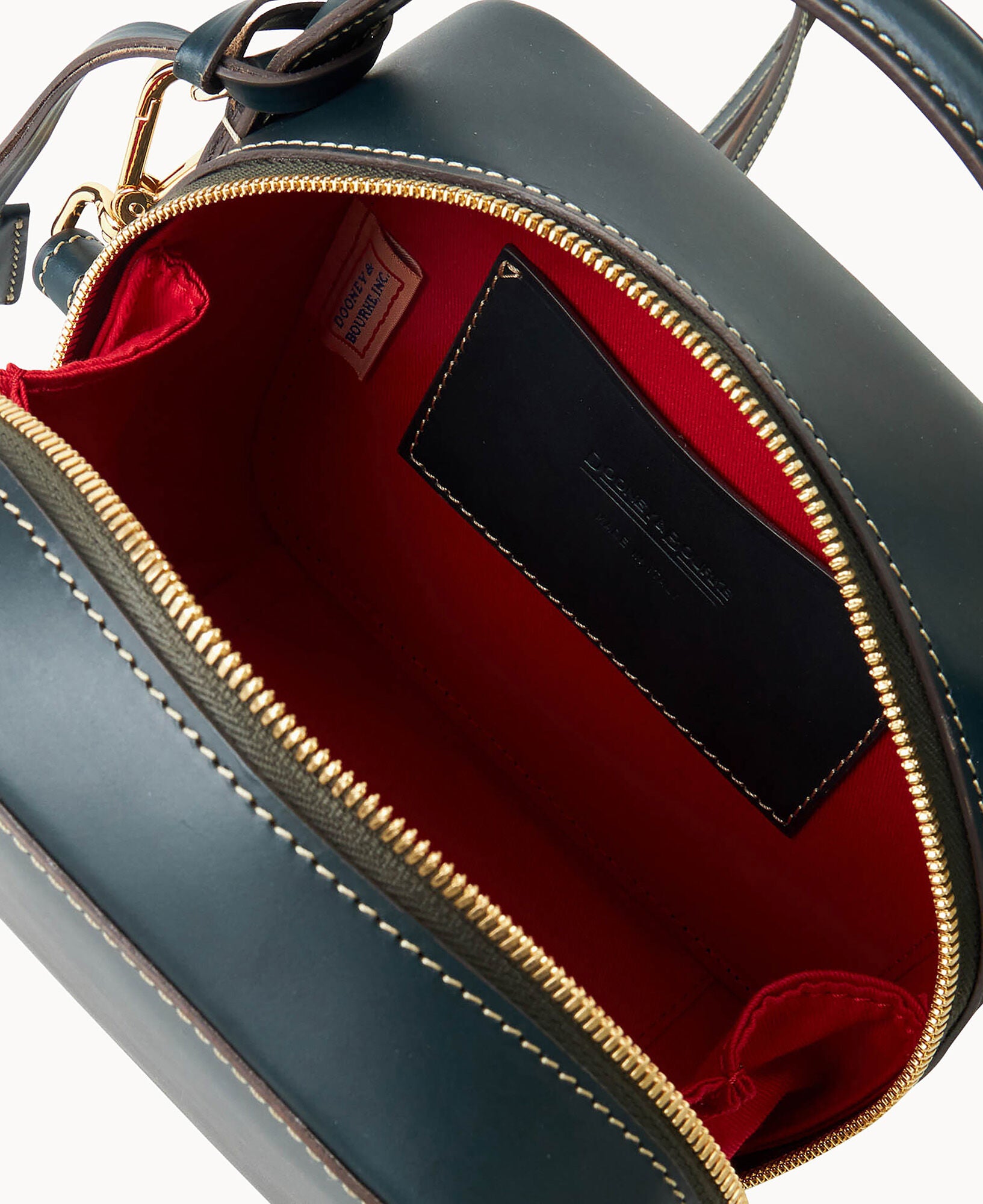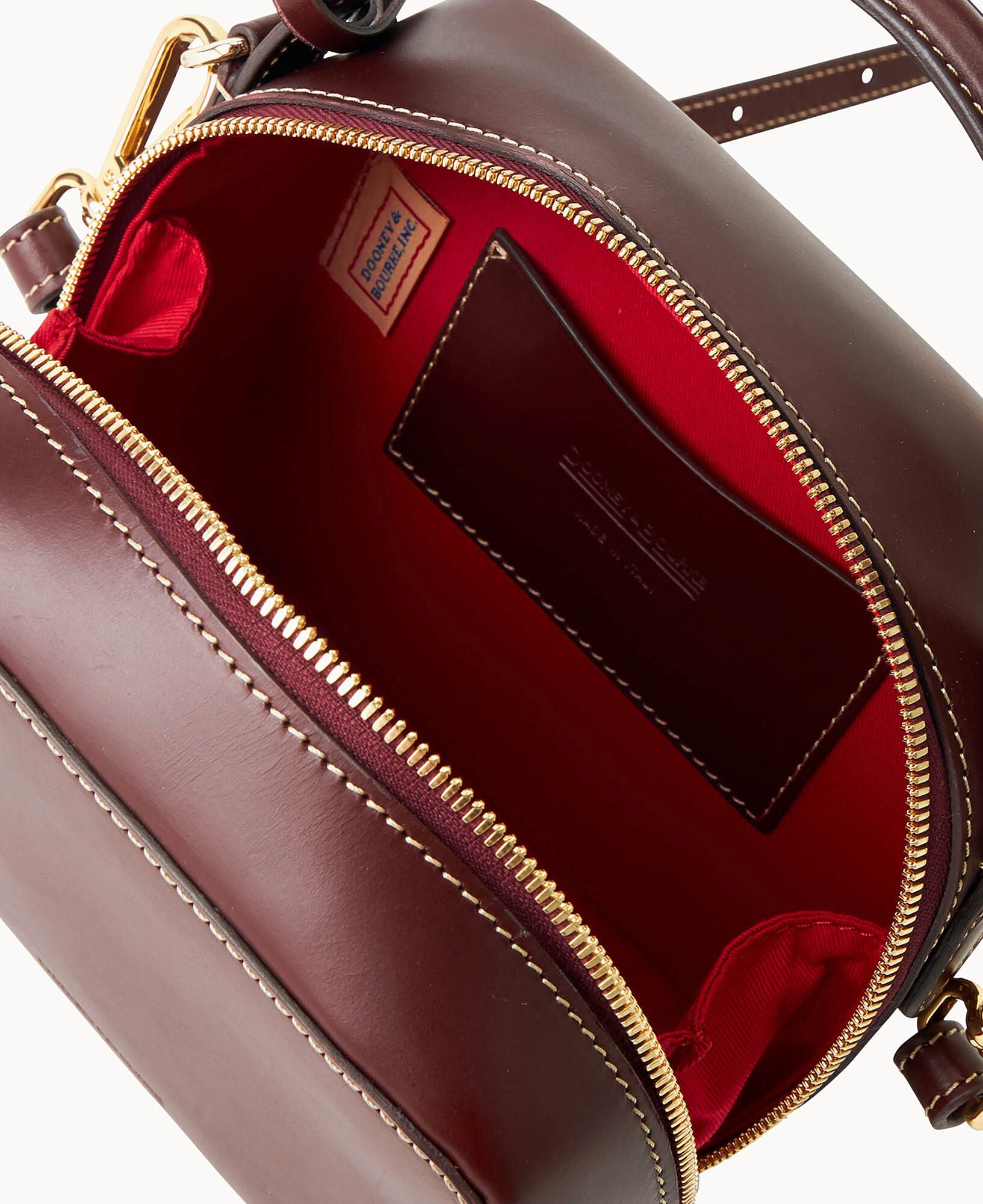 One outside slip pocket. One inisde slip pocket. One inside card slot. Shoulder strap drop length 23″. Handle drop length 2″. Adjustable and detachable strap. Lined. Feet. Zipper closure. Removable medallion.