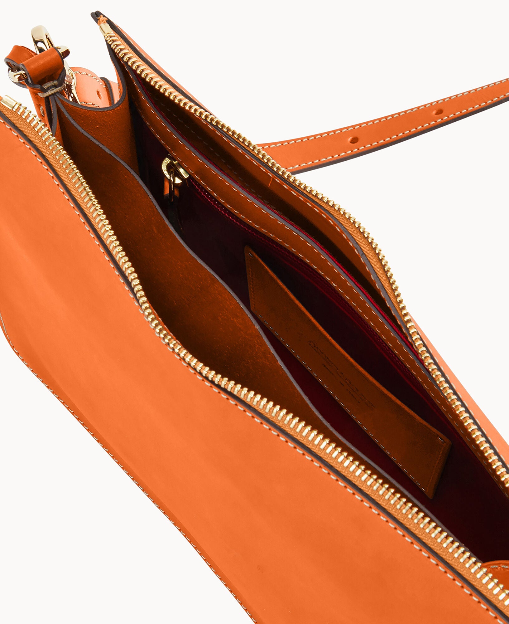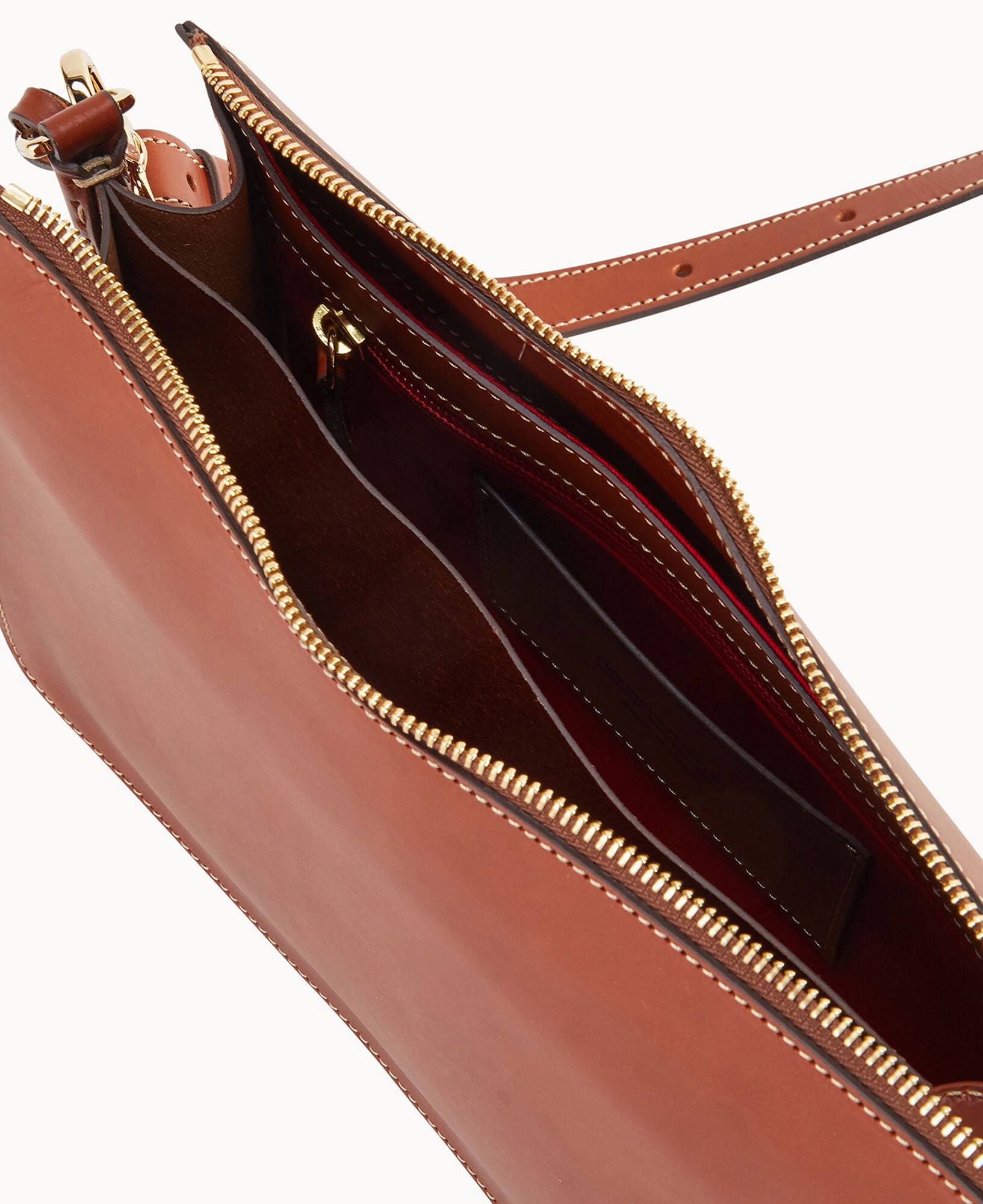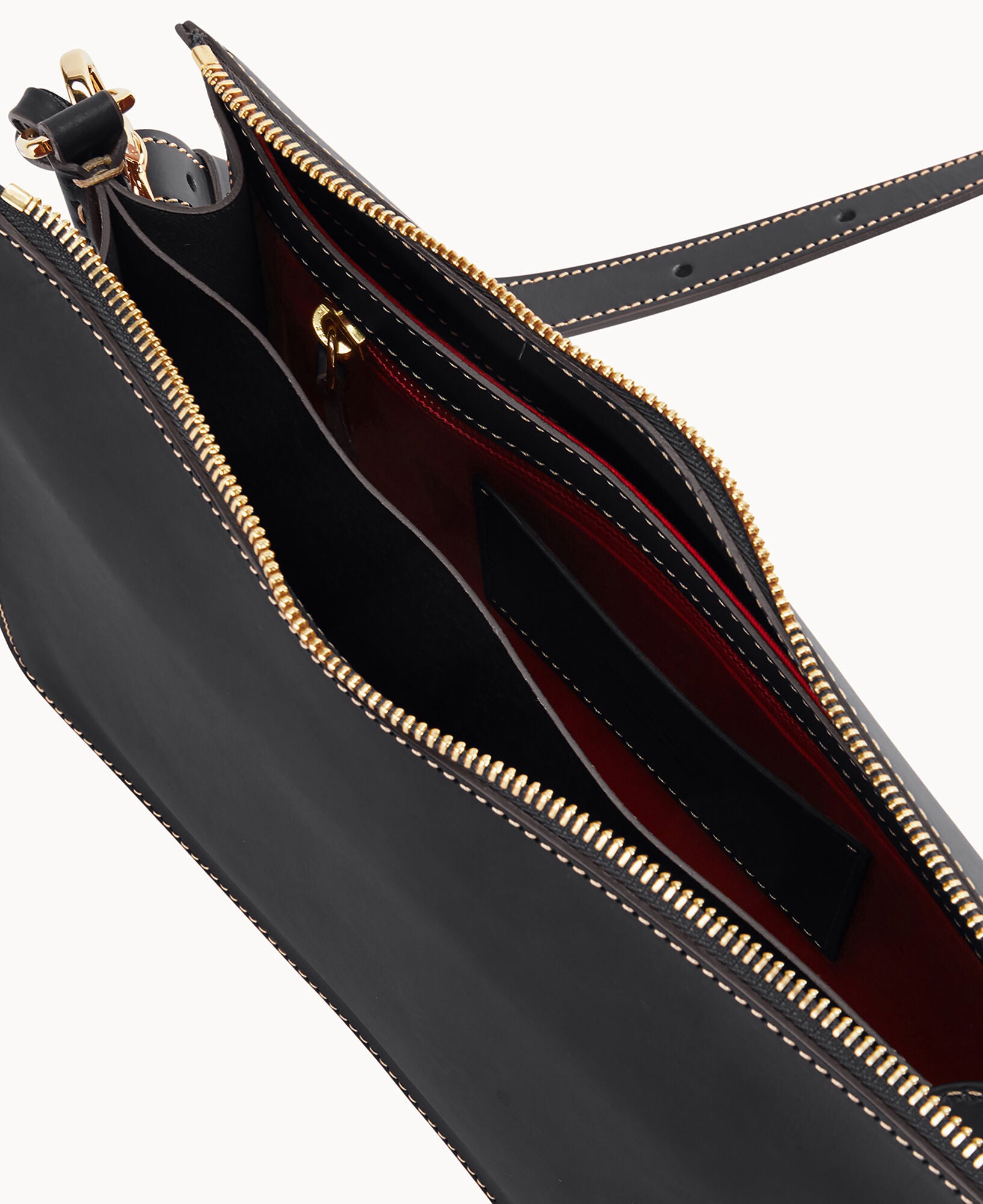 One inside zip pocket. One inside pocket. Strap drop length 10″. Lined. Feet. Removable medallion. Zipper closure.