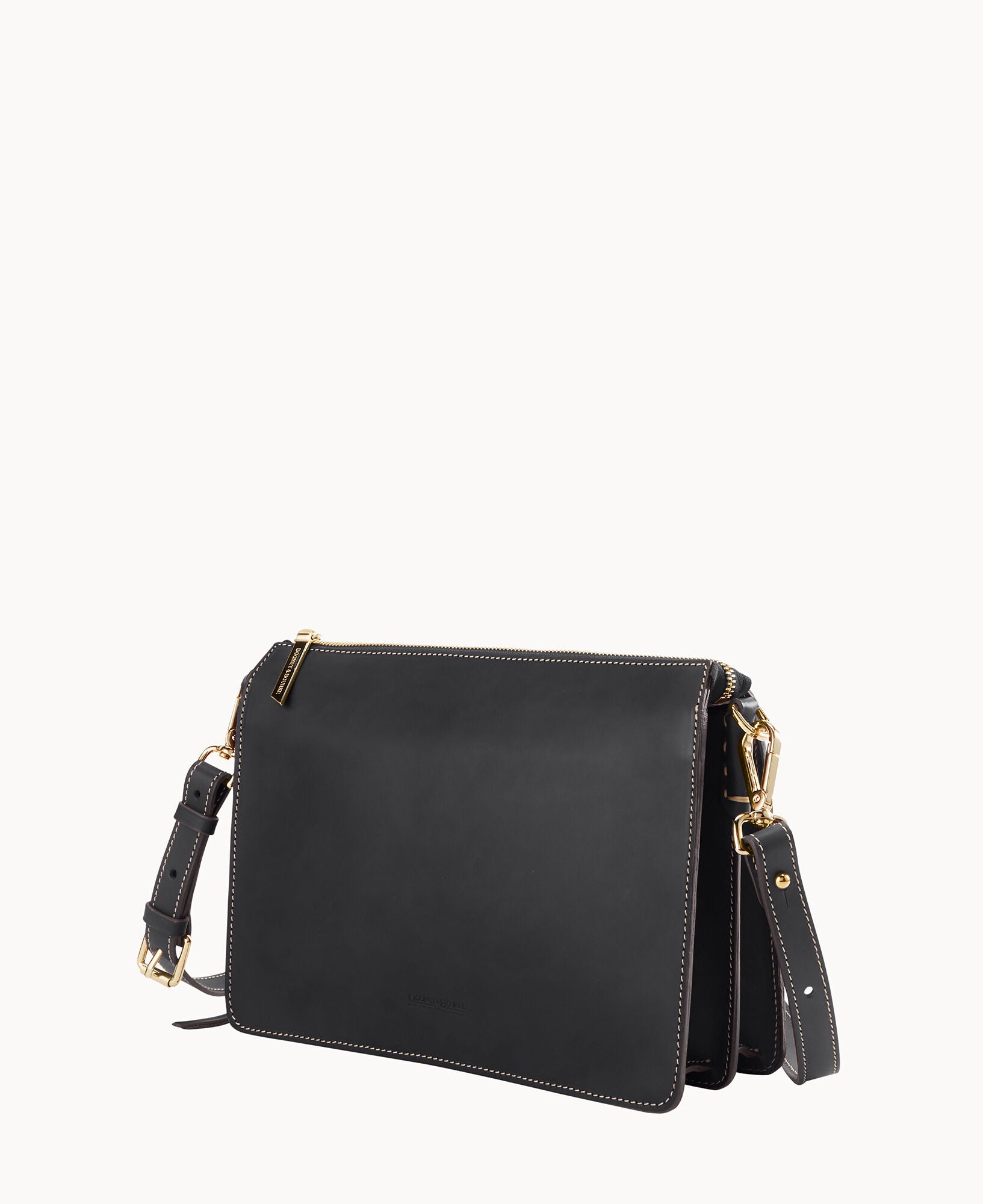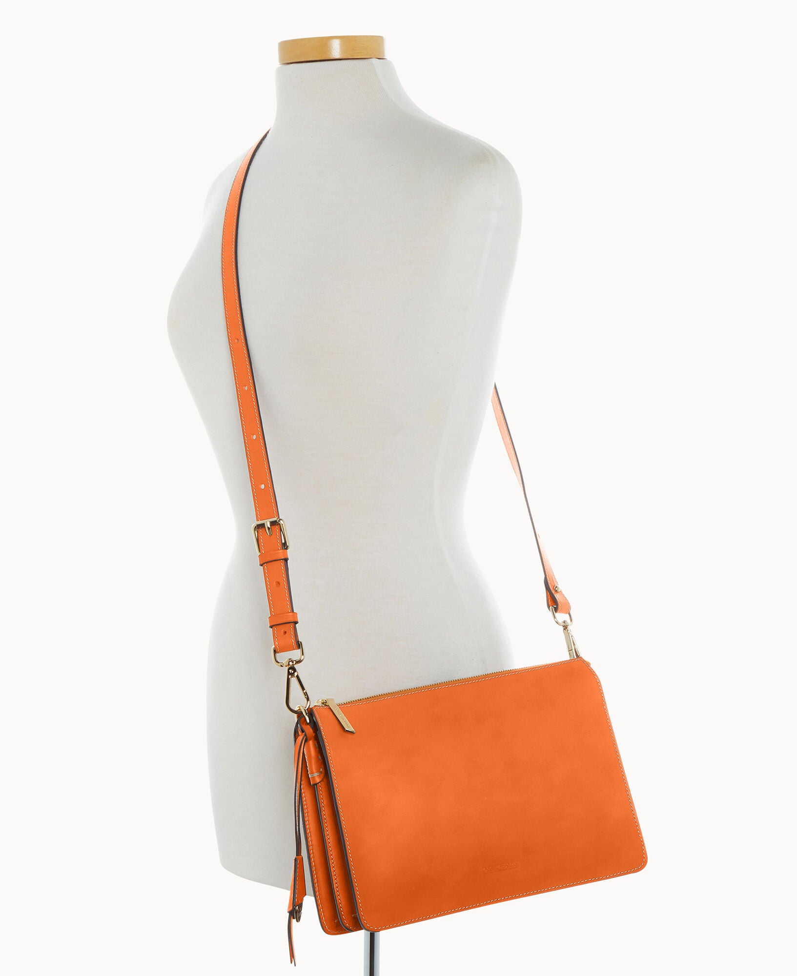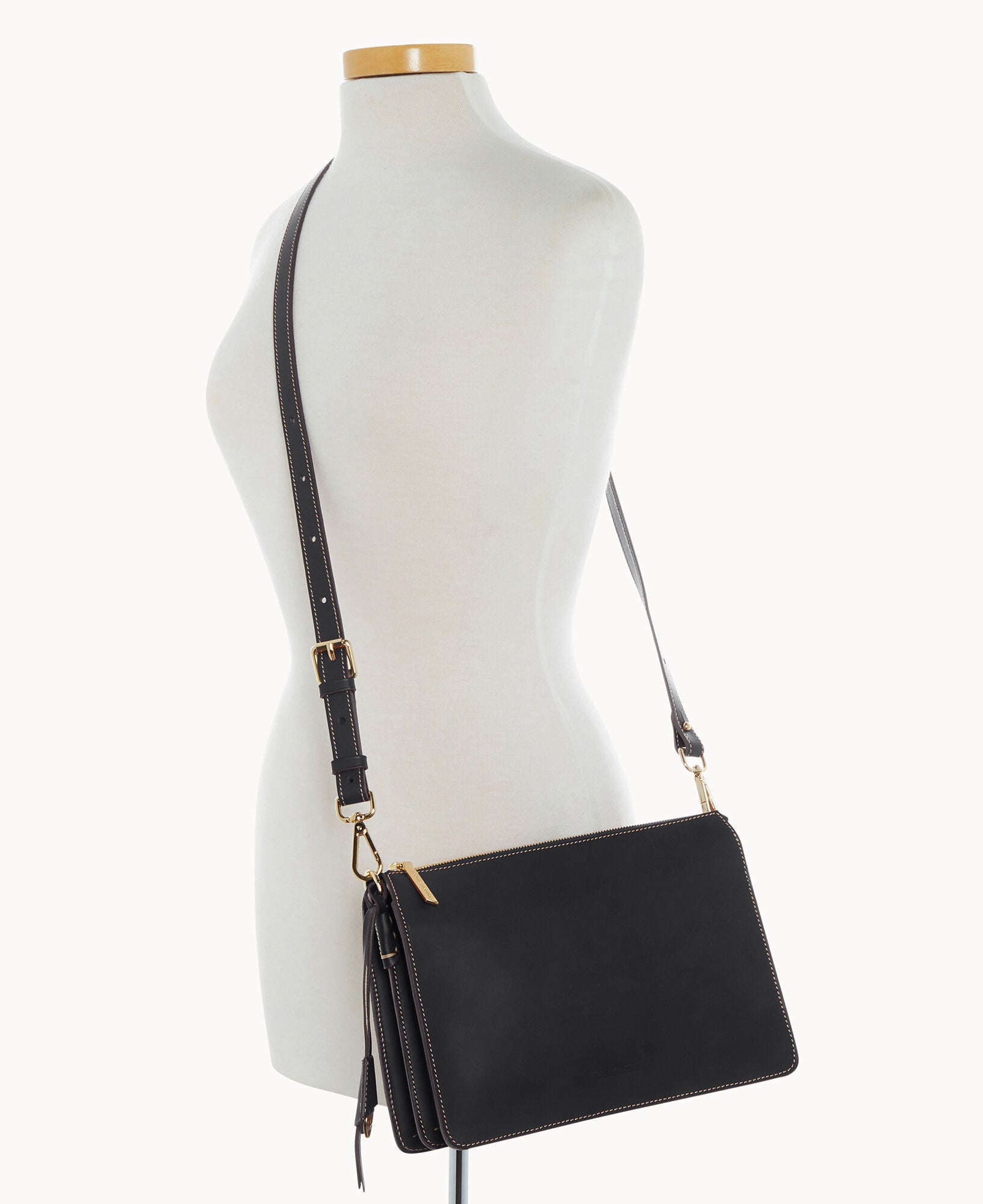 One inside zip pocket. One inside pocket. Strap drop length 10″. Lined. Feet. Removable medallion. Zipper closure.