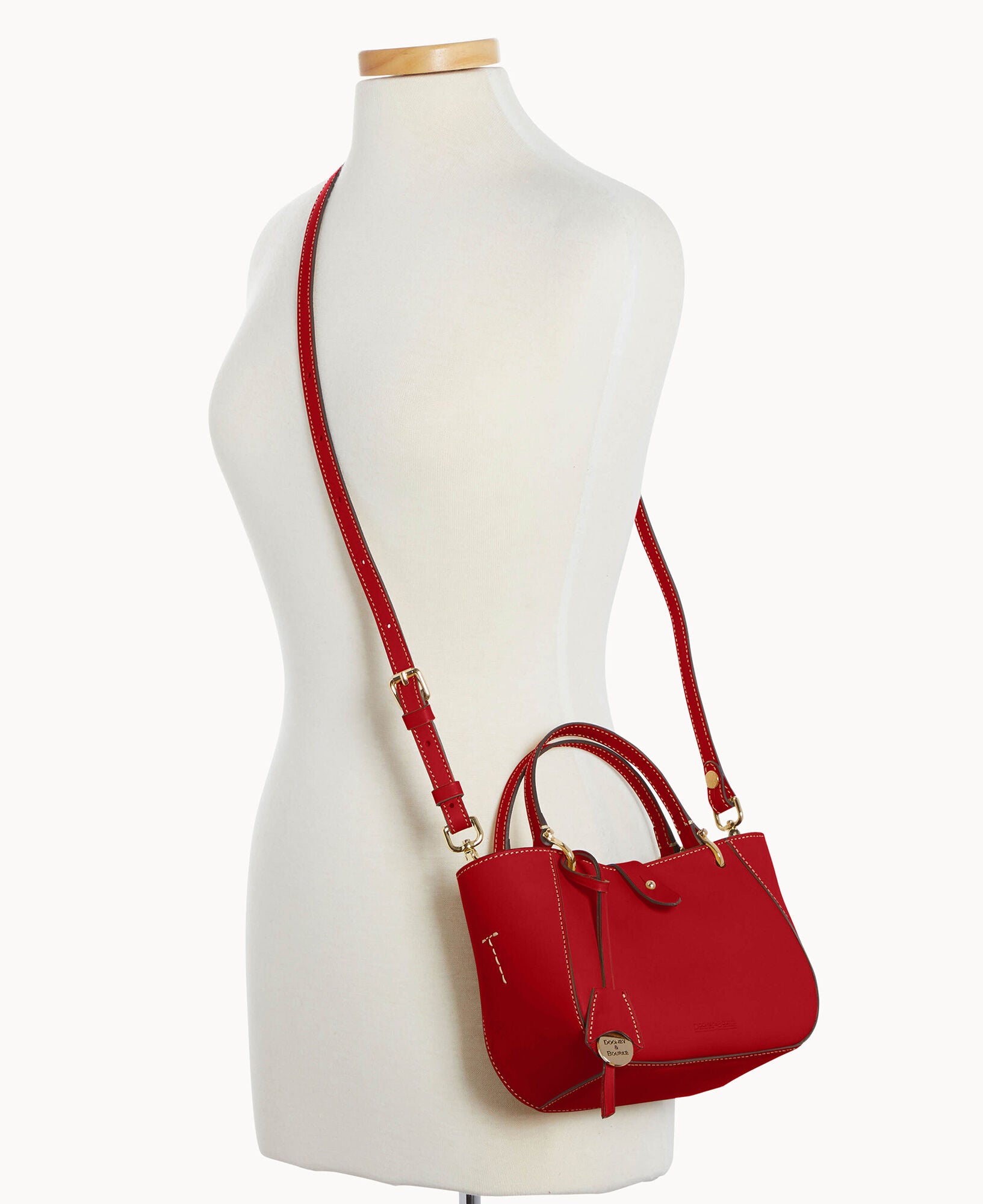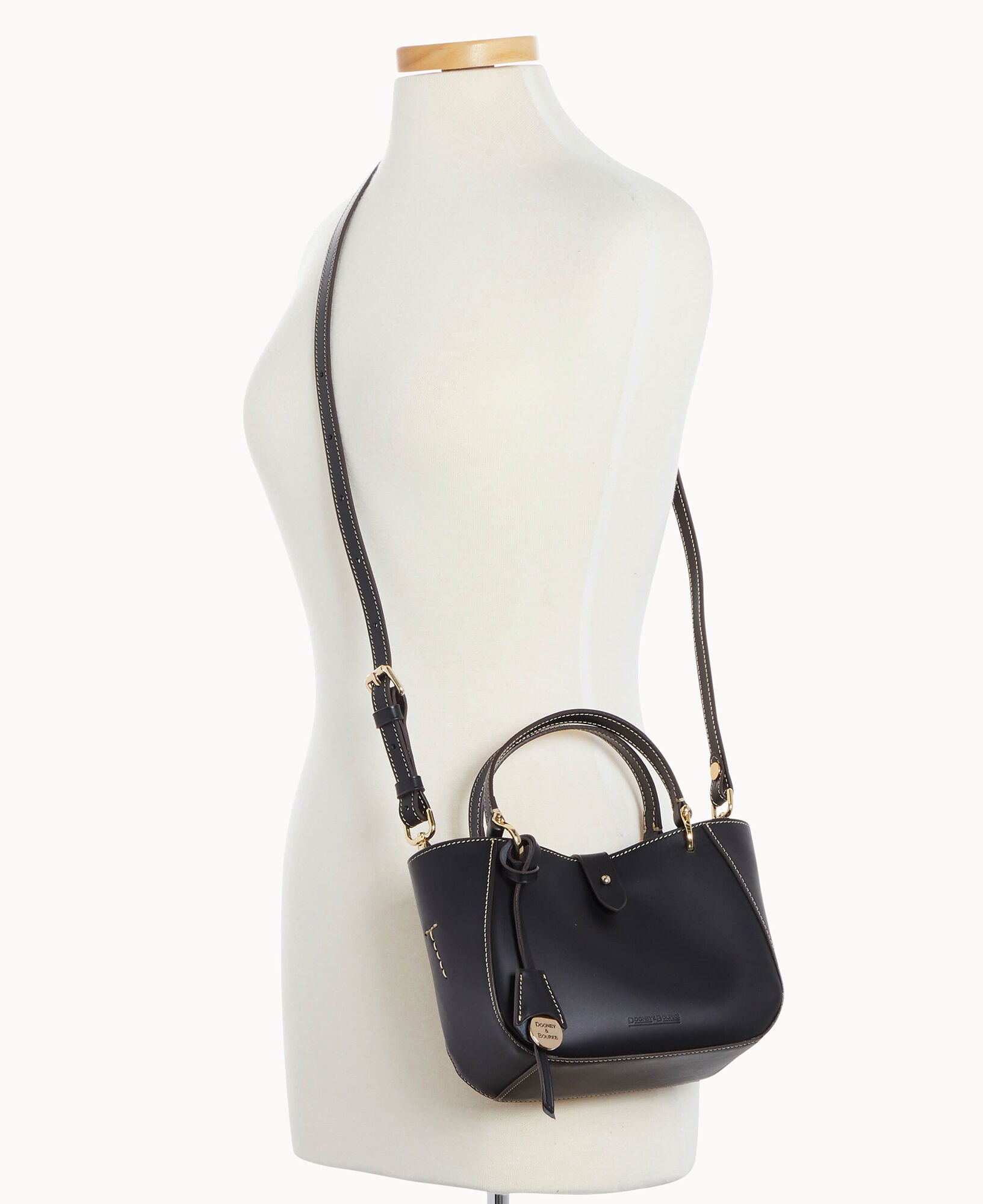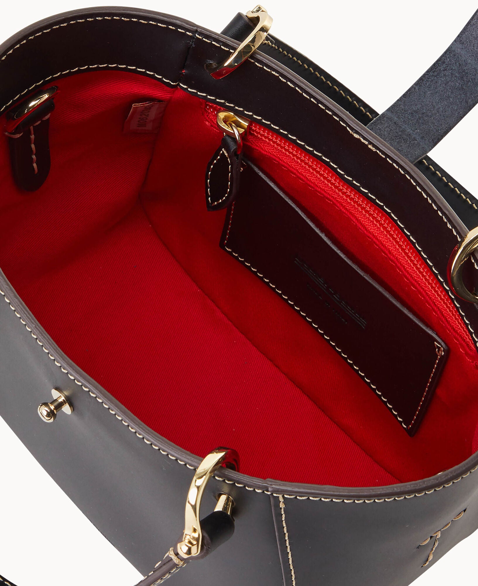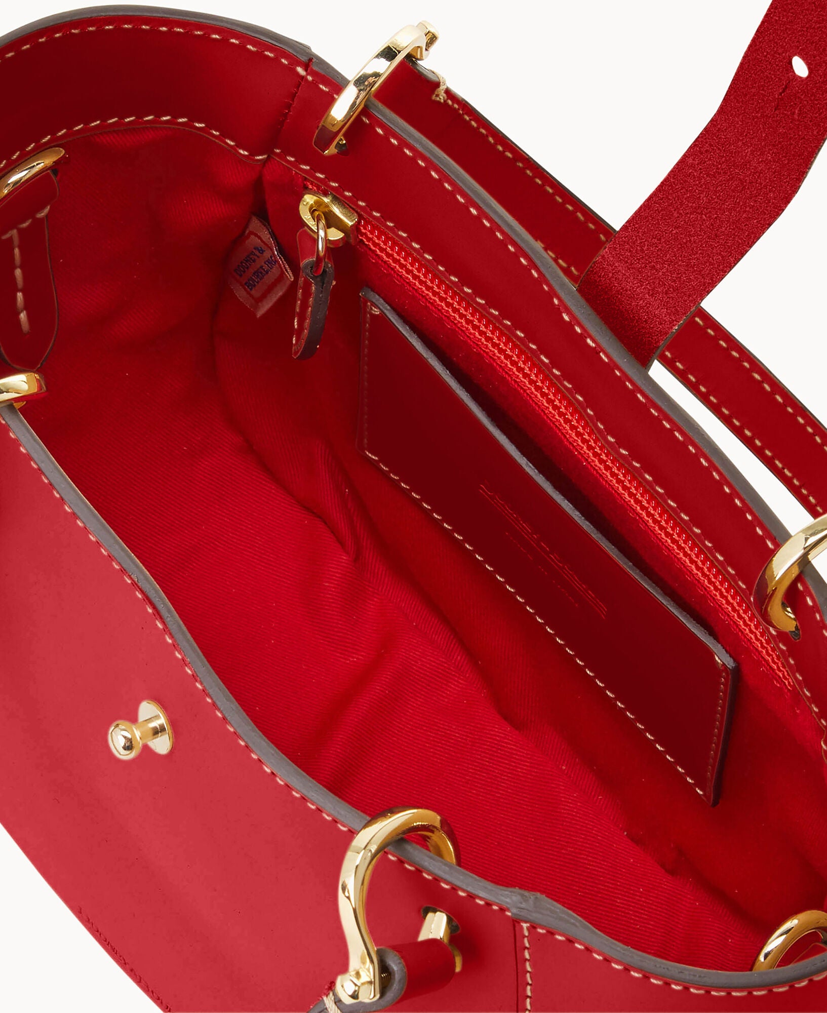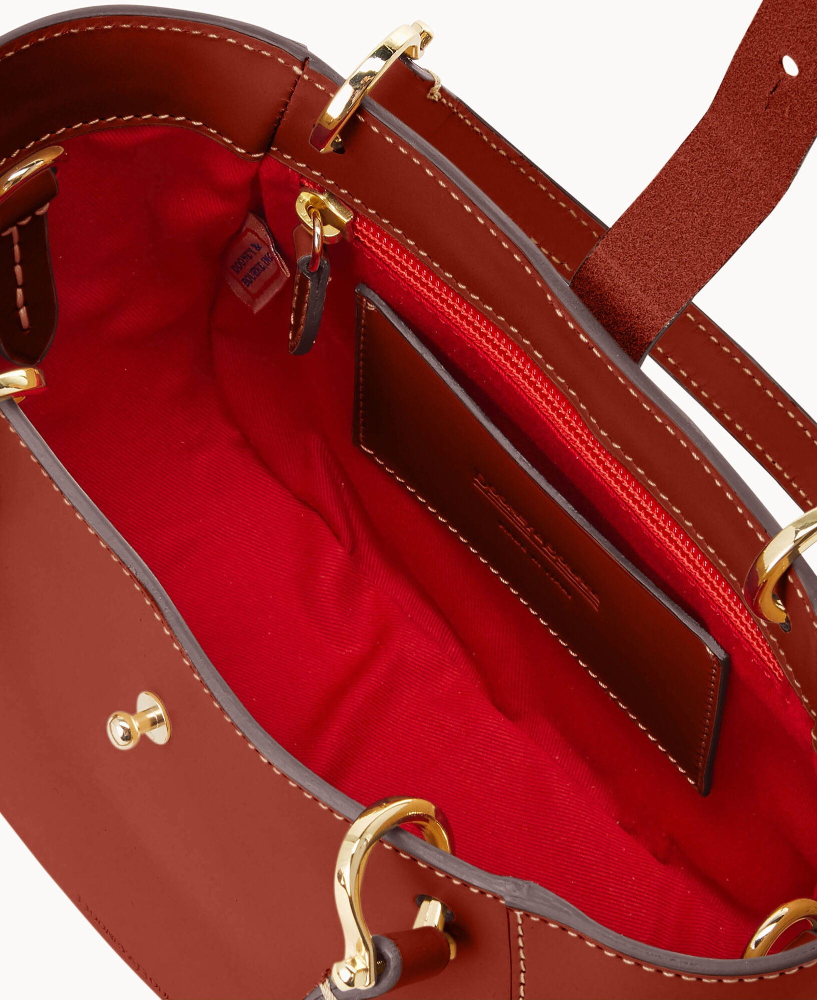 One inside zip pocket. Credit card slot. Handle drop length 4.5″. Adjustable, detachable shoulder strap. Strap drop length 22.25″. Tongue tab buckle closure.