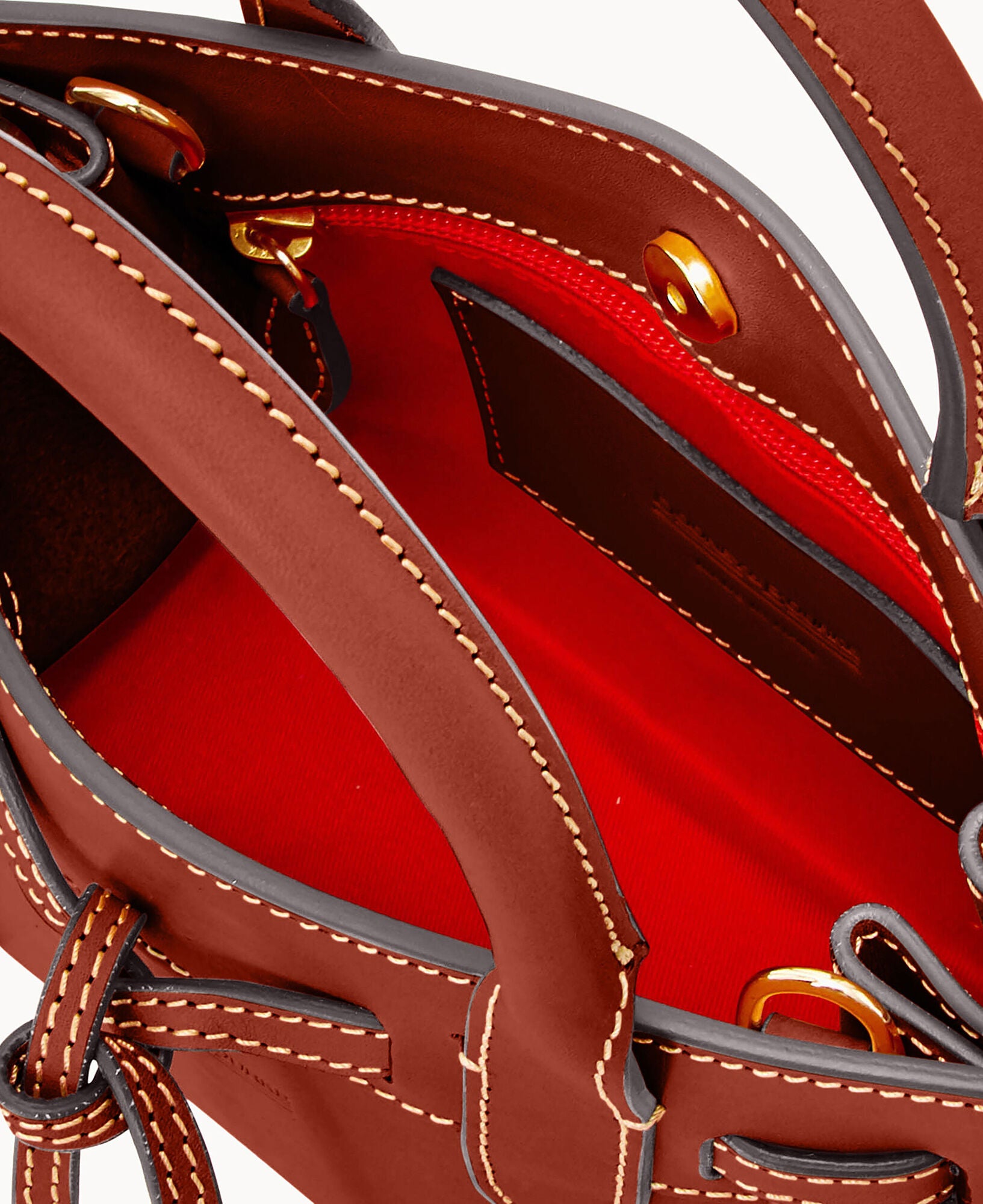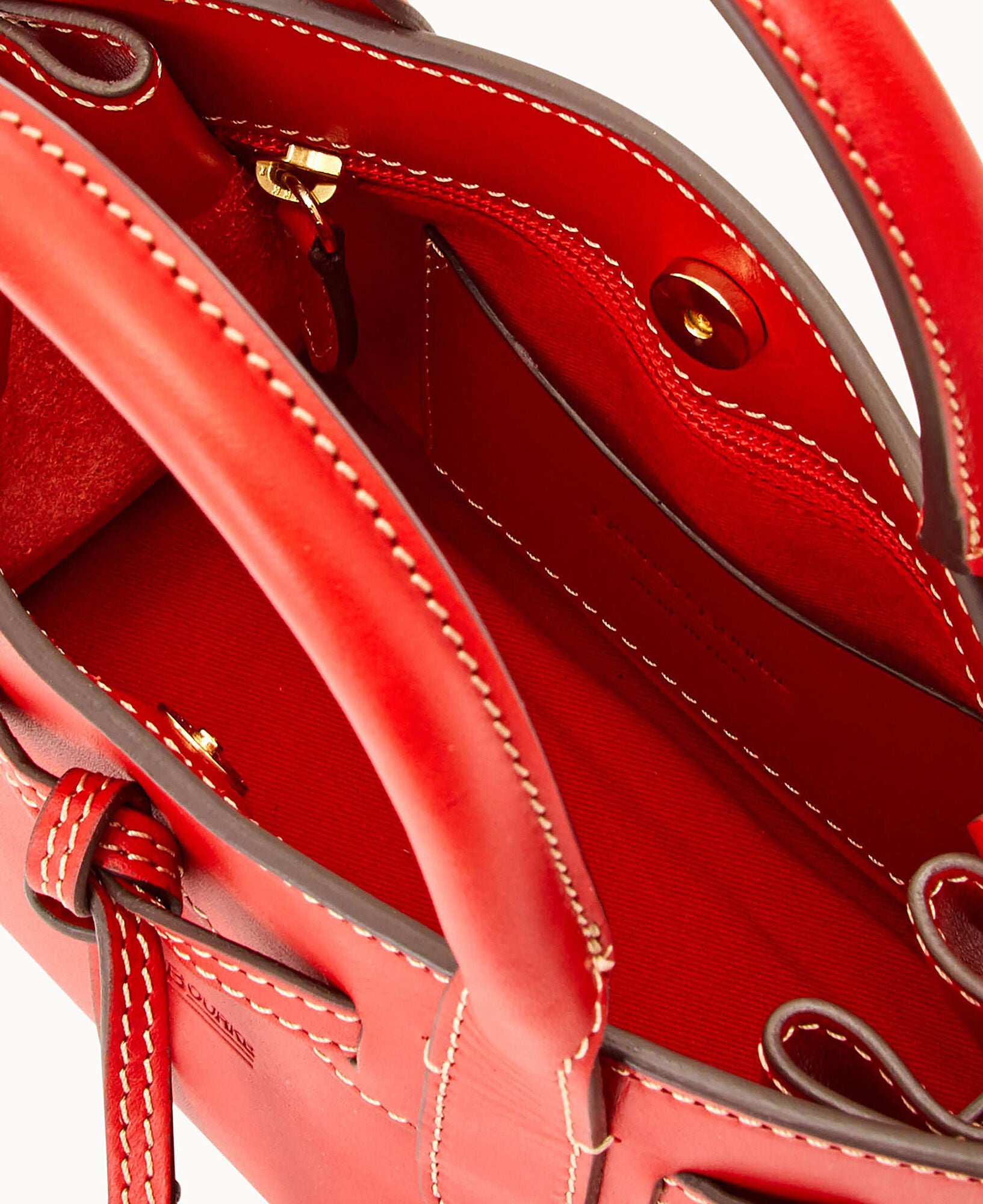 One inside pocket. Cell phone pocket. Handle drop length 4.5″. Adjustable and detachable strap. Lined. Feet. Snap closure.