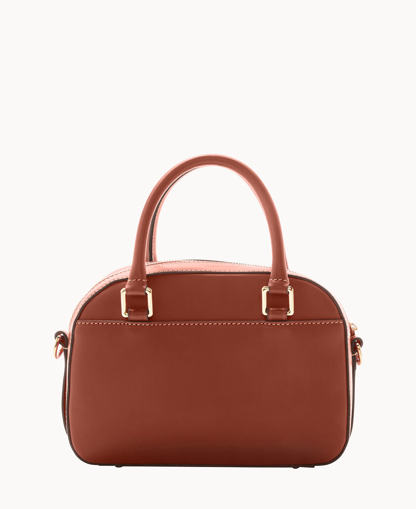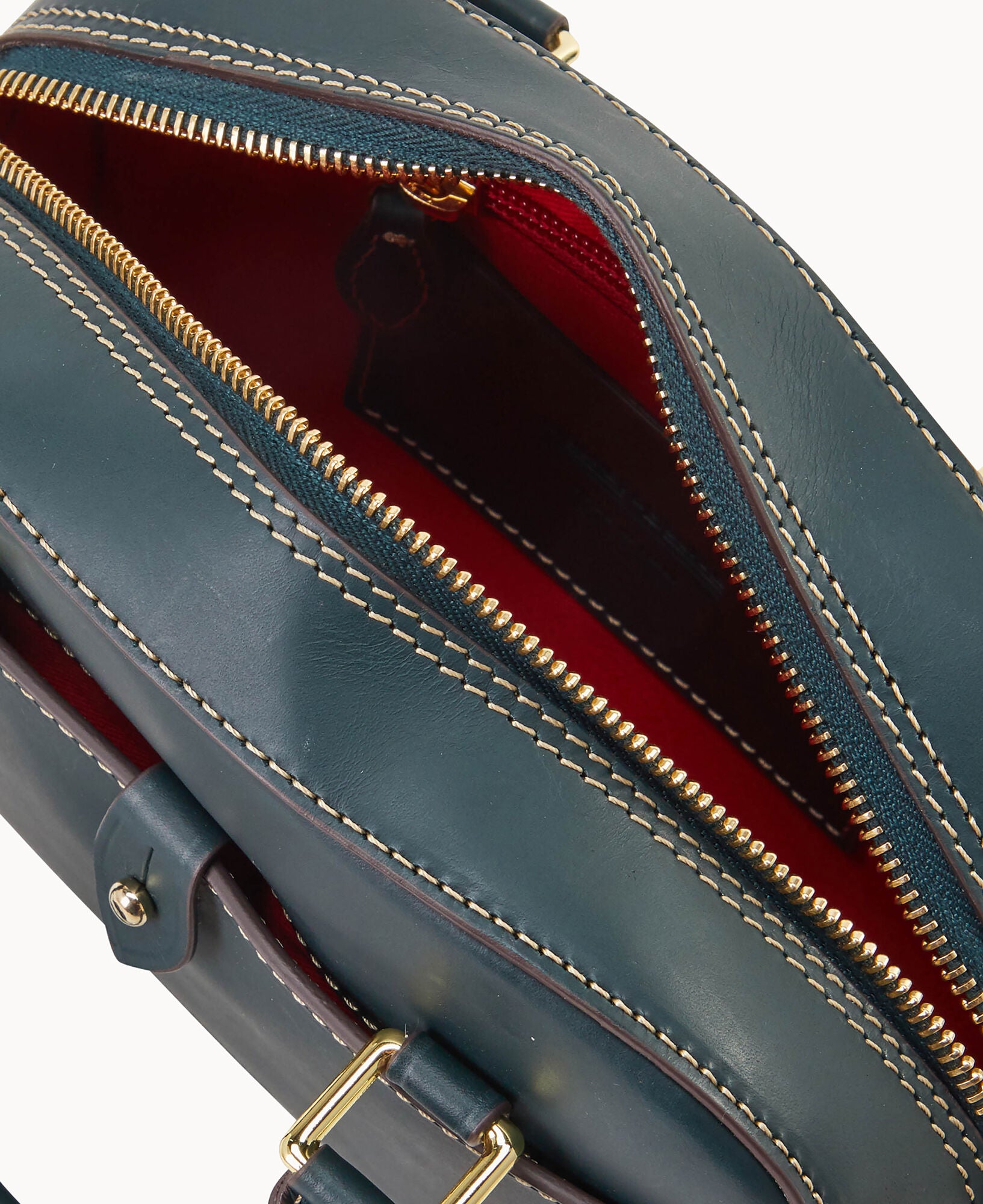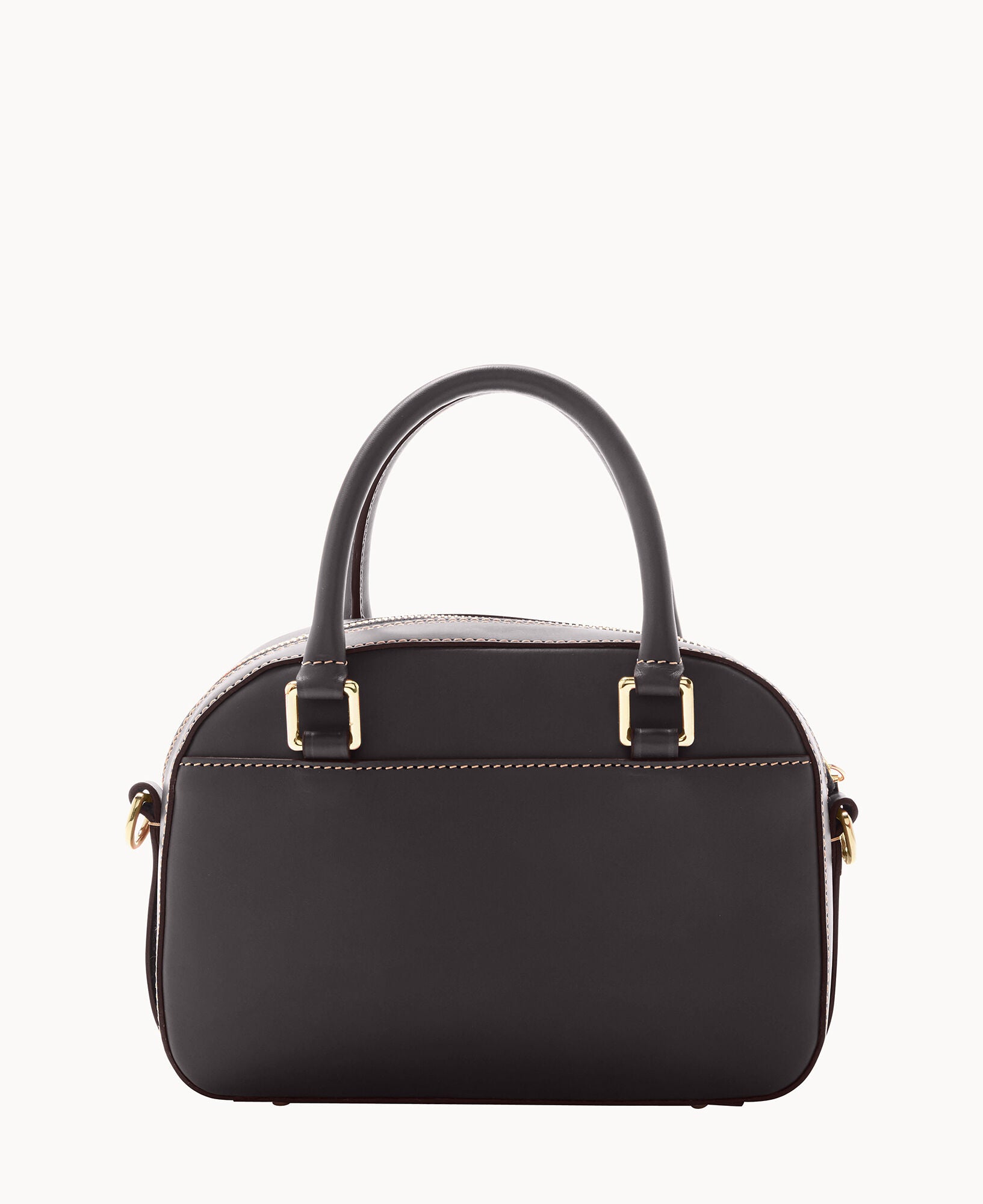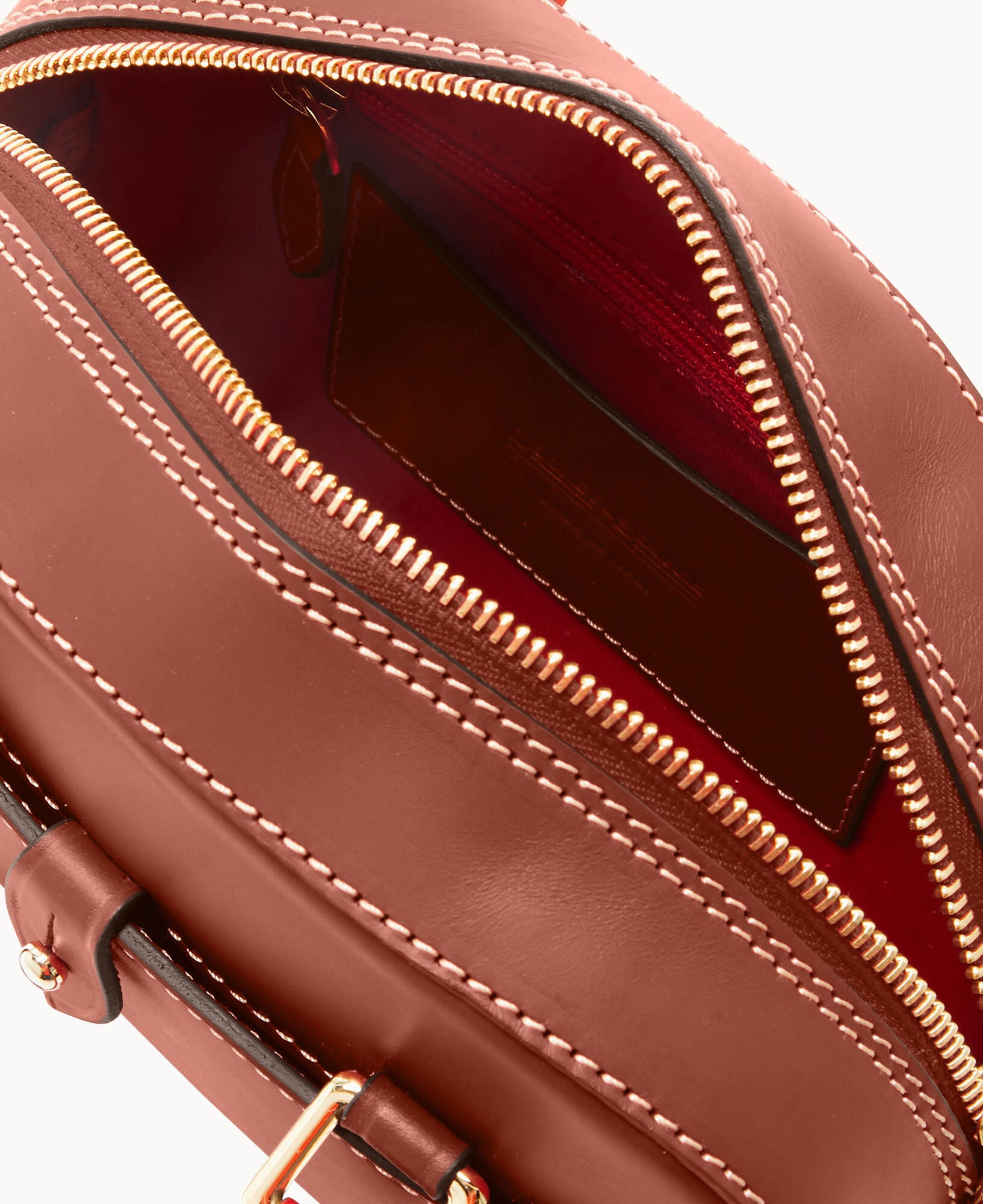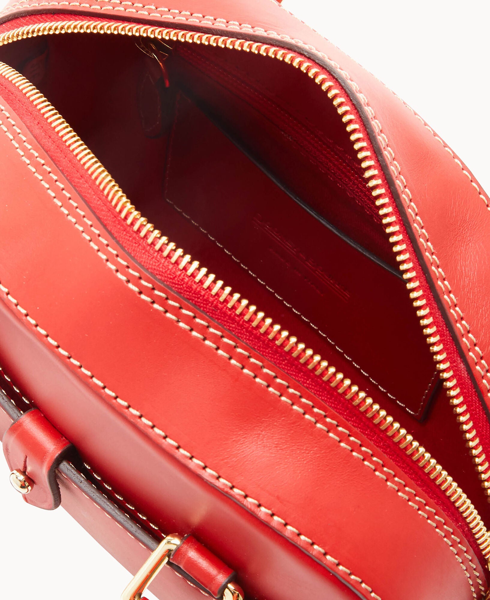 One outside pocket with tongue tab closure. One inside slip pocket. One inside zip pocket. Strap drop length 23″. Handle drop length 3.25″. Adjustable and detachable strap. Removable medallion. Lined. Feet. Zipper closure.