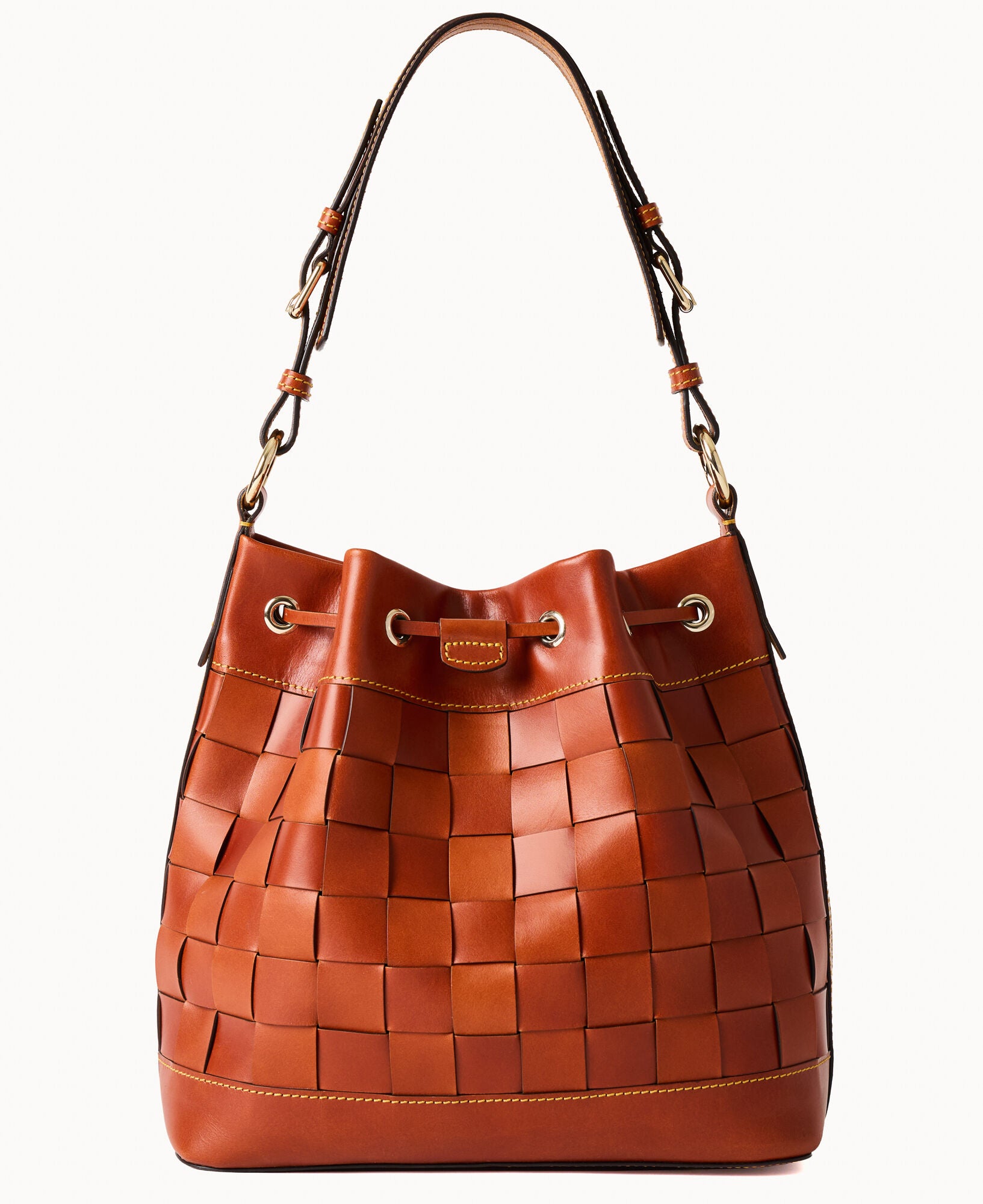 Two inside pockets. One inside zipper pocket. One inside cellphone pocket. Shoulder strap drop length 10″. Removable medallion. Feet. Lined. Drawstring closure.