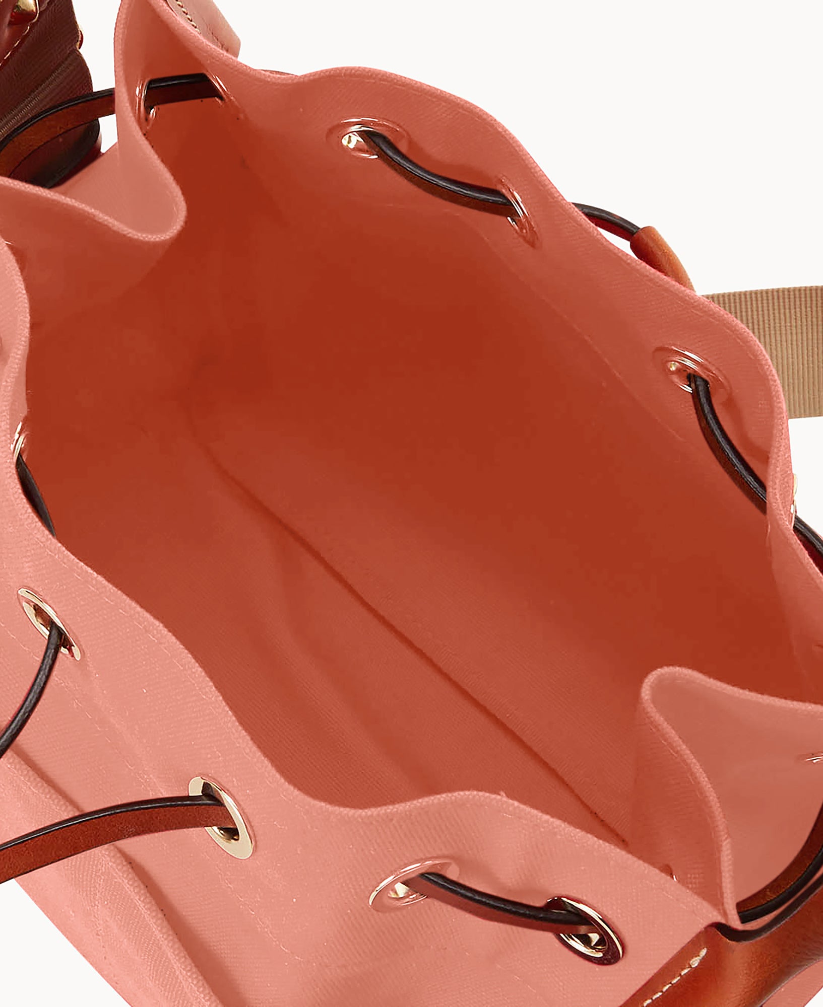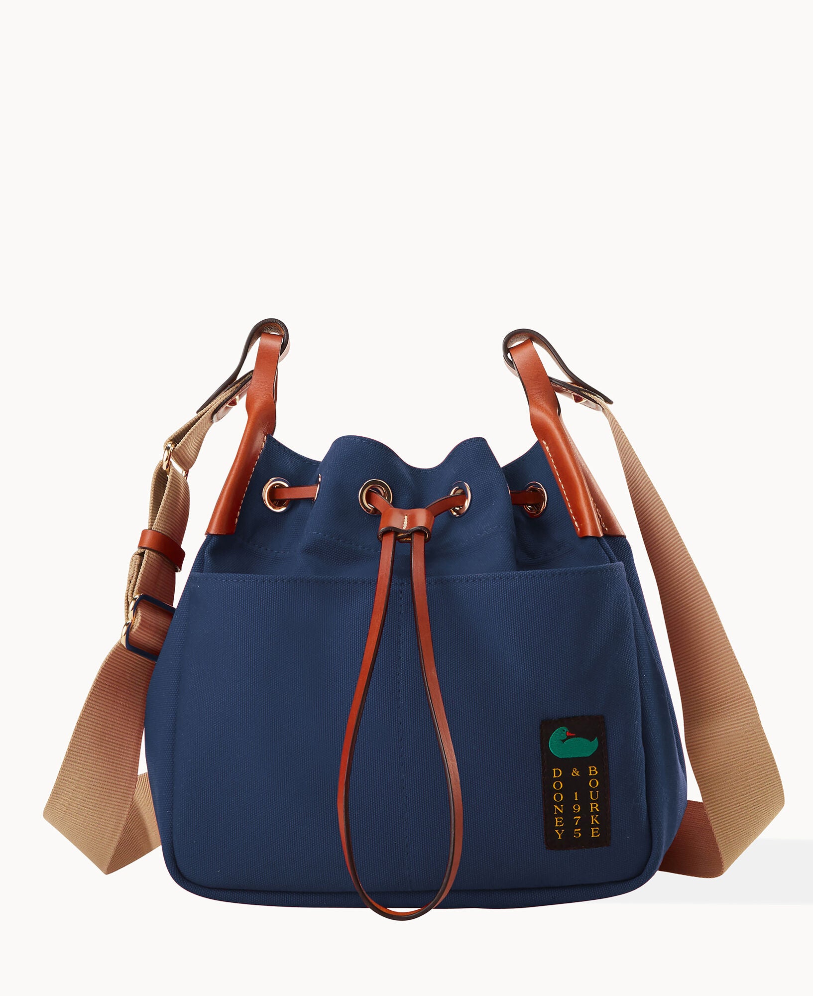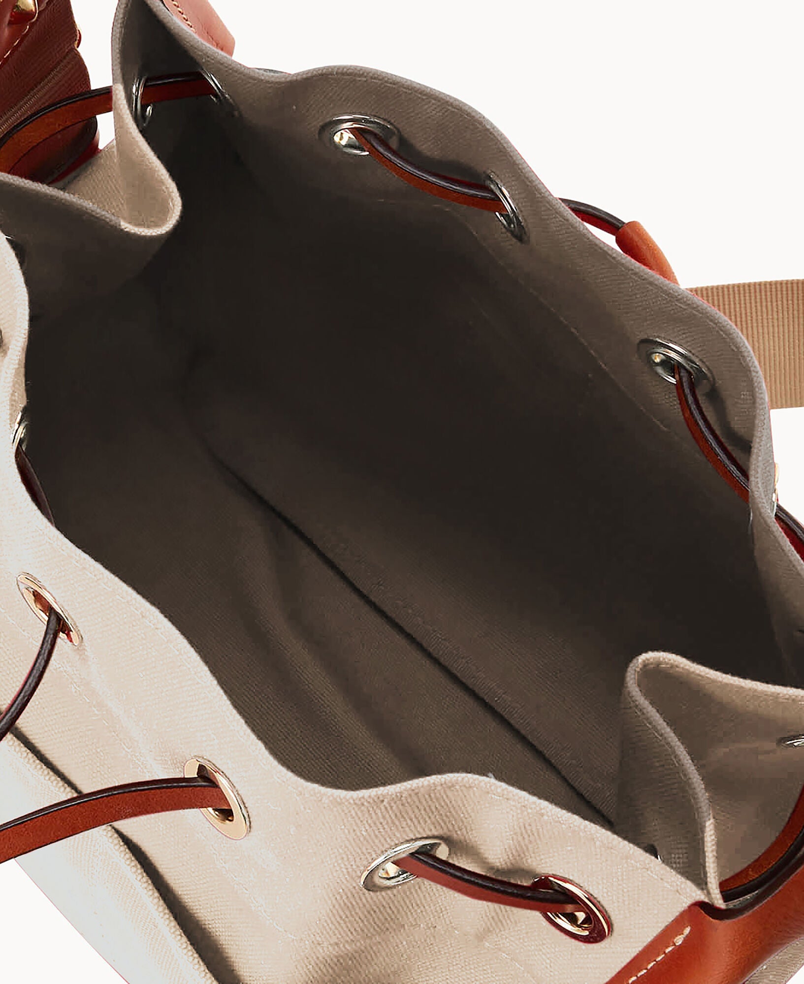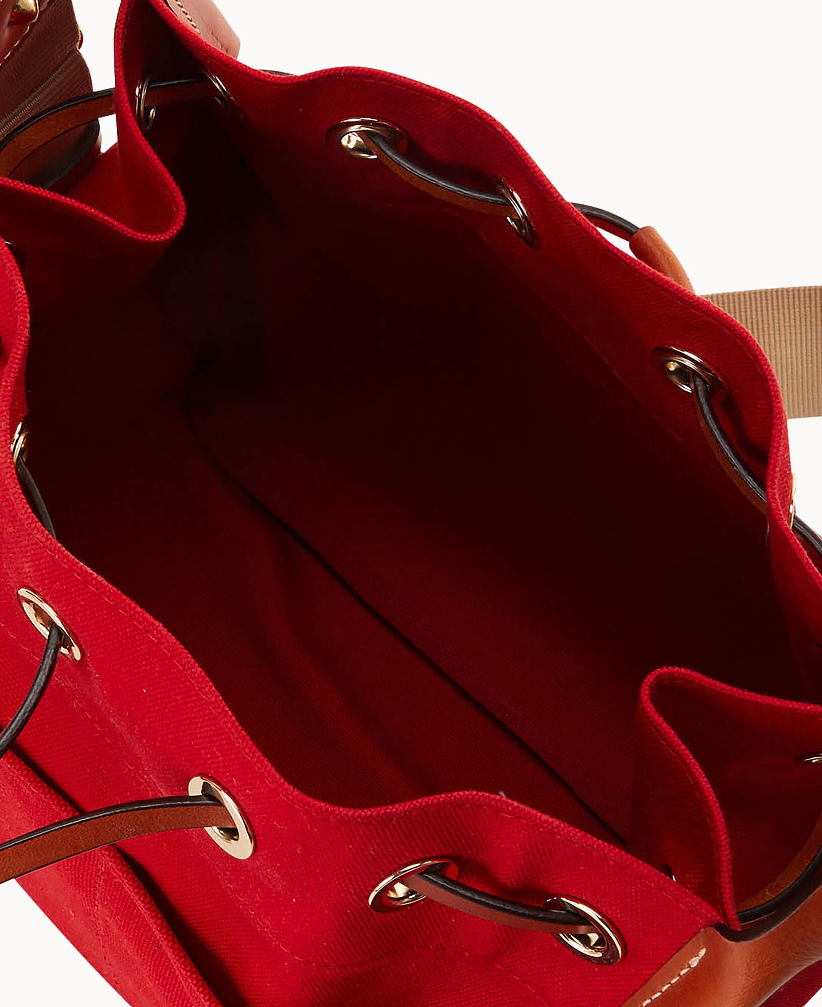 Four outside pockets. Adjustable straps. Drawstring closure.