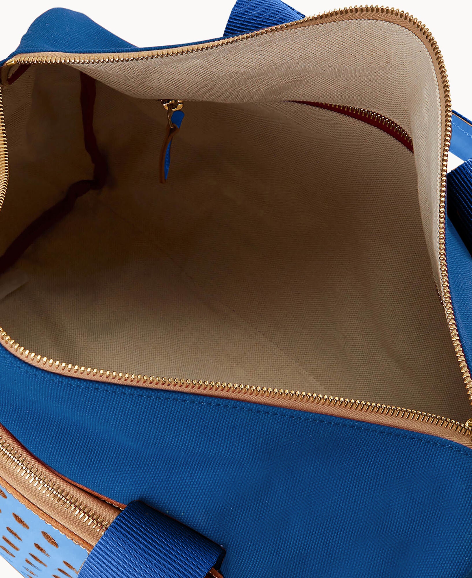 One outside zip pocket. One outside slip pocket. Two interior zip pockets. One racket zip pocket. Zipper closure.
