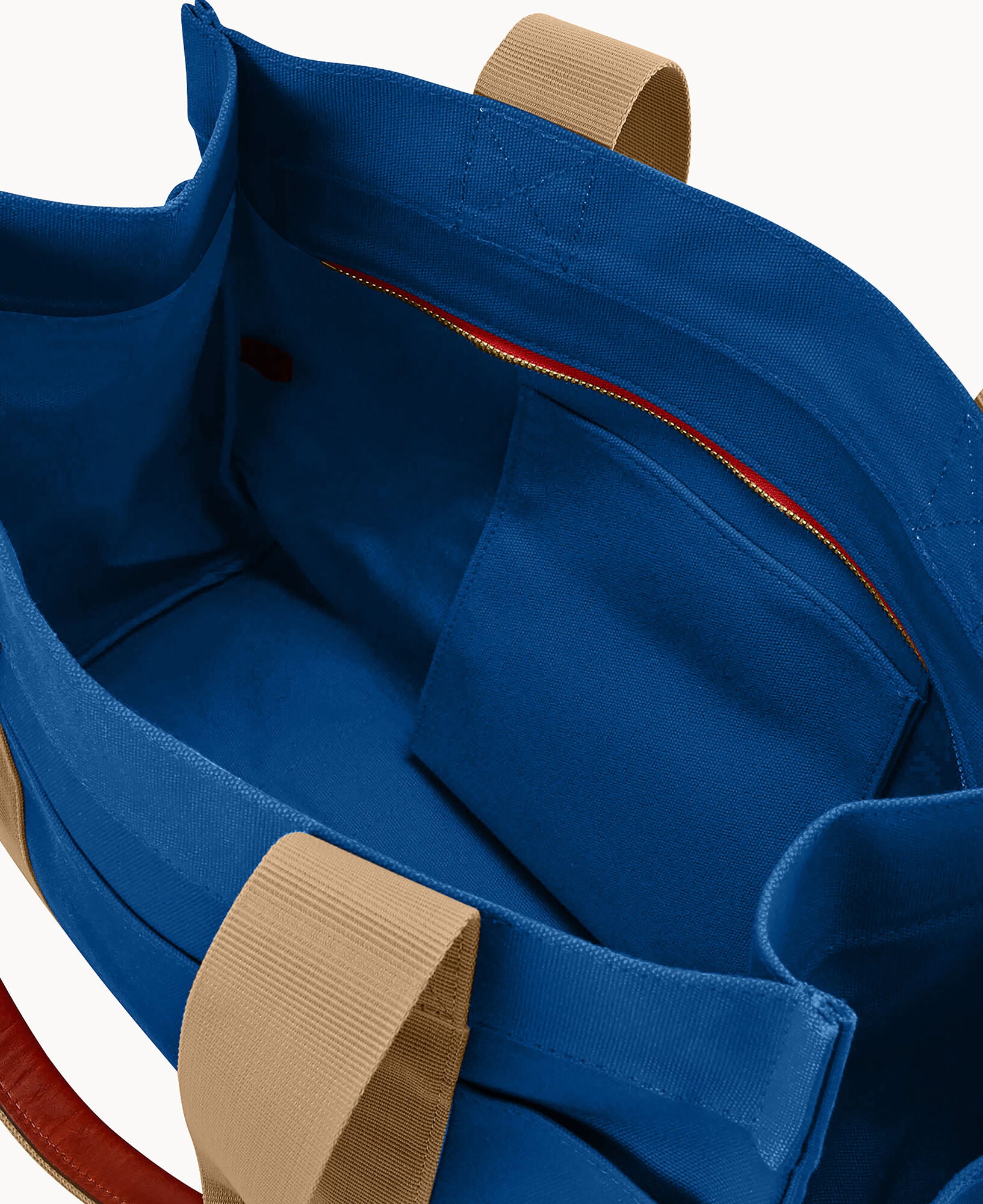 Eight outside slip pockets. Two inside slip pockets. Strap drop length 10″. Zipper closure.