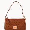 One inside zip pocket. Two inside pockets. Cell phone pocket. Inside key hook. Adjustable shoulder strap. Strap drop length 12″. Lined. Feet. Zipper closure.