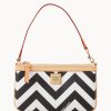 One outside zip pocket. One inside zip pocket. Two inside pockets. Cell phone pocket. Inside key hook. Handle drop length 5″. Adjustable, detachable shoulder strap. Strap drop length 21″. Lined. Feet. Zipper closure.