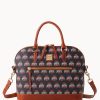 One outside zip pocket. One inside zip pocket. Two inside pockets. Adjustable, detachable shoulder strap. Strap drop length 27″. Inside key hook. Lined. Zipper closure.