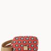 One outside zip pocket. One inside zip pocket. Three inside pockets. Cell phone pocket. Inside key hook. Strap drop length 11.5″. Lined. Feet. Zipper closure.