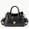 One outside zip pocket. One inside zip pocket. Two inside pockets. Cell phone pocket. Inside key hook. Adjustable shoulder strap. Strap drop length 25″. Lined. Zipper closure.