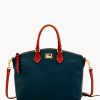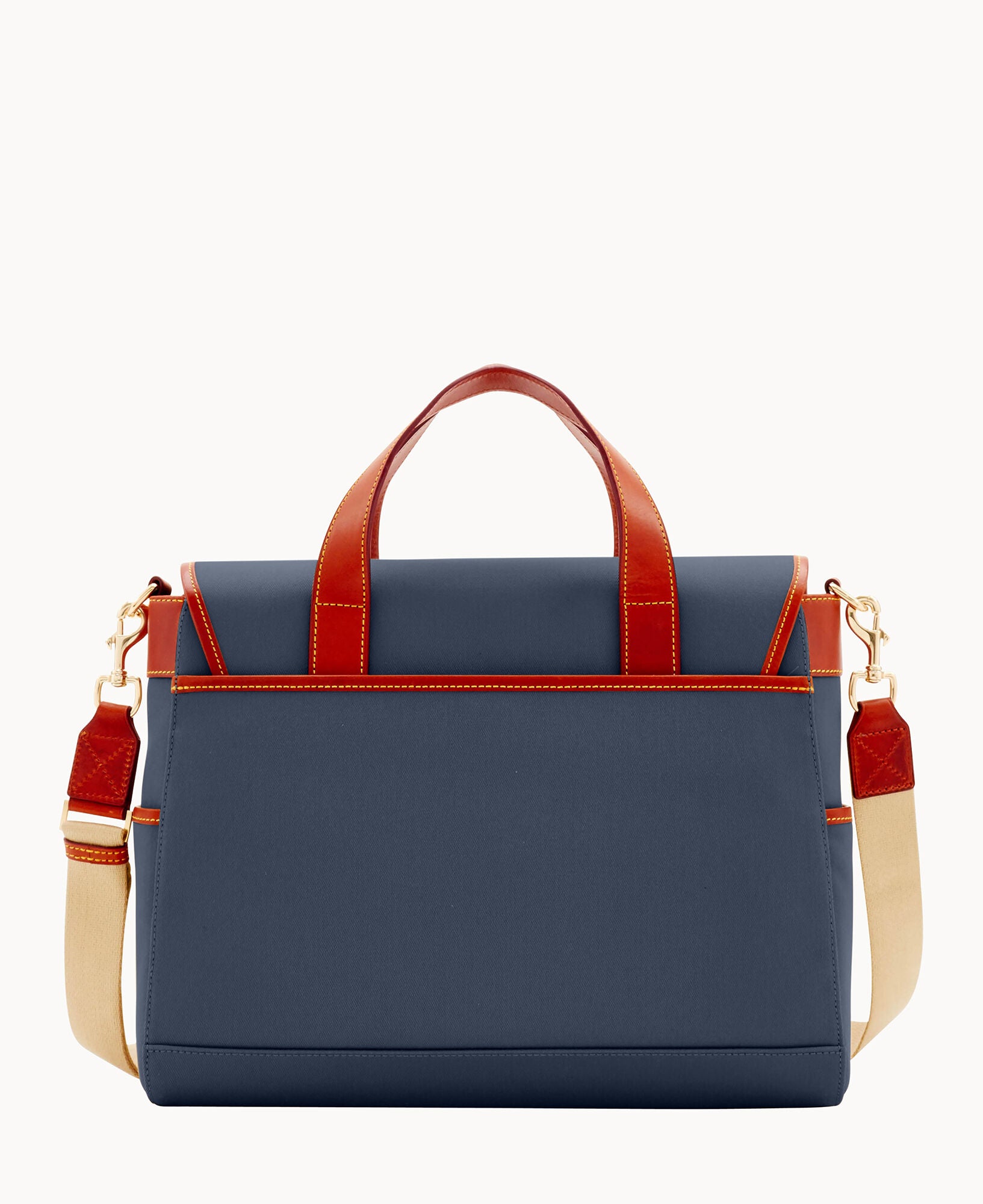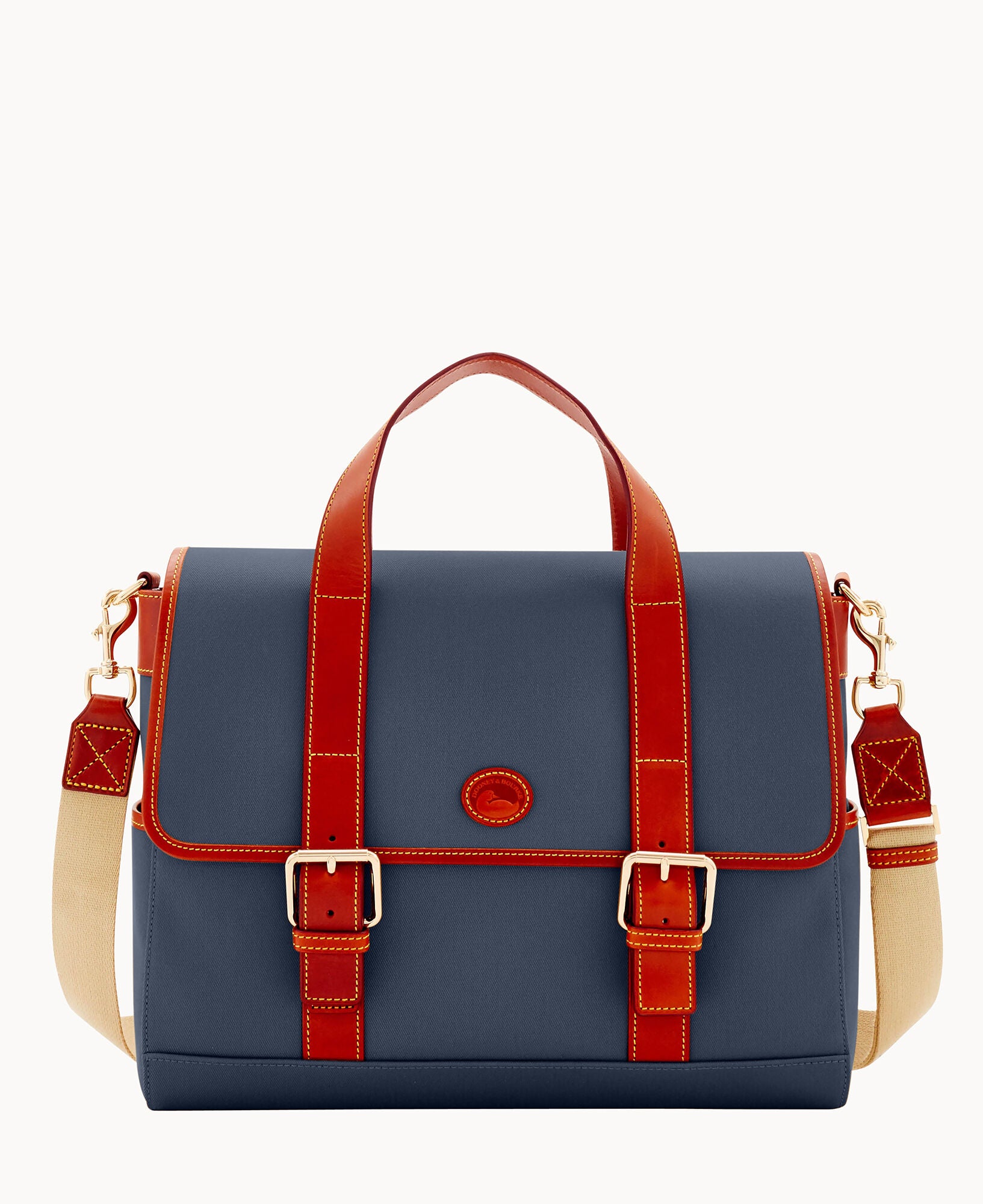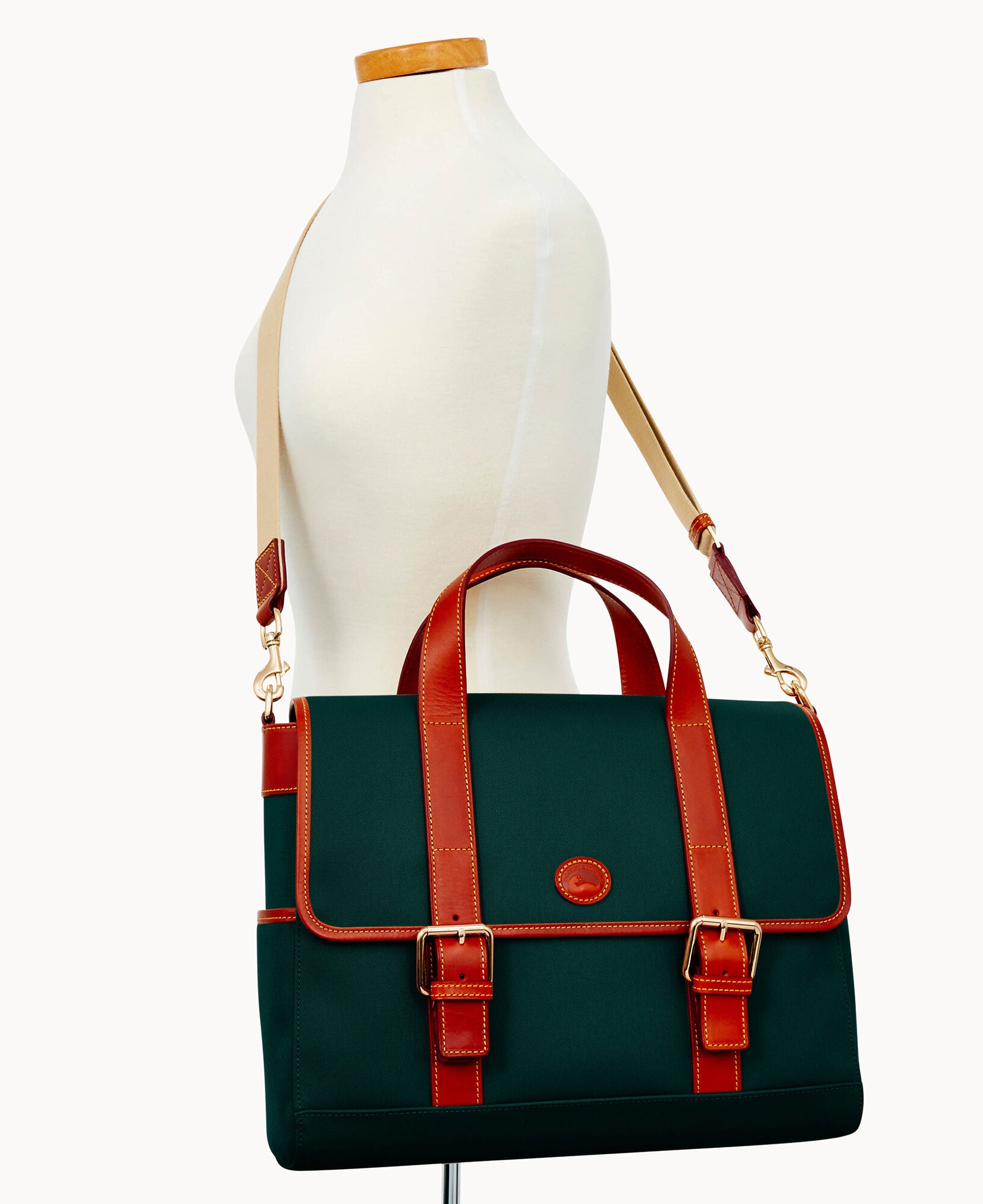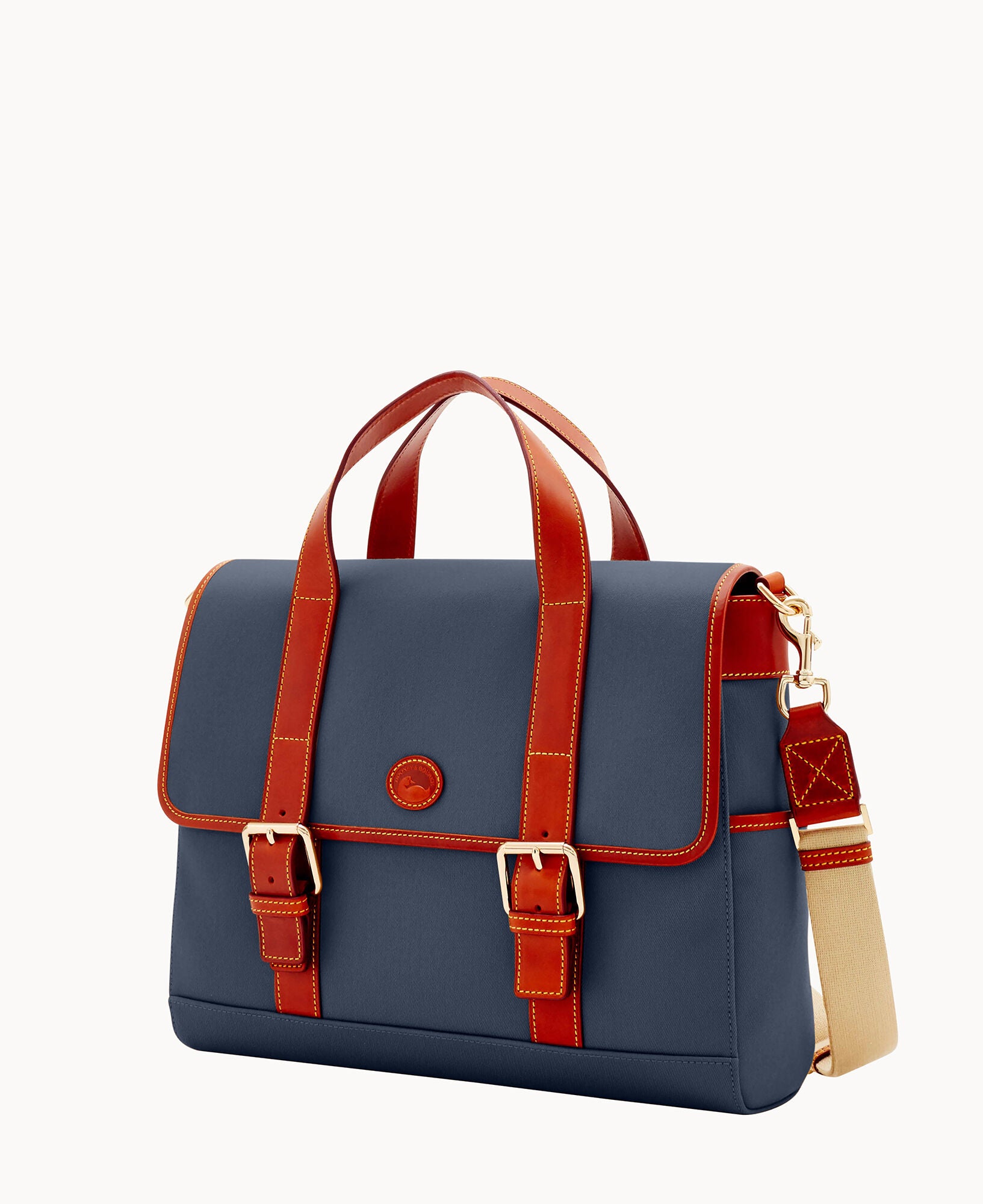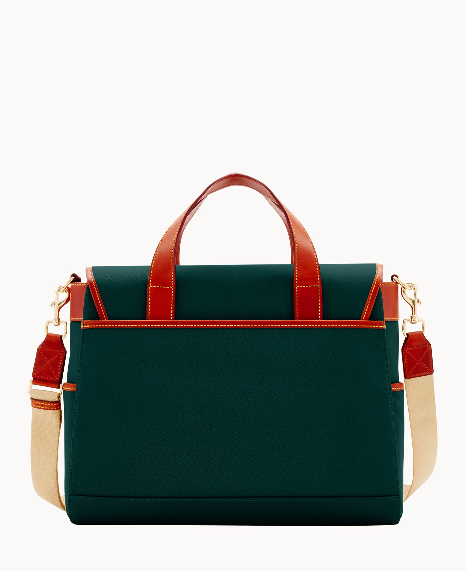 One inside zip pocket. Multifunctional pockets. Laptop compartment. Handle drop length 7.75″. Adjustable shoulder strap. Strap drop length 25″. Lined. Feet. Magnetic snap flap closure.