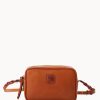 One outside zip pocket. One inside zip pocket. Cell phone pocket. Strap drop length 10″. Feet. Zipper closure.