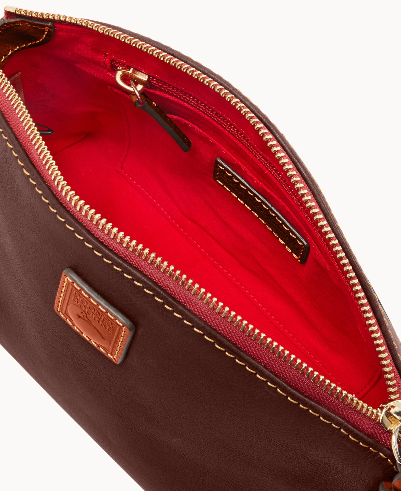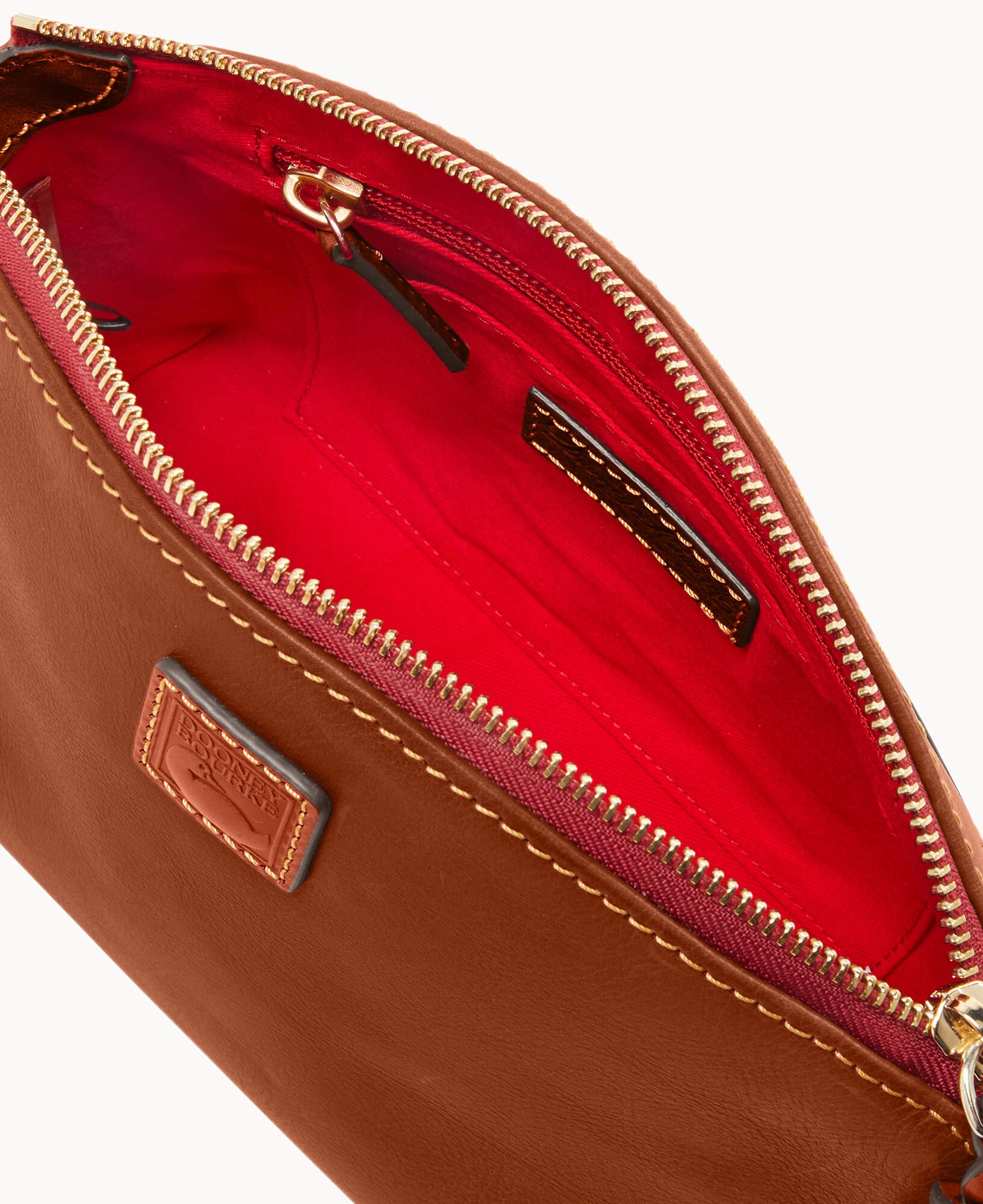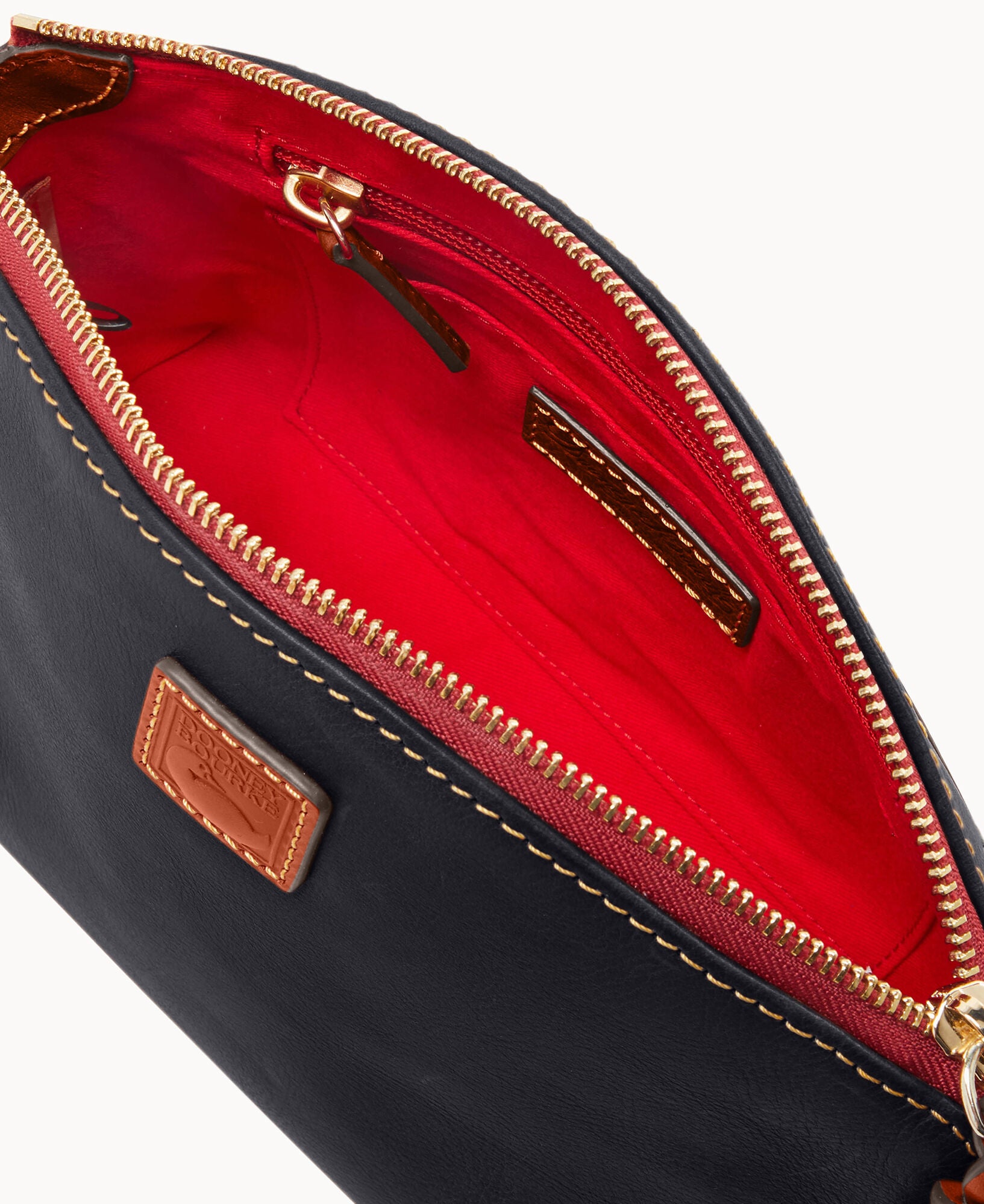 One outside pocket. One inside zip pocket. Two inside pockets. Cell phone pocket. Adjustable shoulder strap. Strap drop length 24.5″. Lined. Zipper closure.
