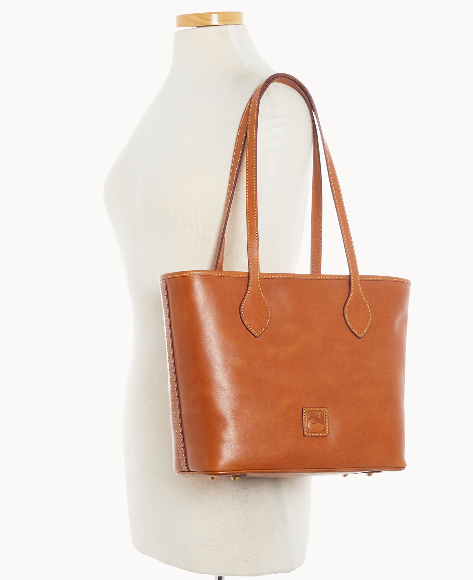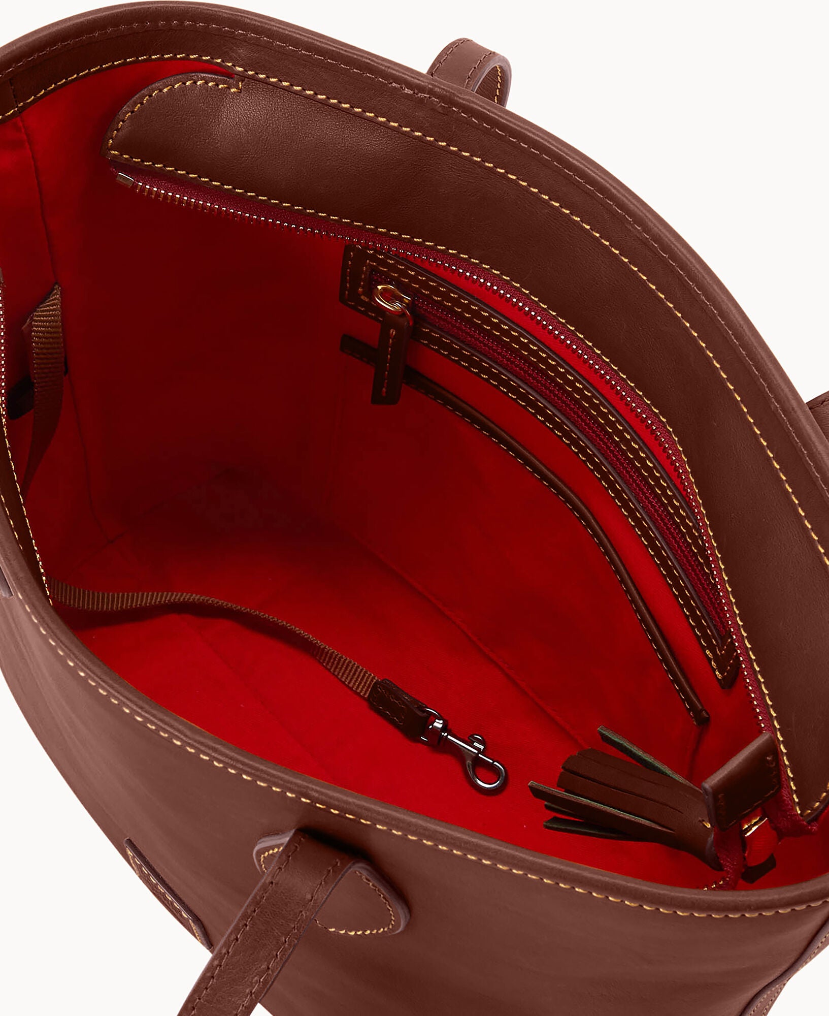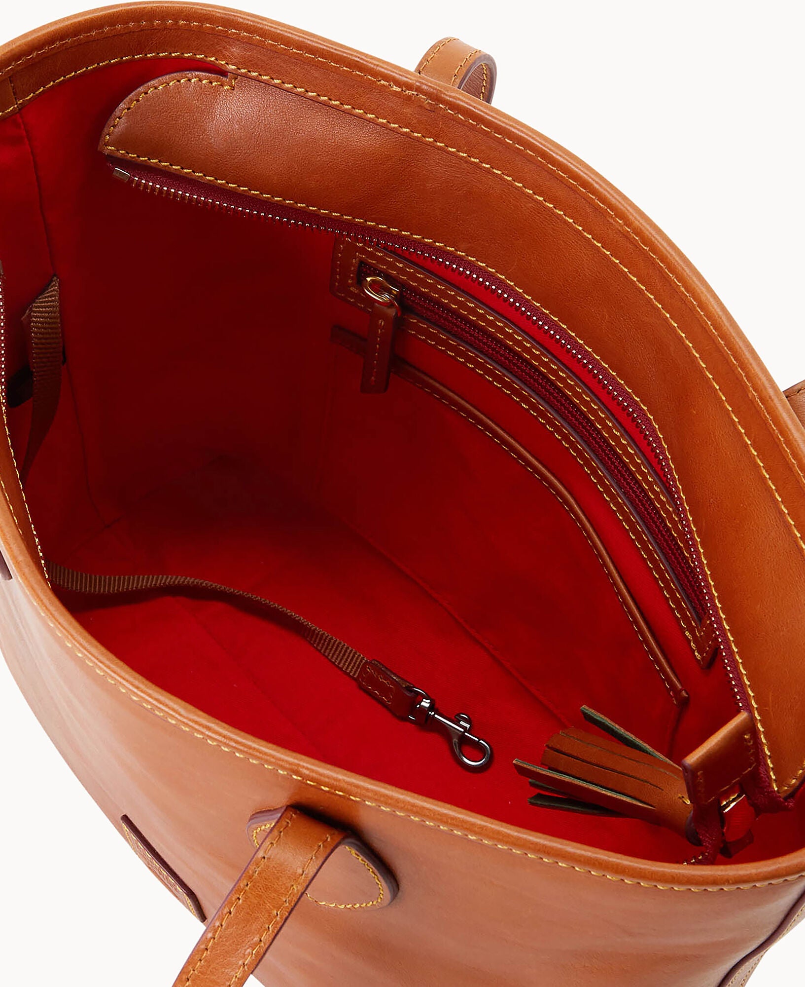 One inside zip pocket. Two inside pockets. Cell phone pocket. Inside key hook. Strap drop length 11″. Lined. Feet. Zipper closure.