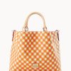 One inside zip pocket. Two inside pockets. Cell phone pocket. Inside key hook. Handle drop length 2″. Adjustable shoulder straps. Strap drop length 12″. Lined. Feet. Zipper closure.