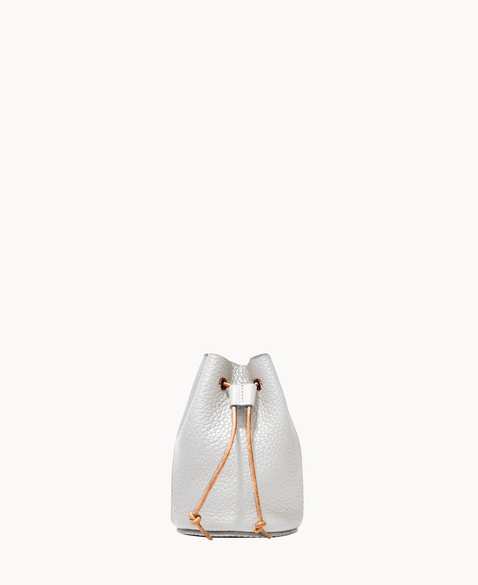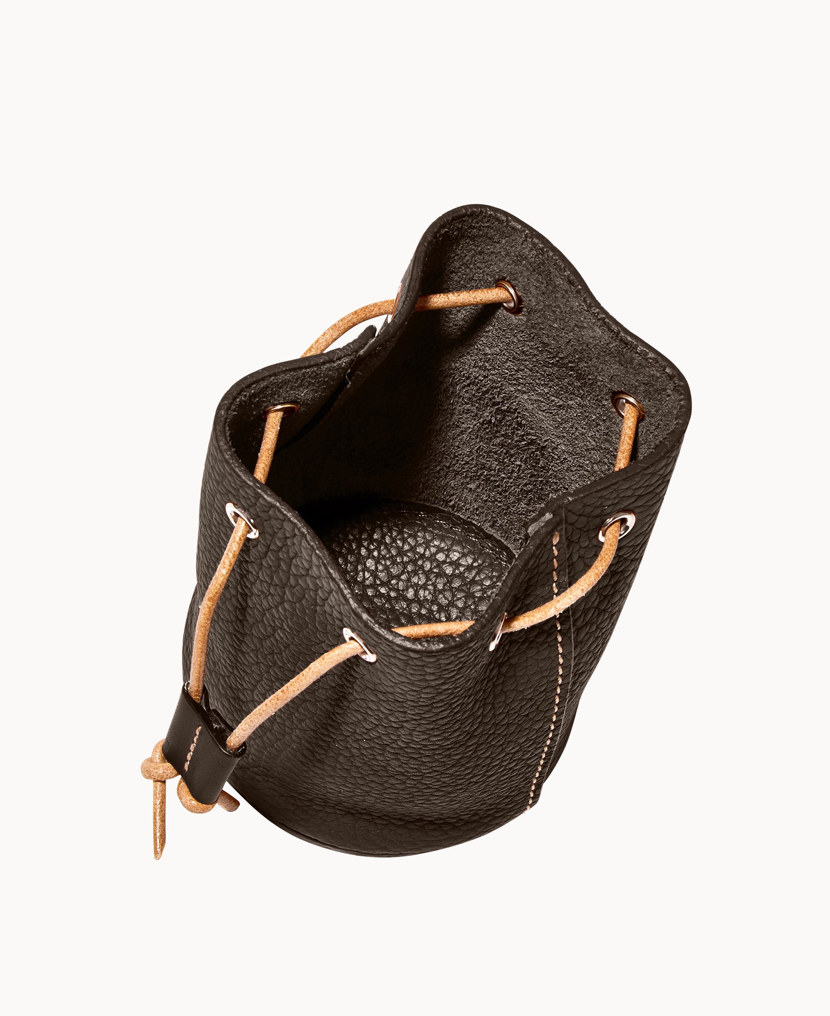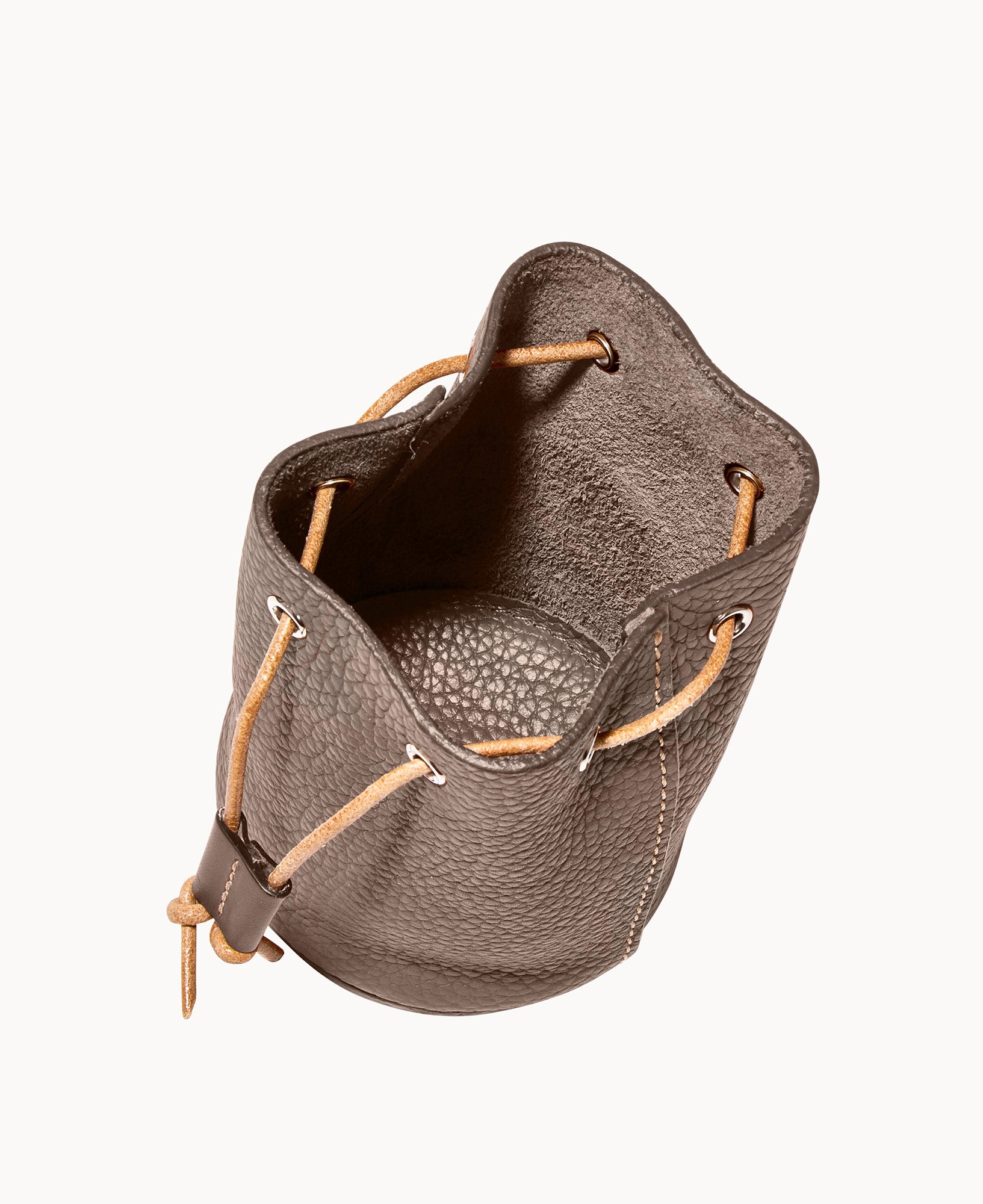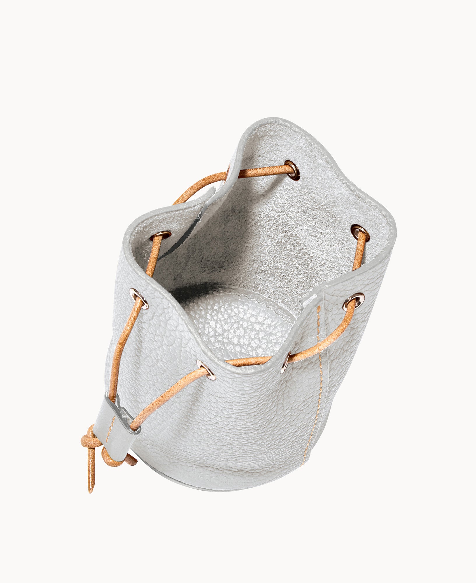 Lined. Drawstring closure.