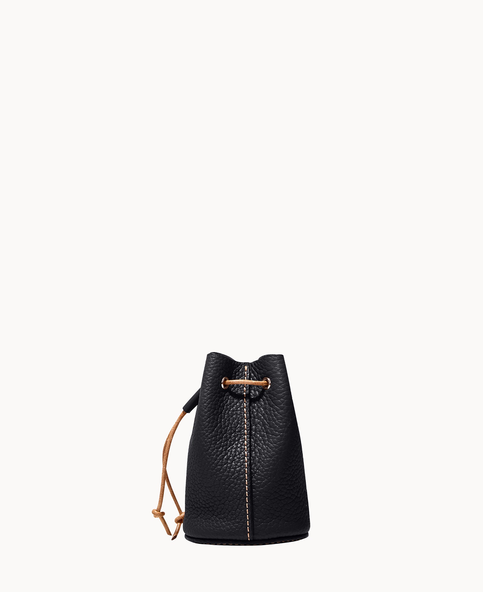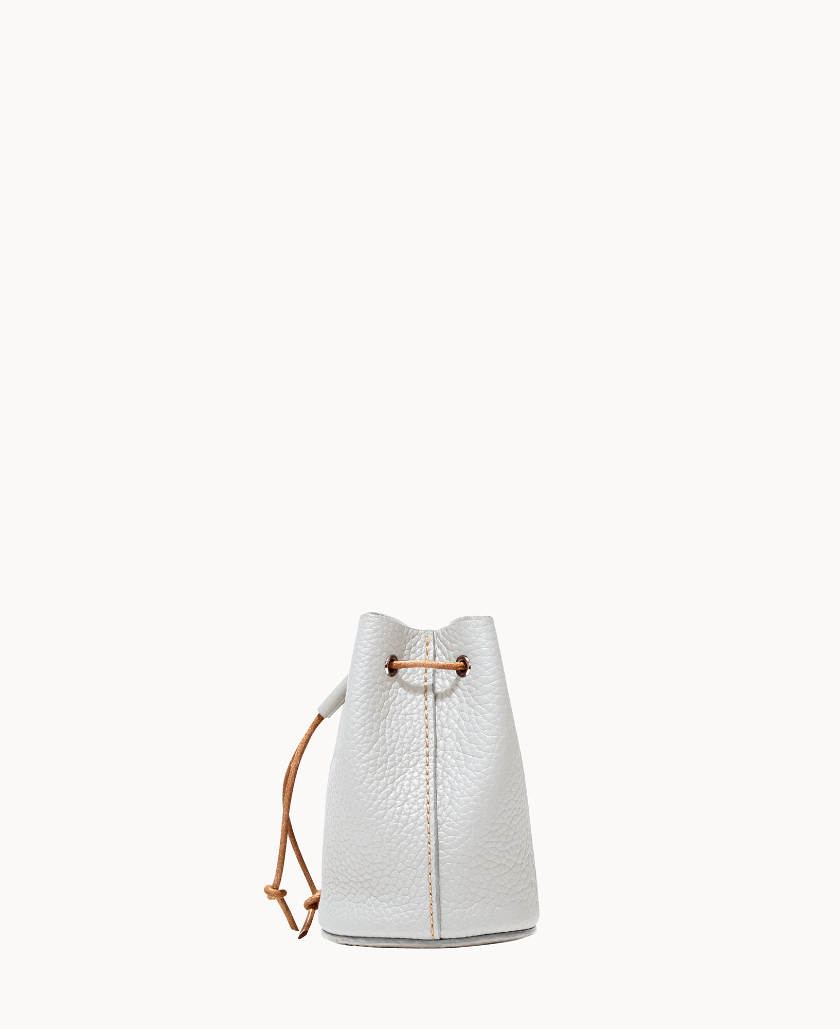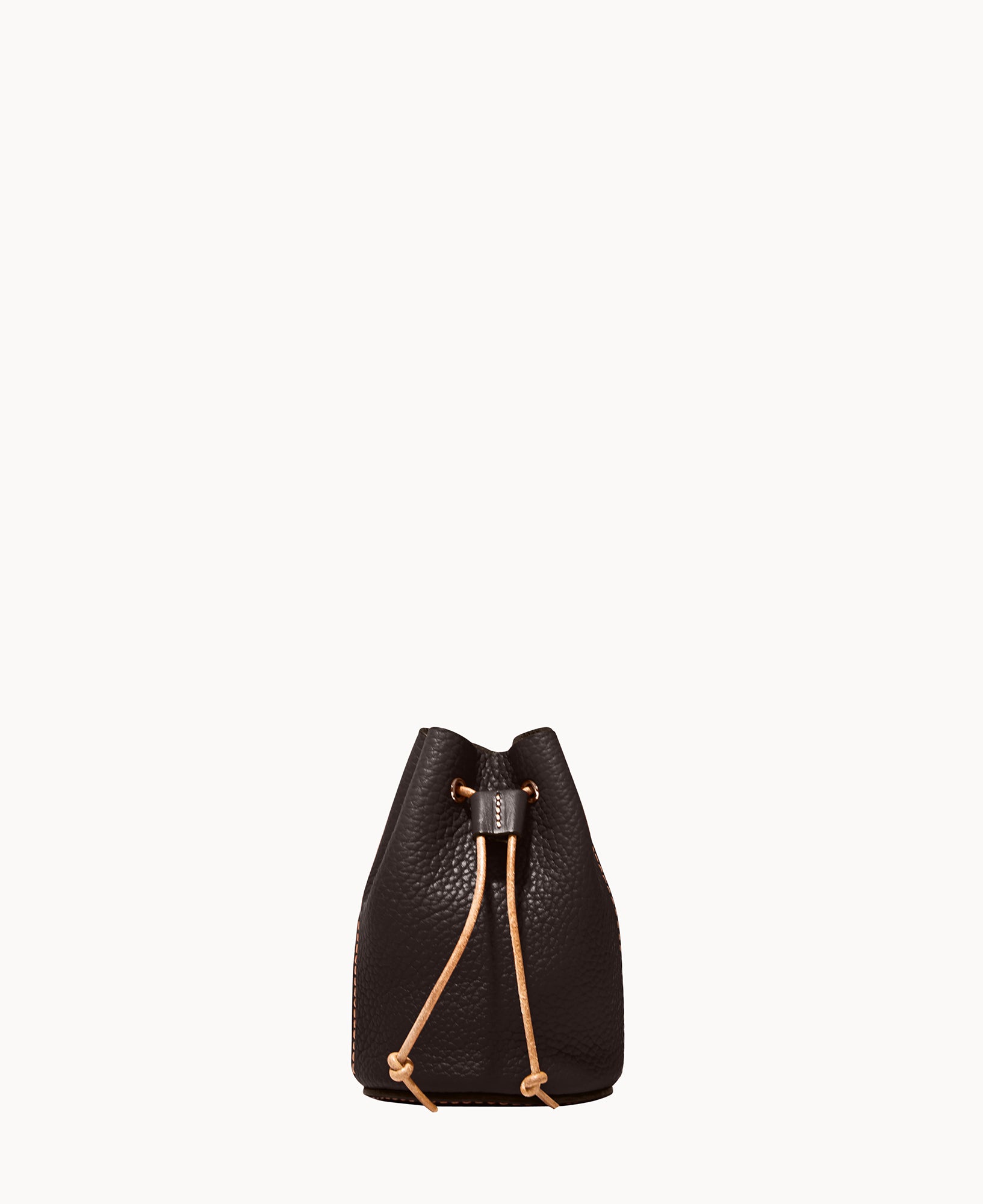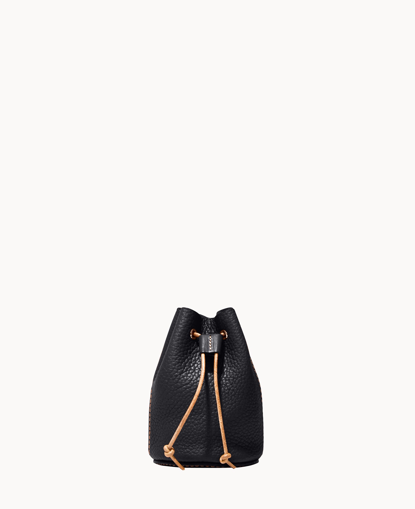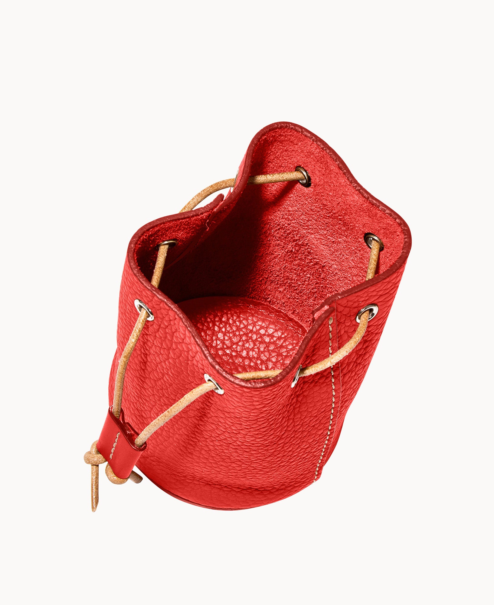 Lined. Drawstring closure.