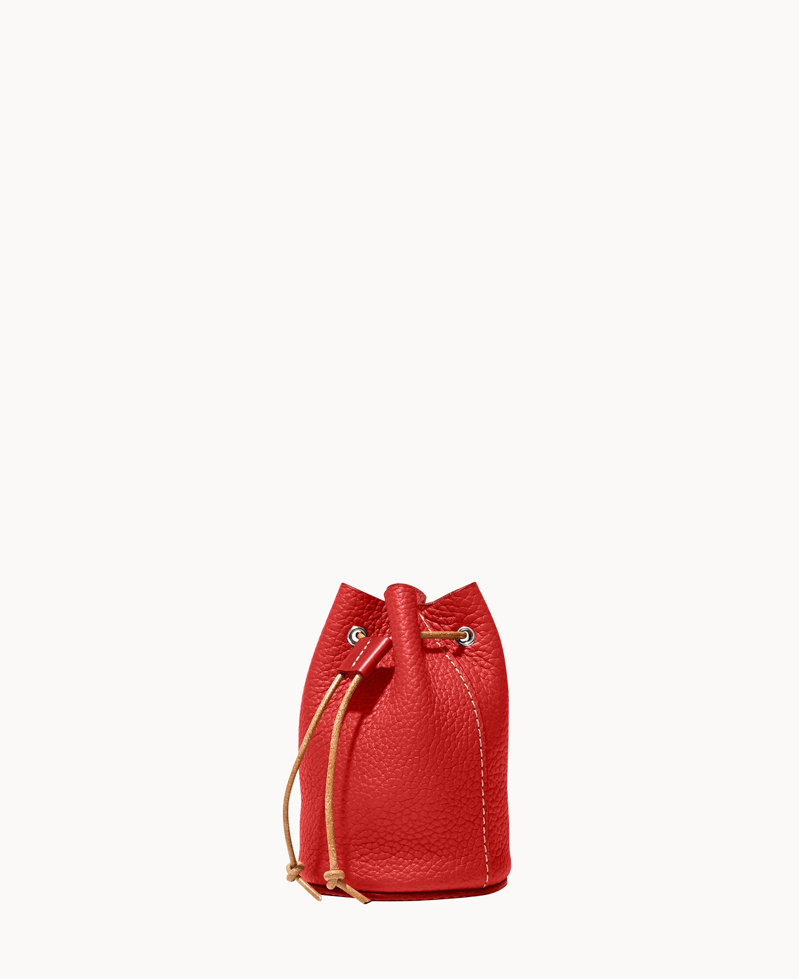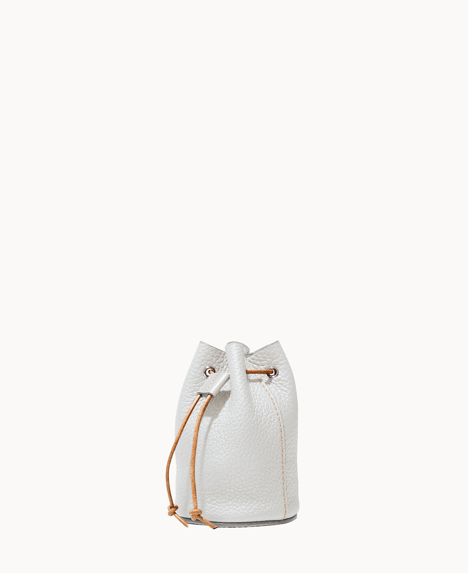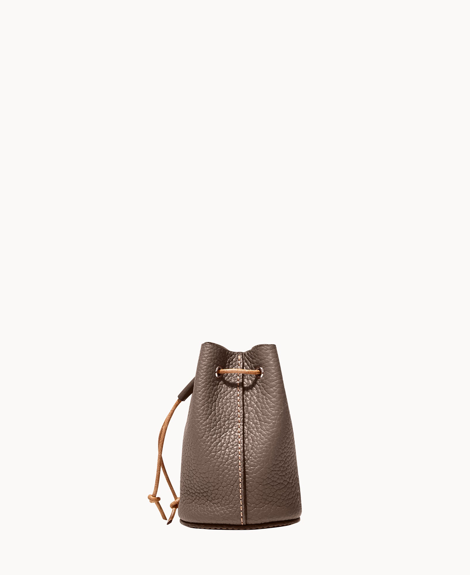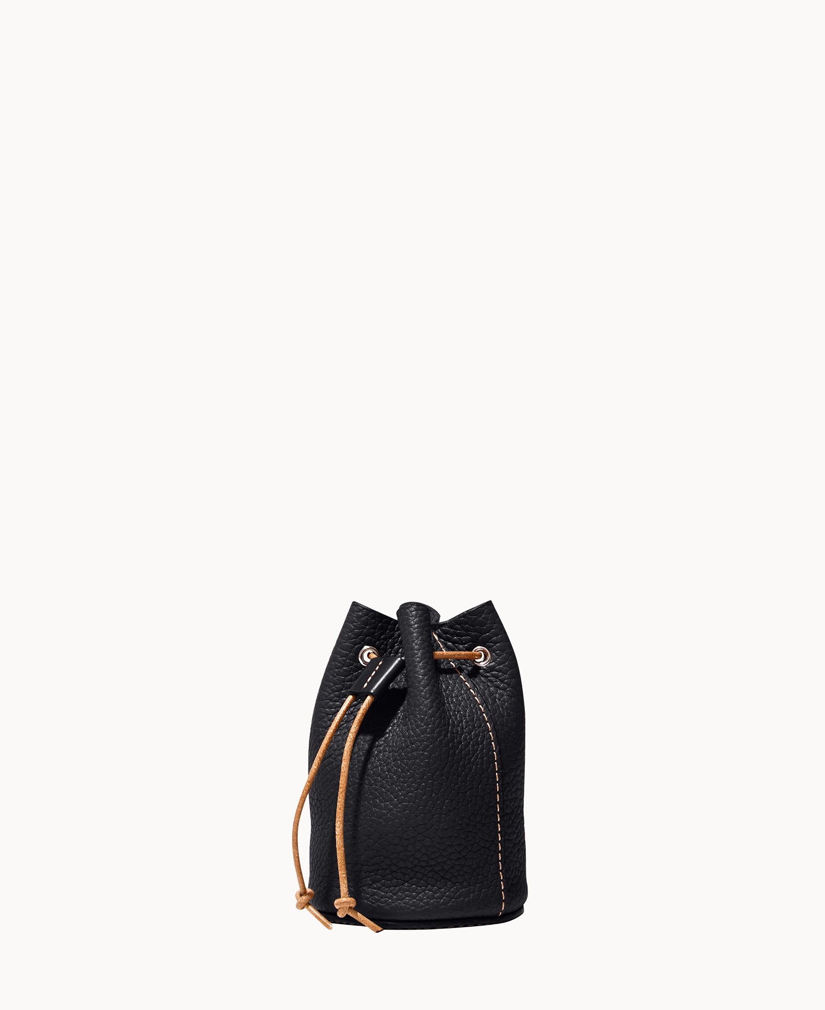 Lined. Drawstring closure.