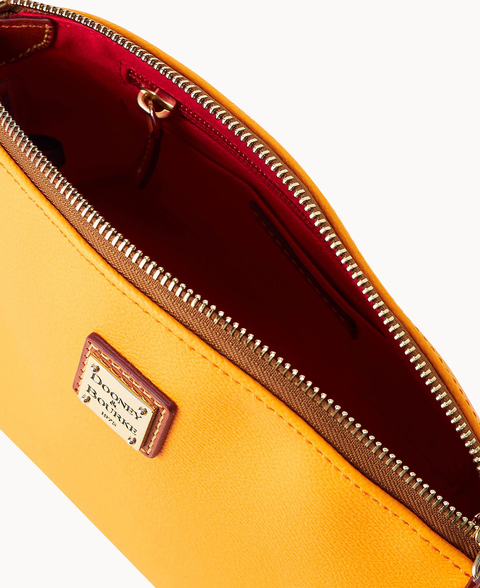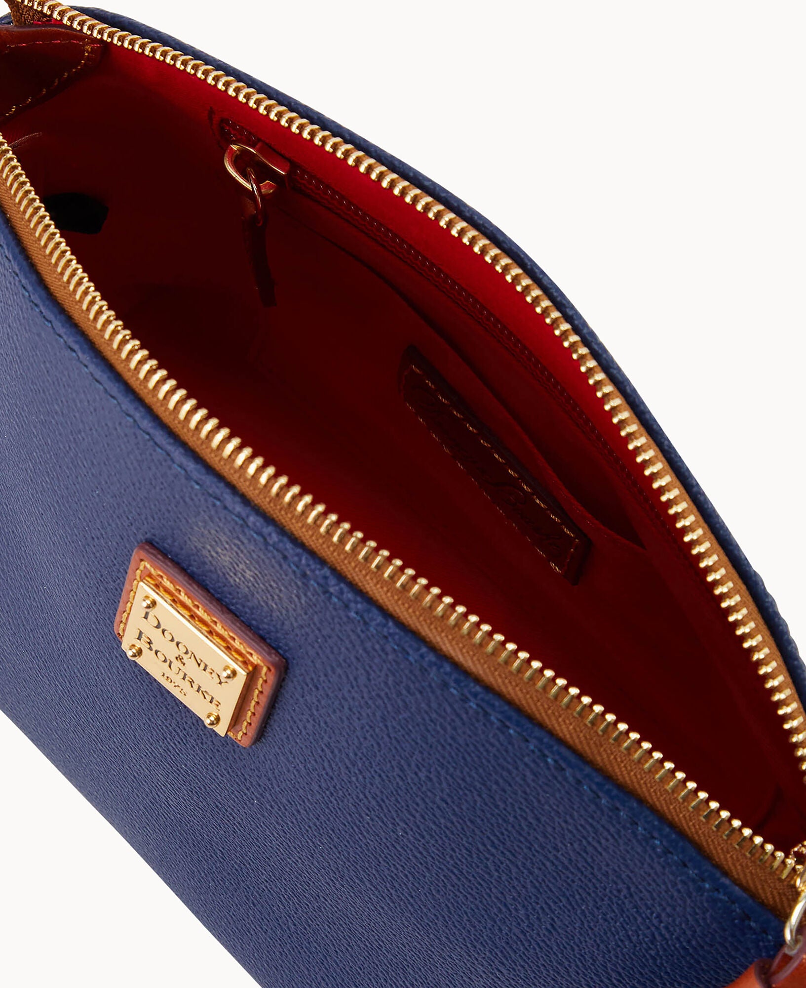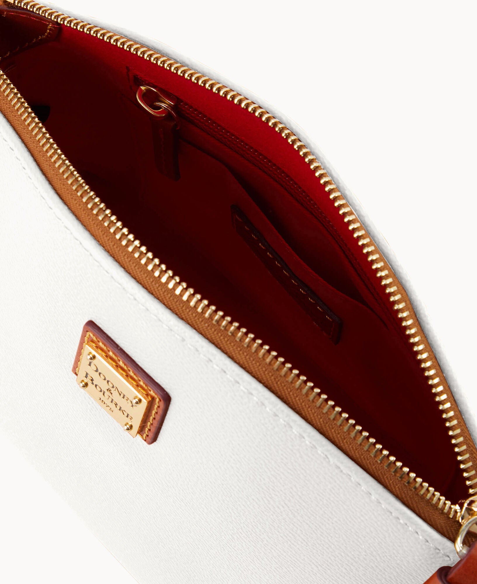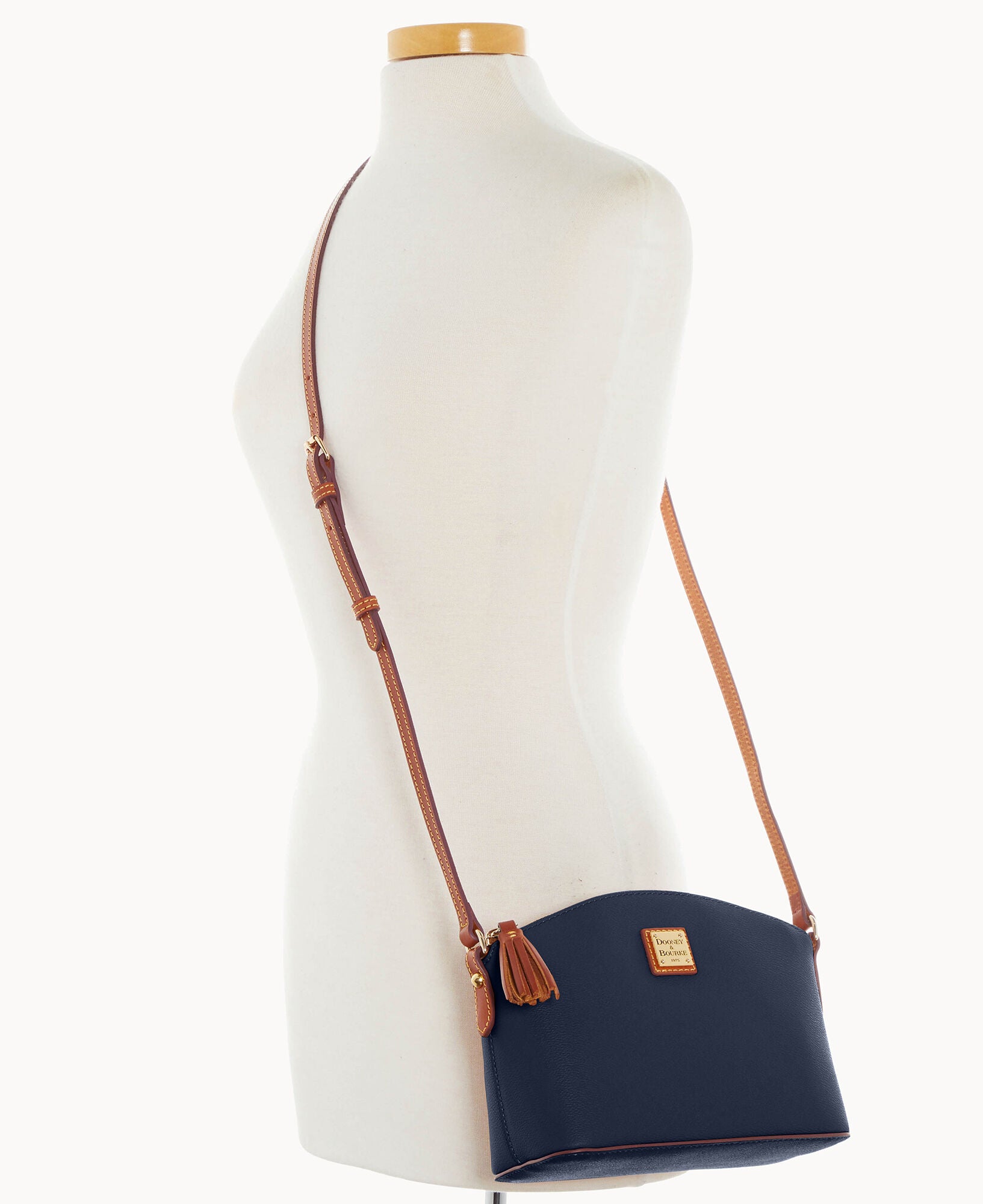 One inside zip pocket. Two inside slip pockets. Adjustable strap. Strap drop length 25″. Lined. Zipper closure.