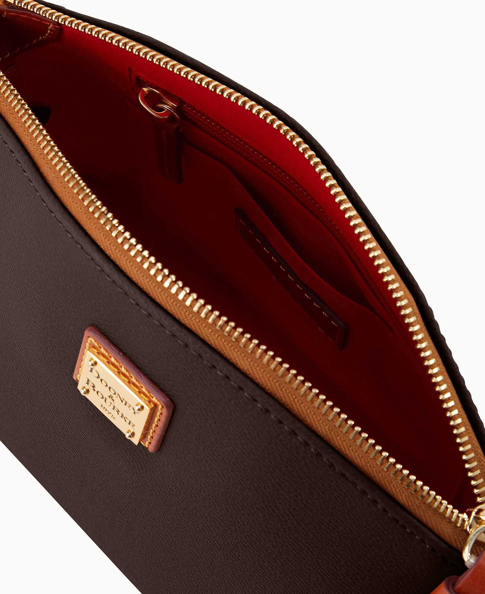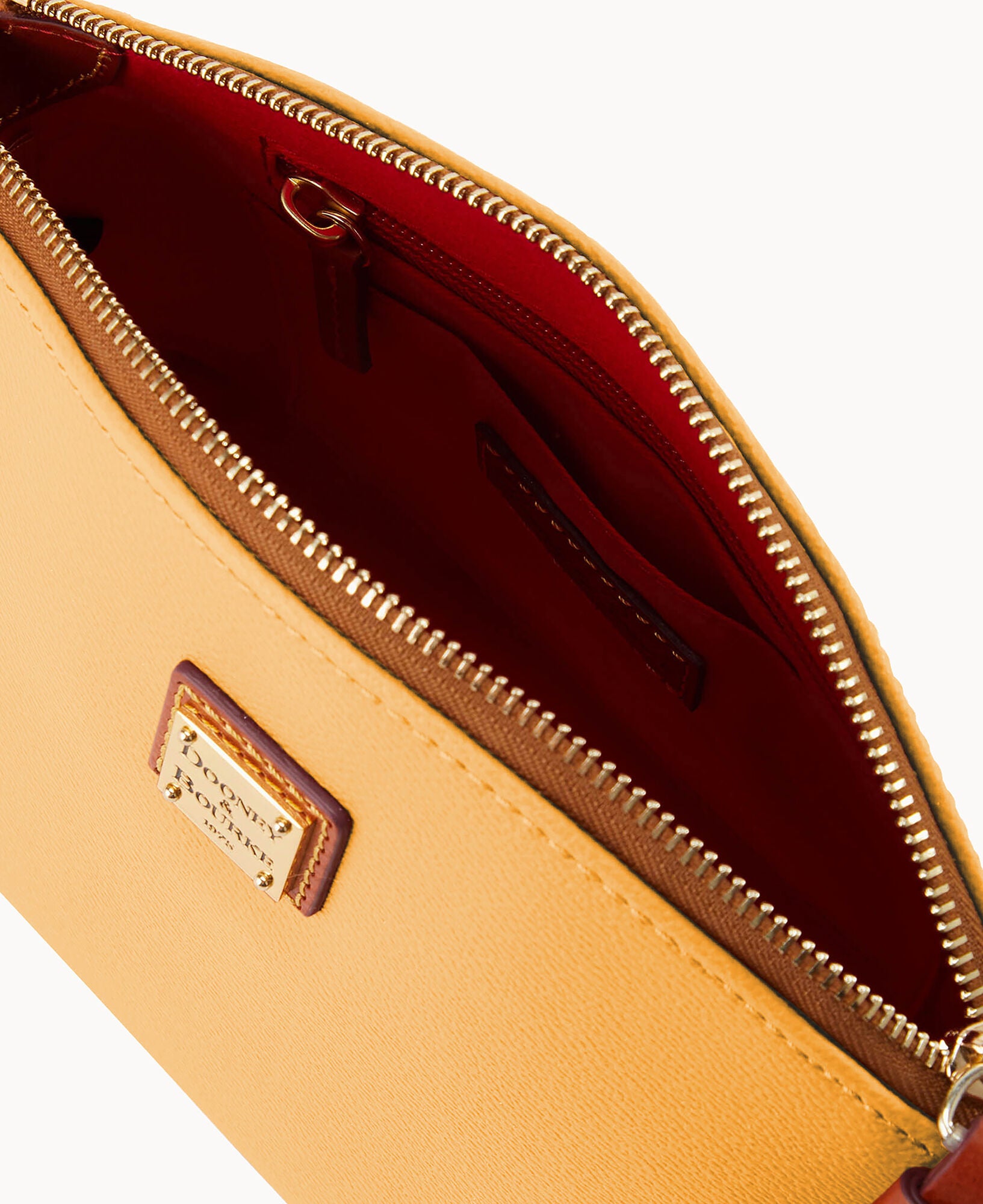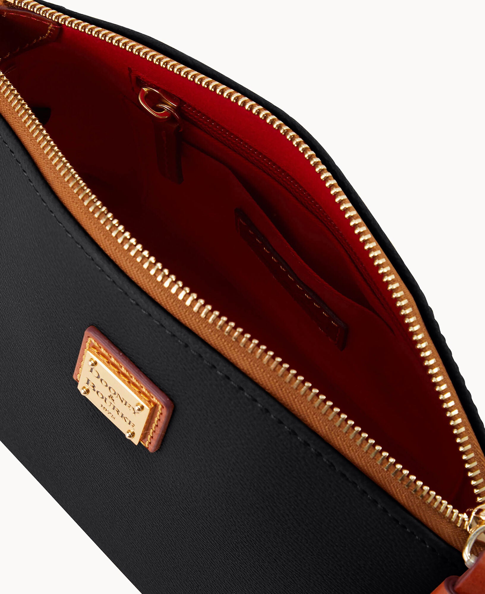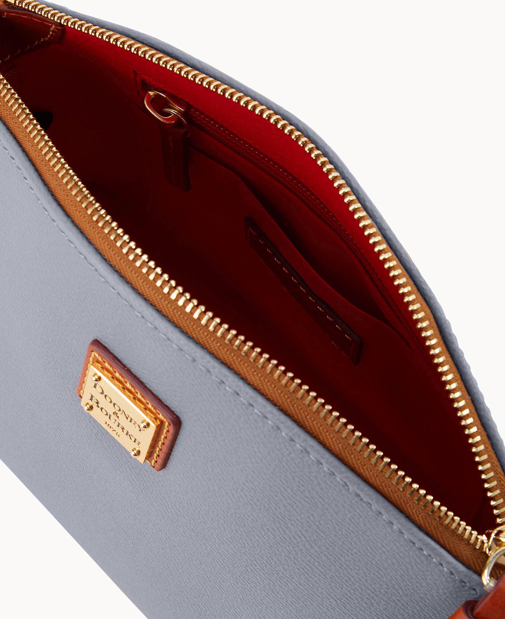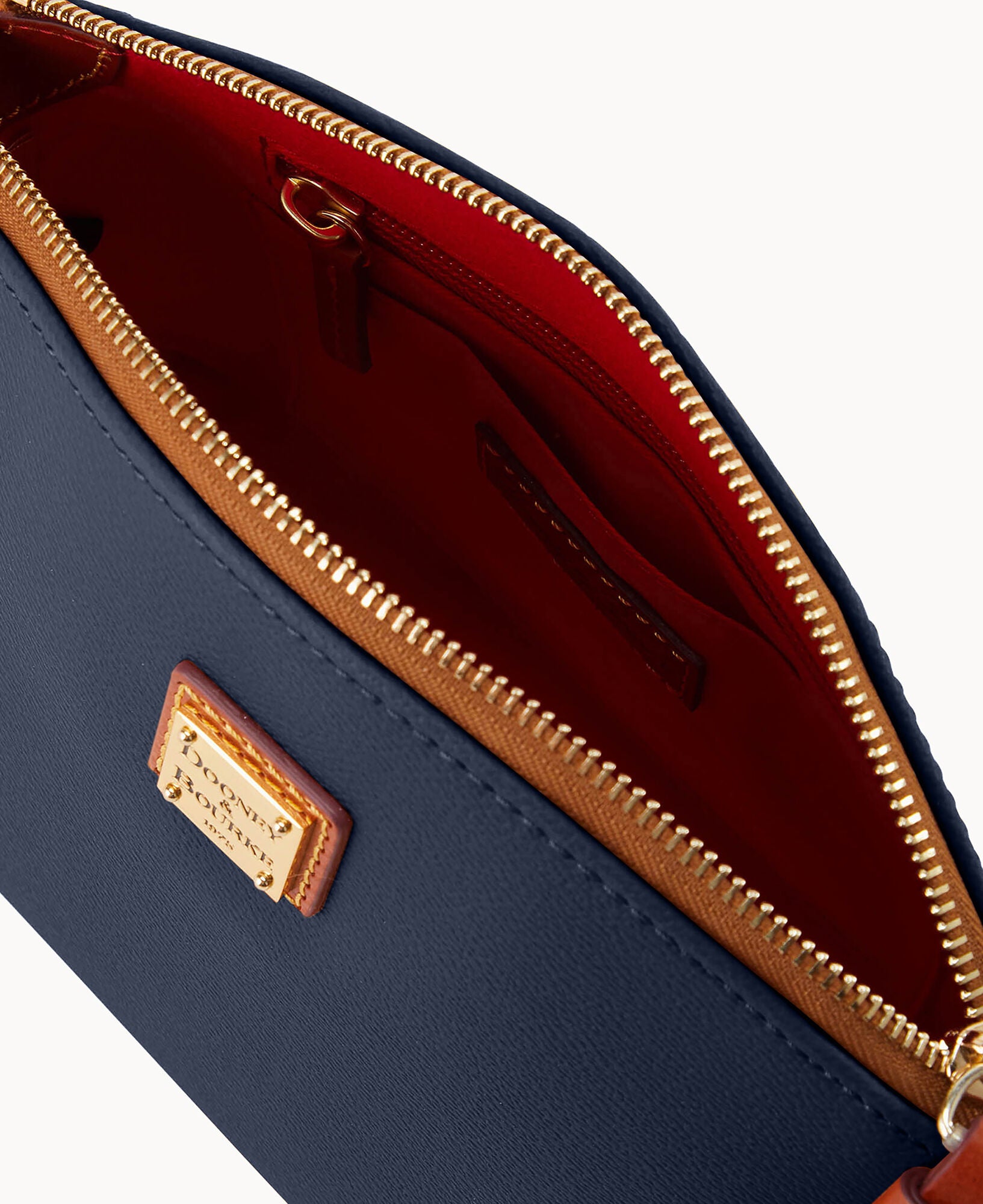 One inside zip pocket. Two inside slip pockets. Adjustable strap. Strap drop length 25″. Lined. Zipper closure.