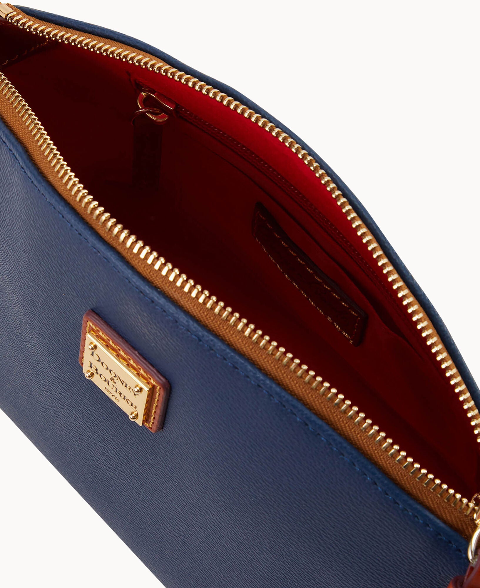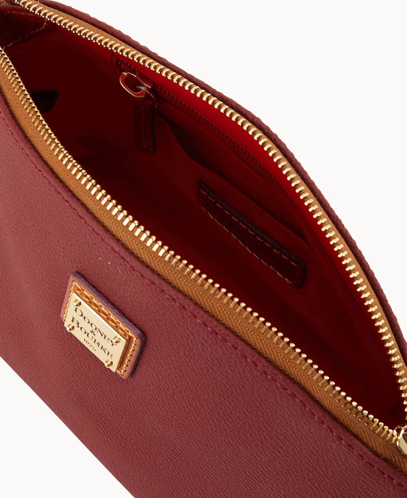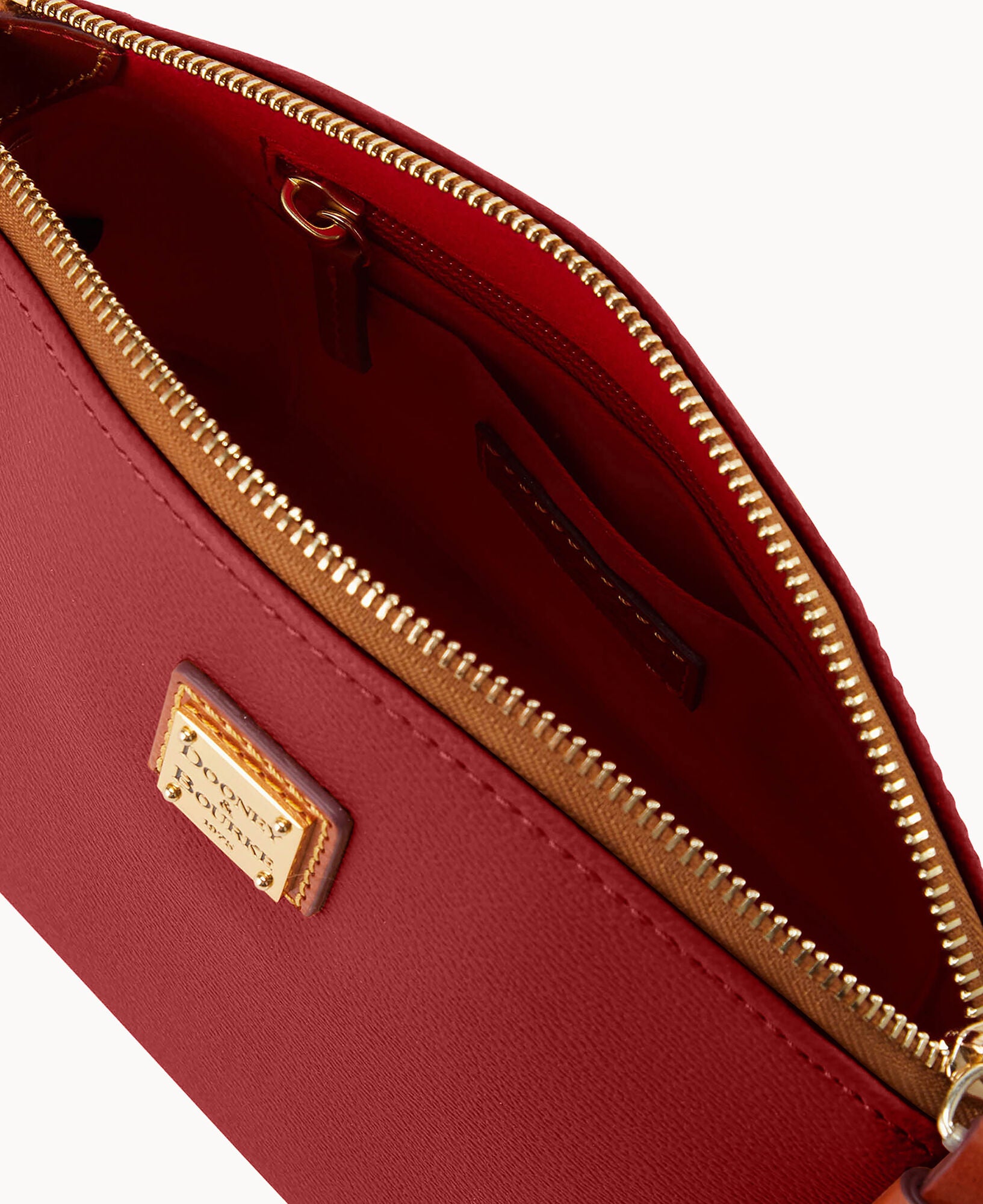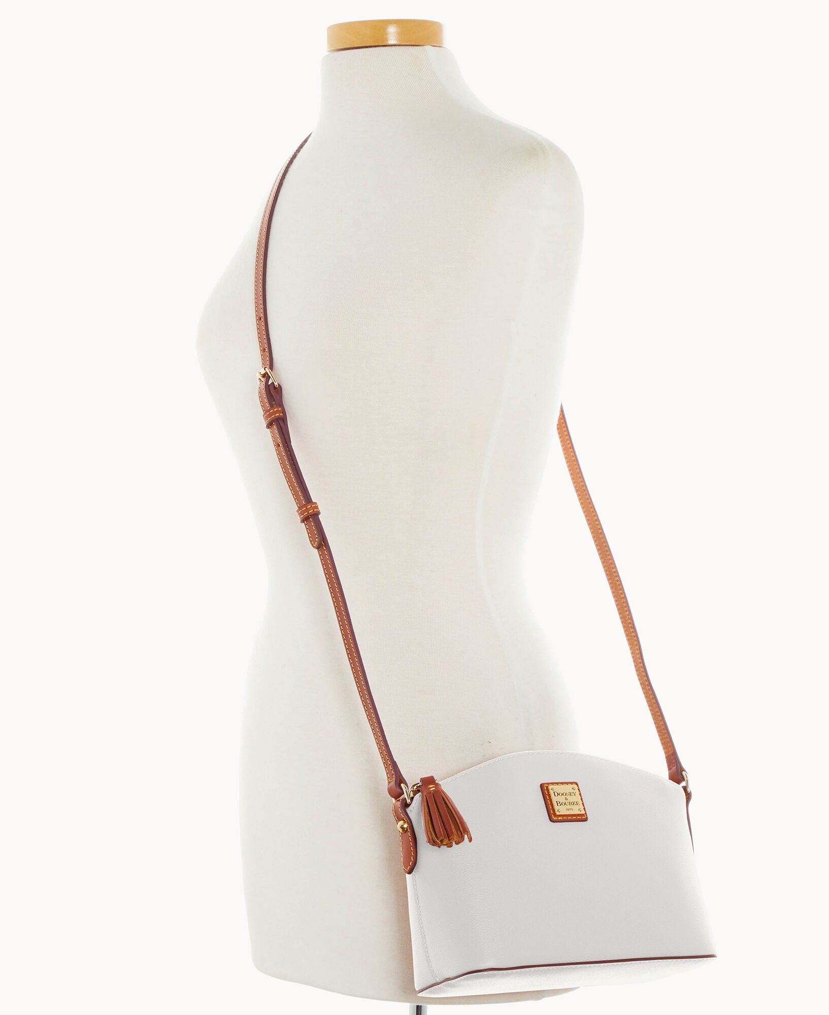 One inside zip pocket. Two inside slip pockets. Adjustable strap. Strap drop length 25″. Lined. Zipper closure.
