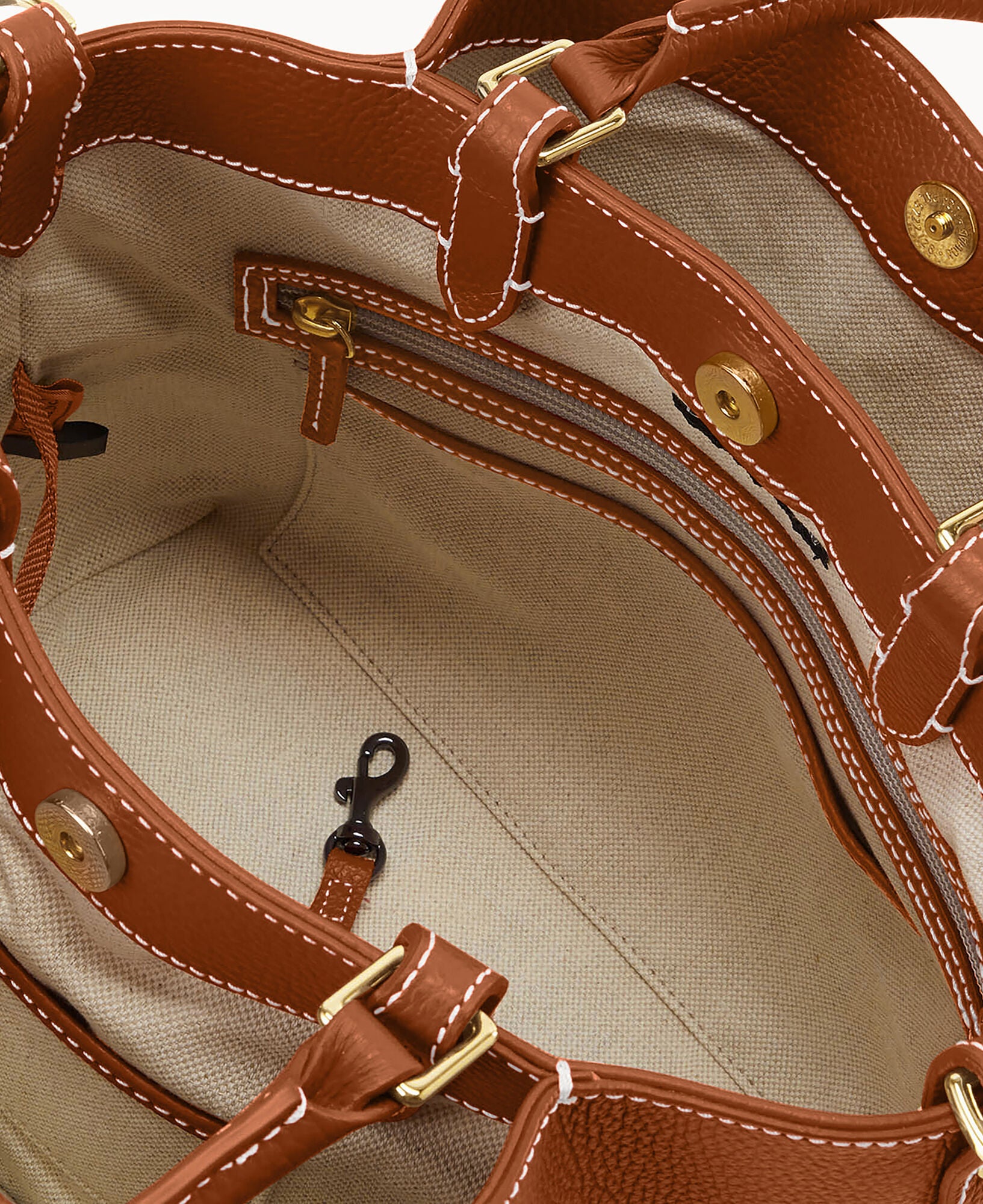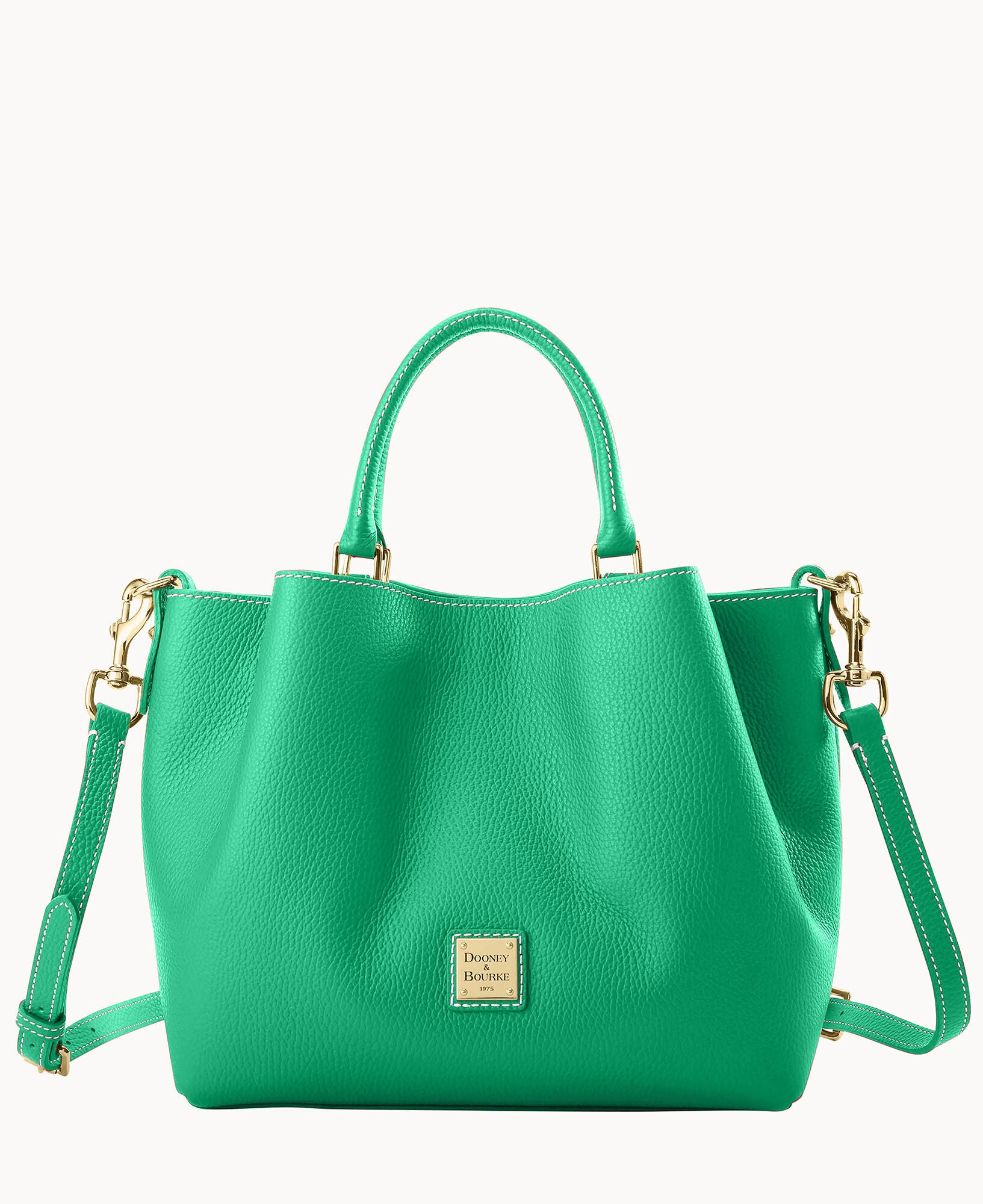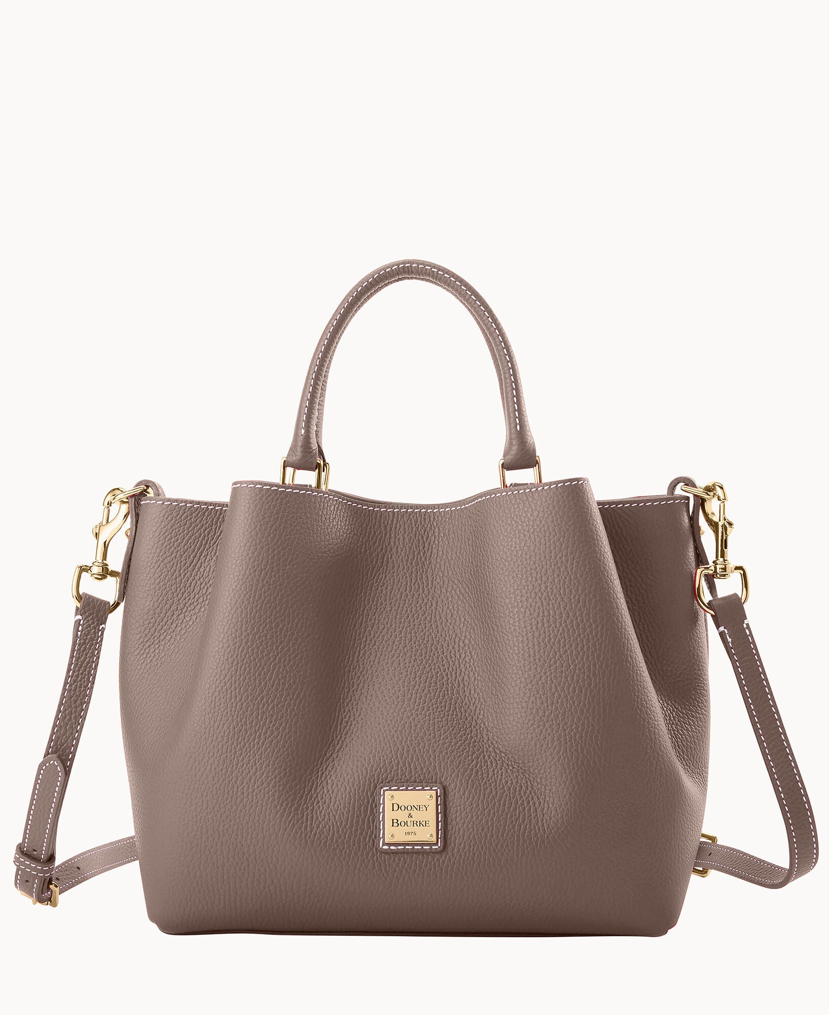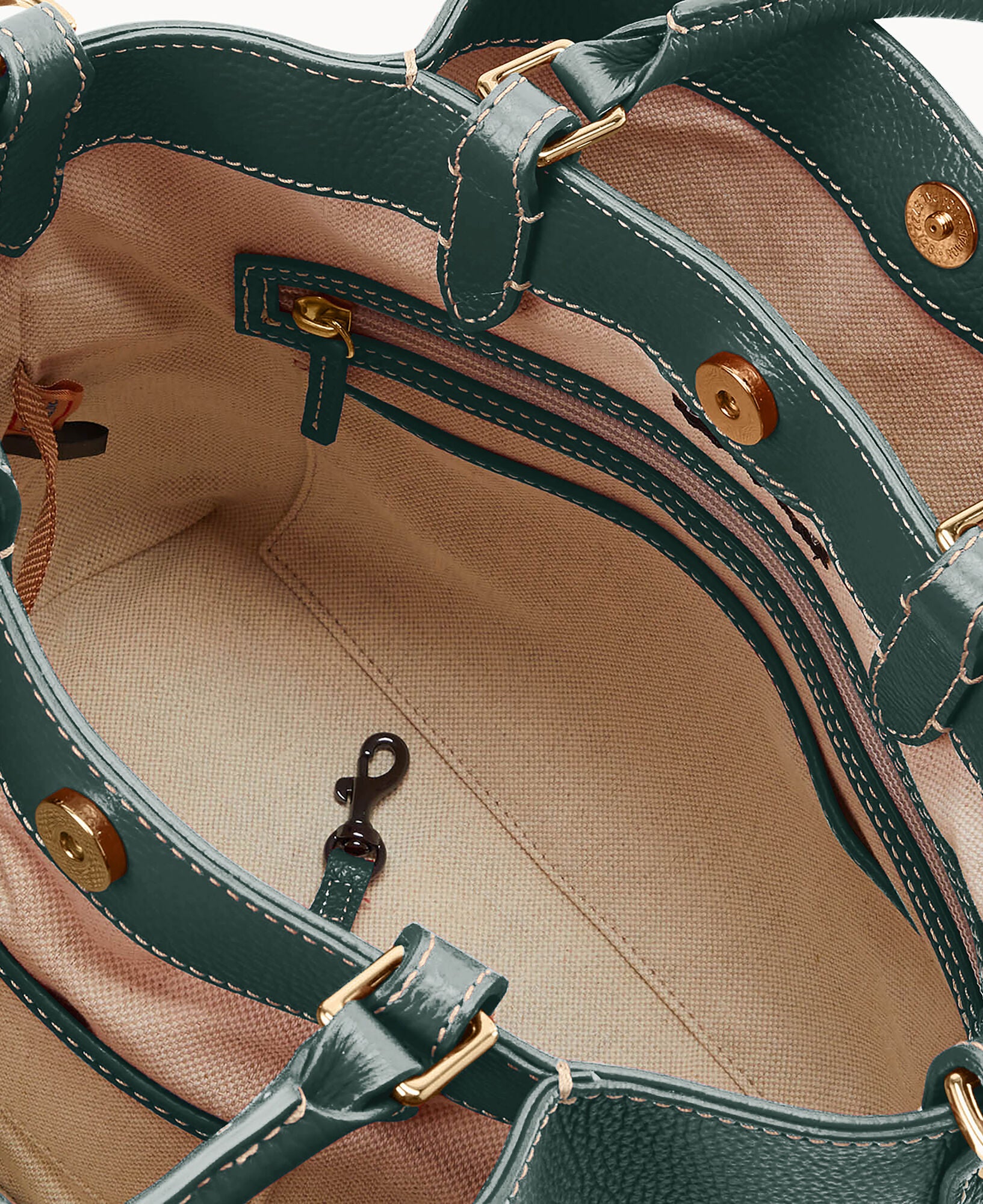 Front and back magnetic snap pockets. One inside zip pocket. Two inside pockets. One credit card slot. Cell phone pocket. Inside key hook. Handle drop length 5″. Adjustable, detachable shoulder strap. Strap drop length 18″. Lined. Feet. Magnetic snap closure.