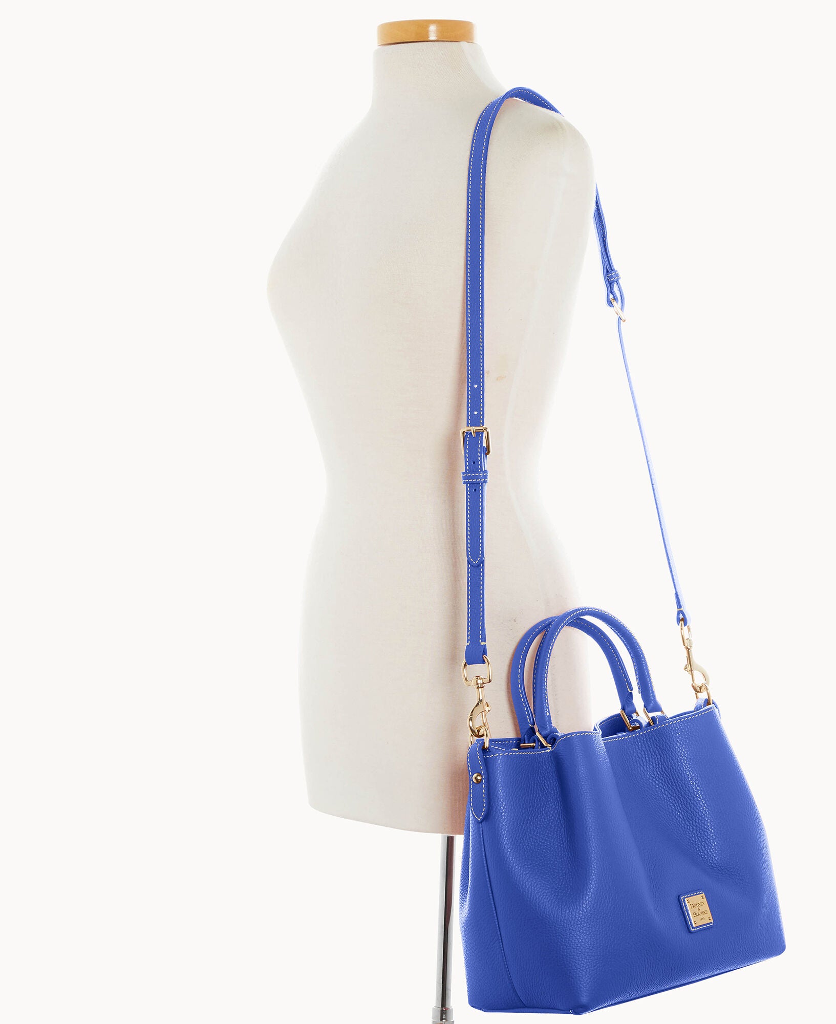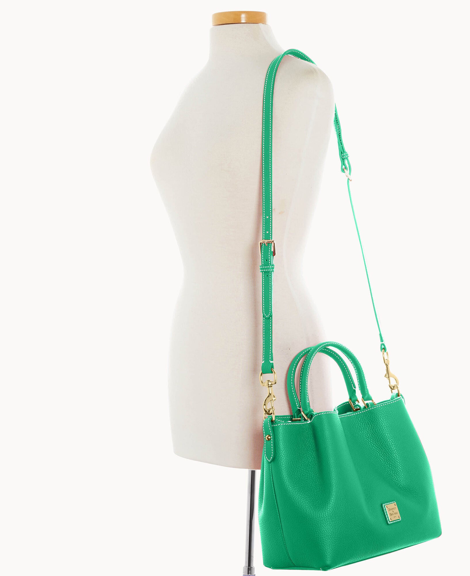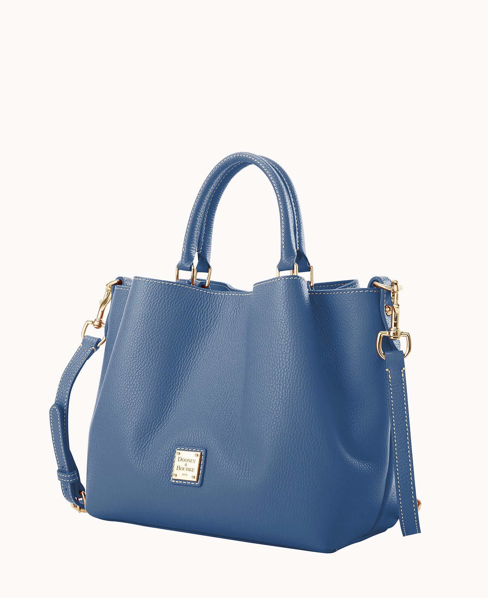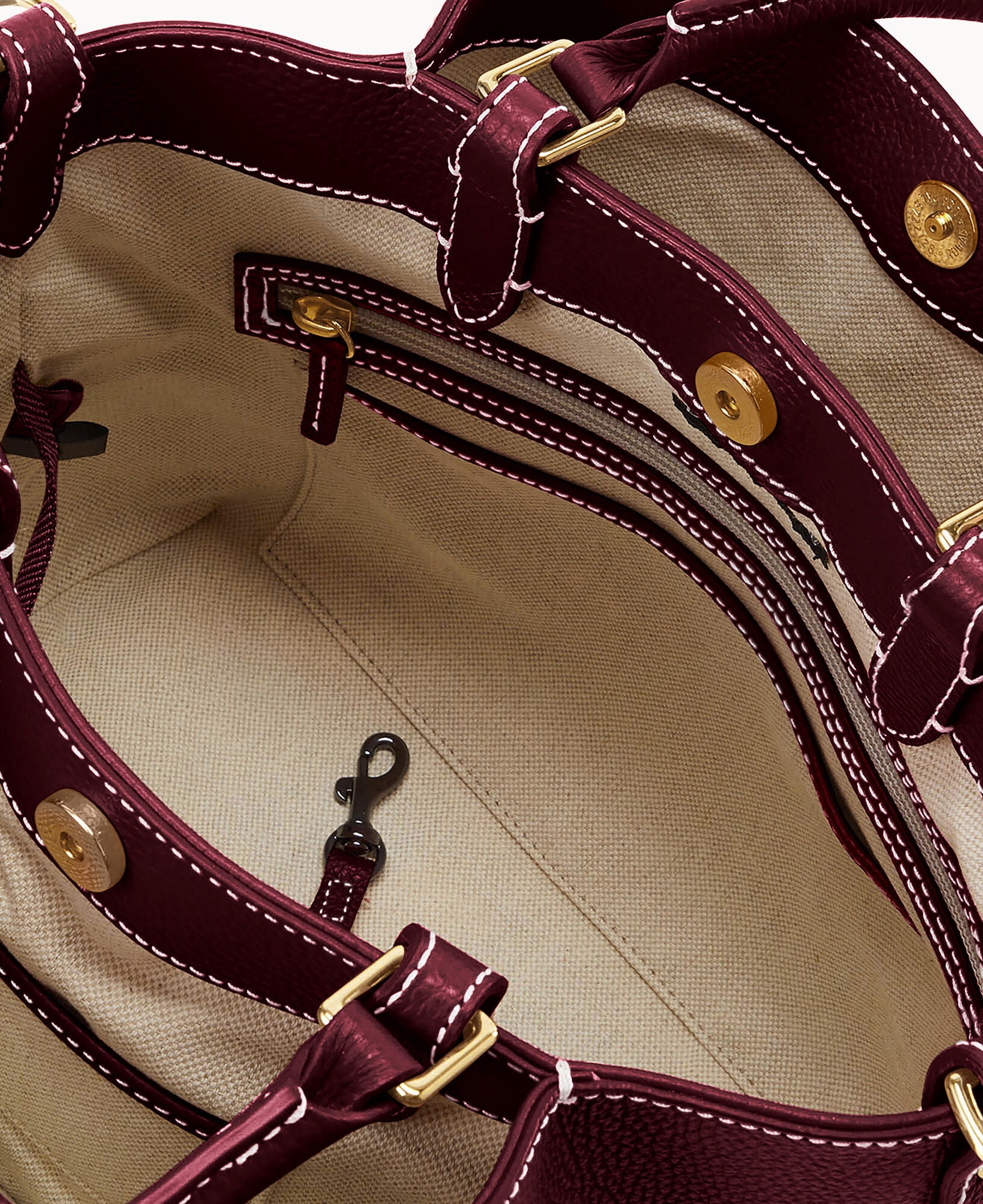 Front and back magnetic snap pockets. One inside zip pocket. Two inside pockets. One credit card slot. Cell phone pocket. Inside key hook. Handle drop length 5″. Adjustable, detachable shoulder strap. Strap drop length 18″. Lined. Feet. Magnetic snap closure.