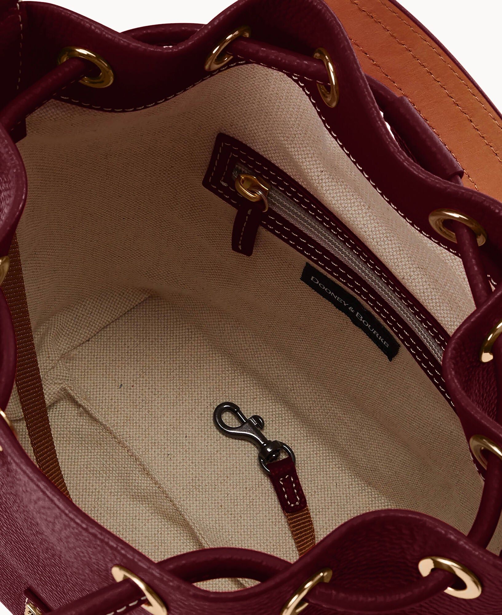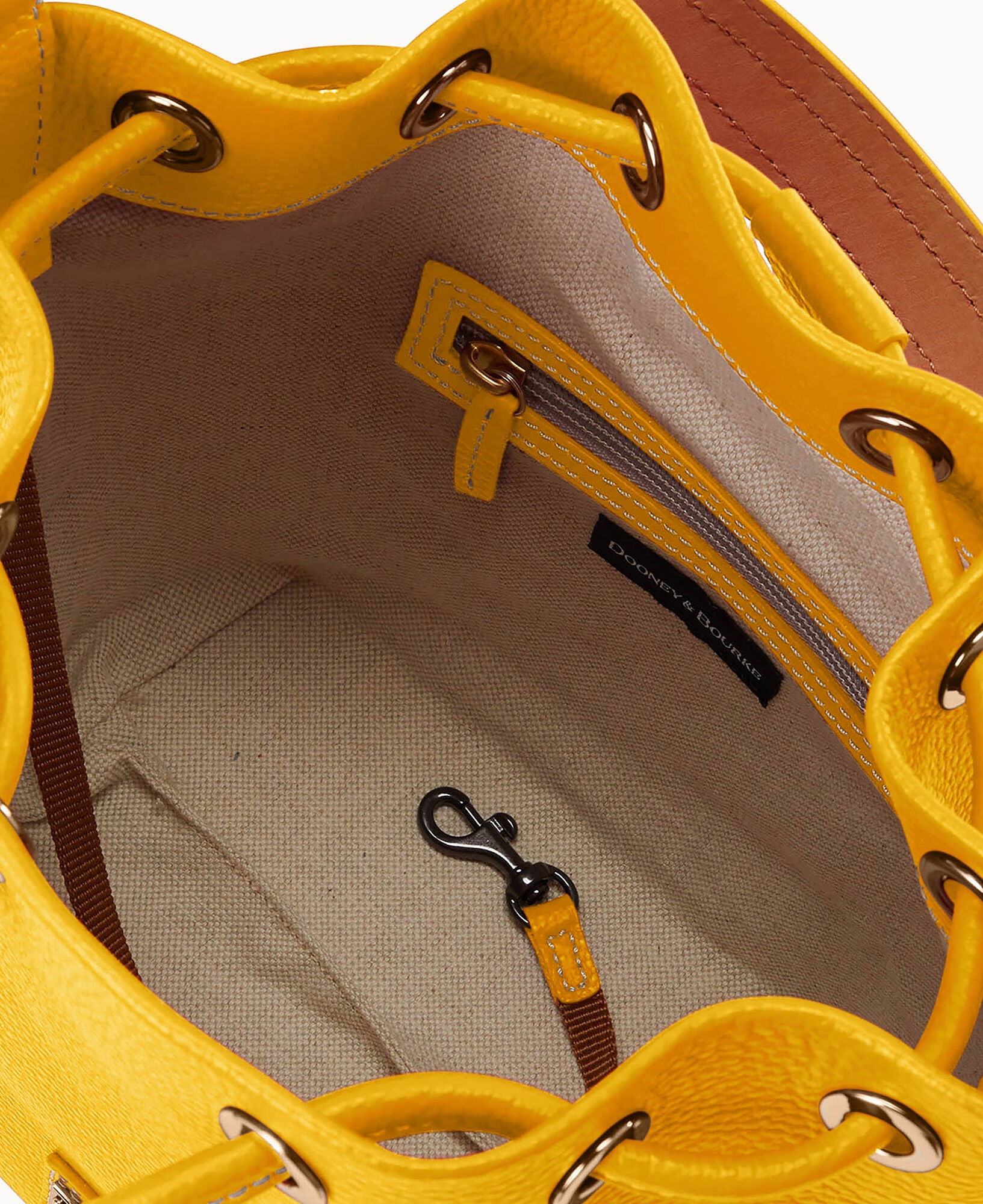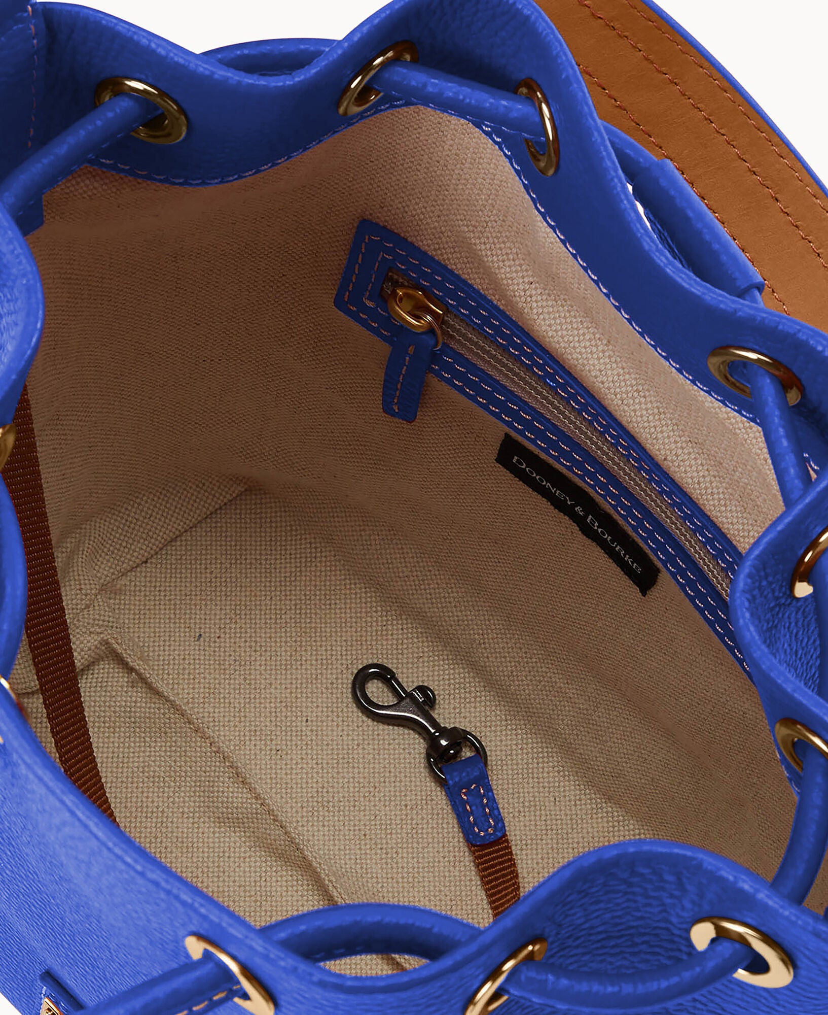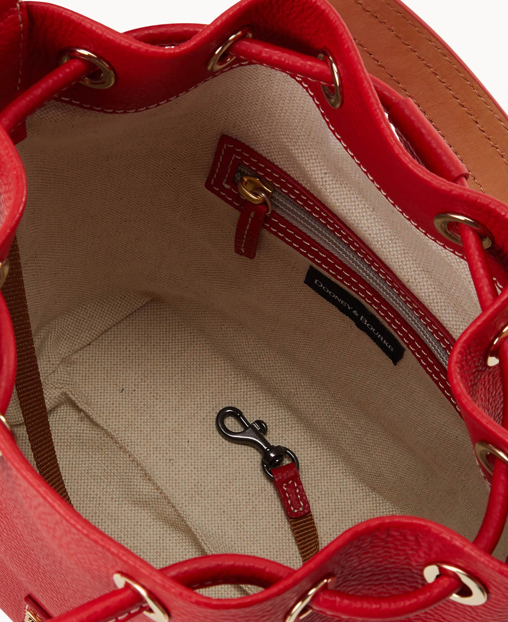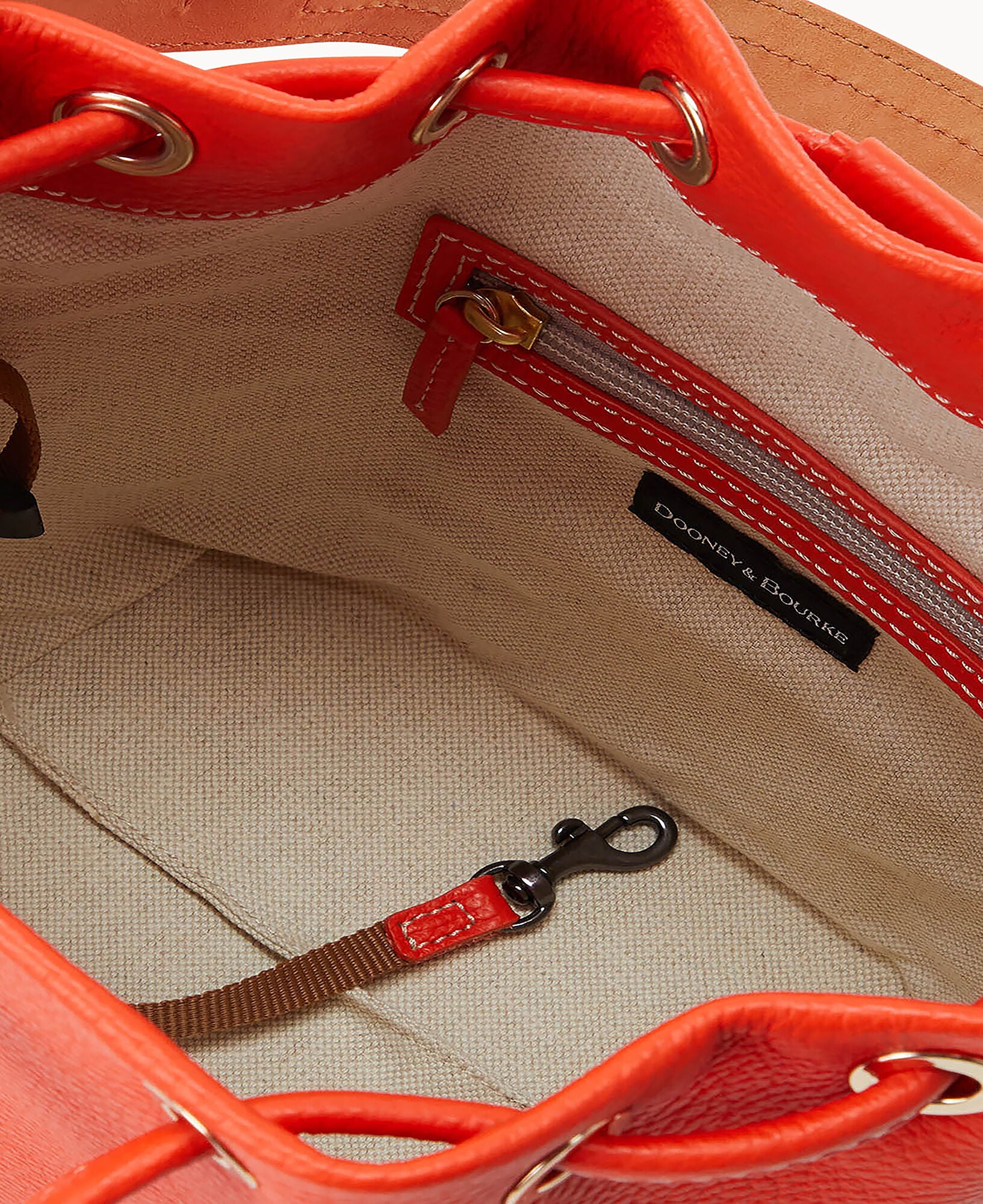 One inside pocket. One inside zip pocket. Inside key hook. Handle drop length 9″. Drawstring closure. Lined.