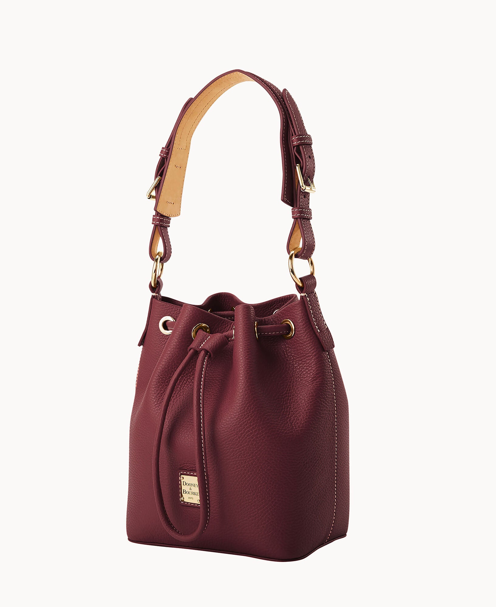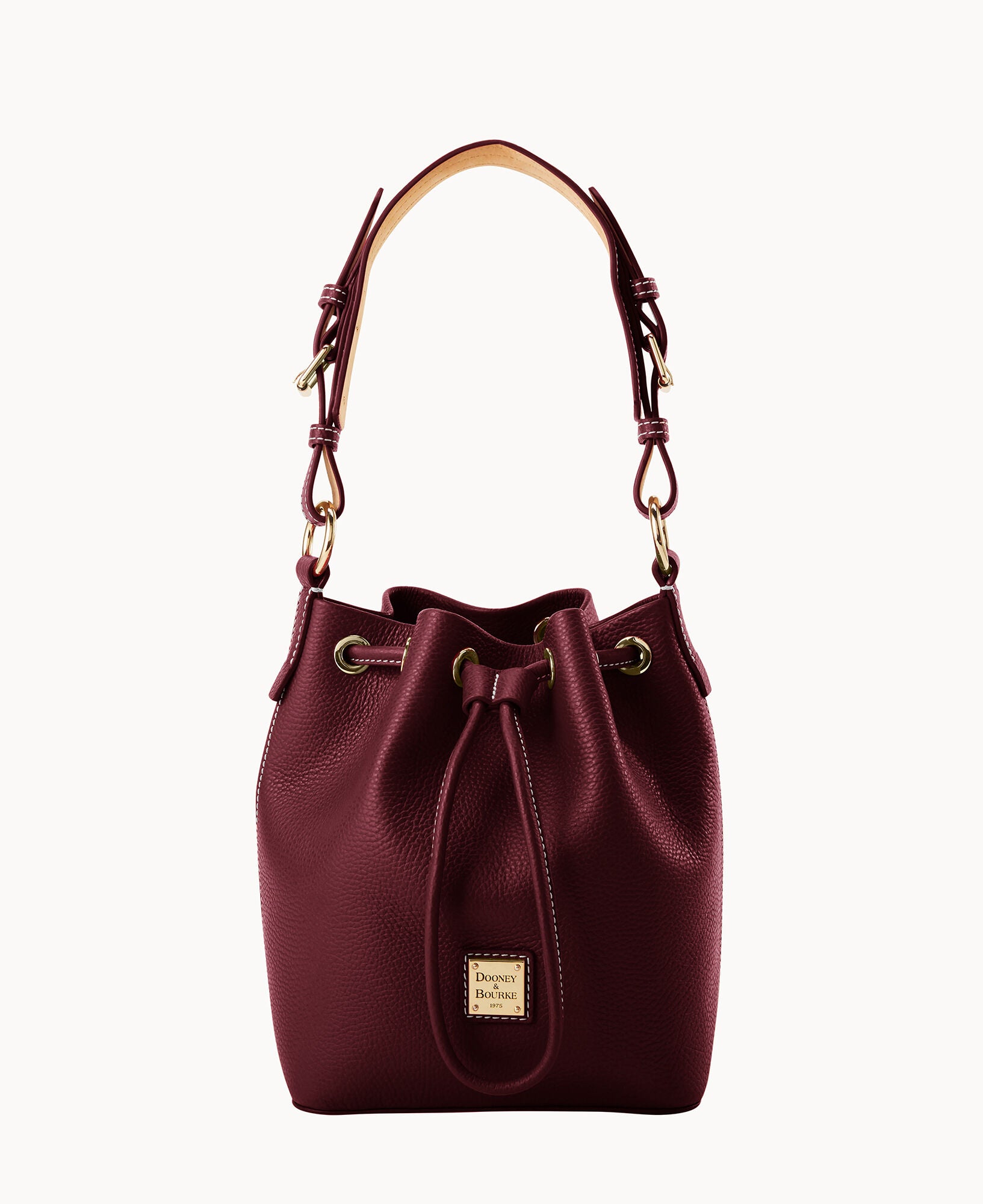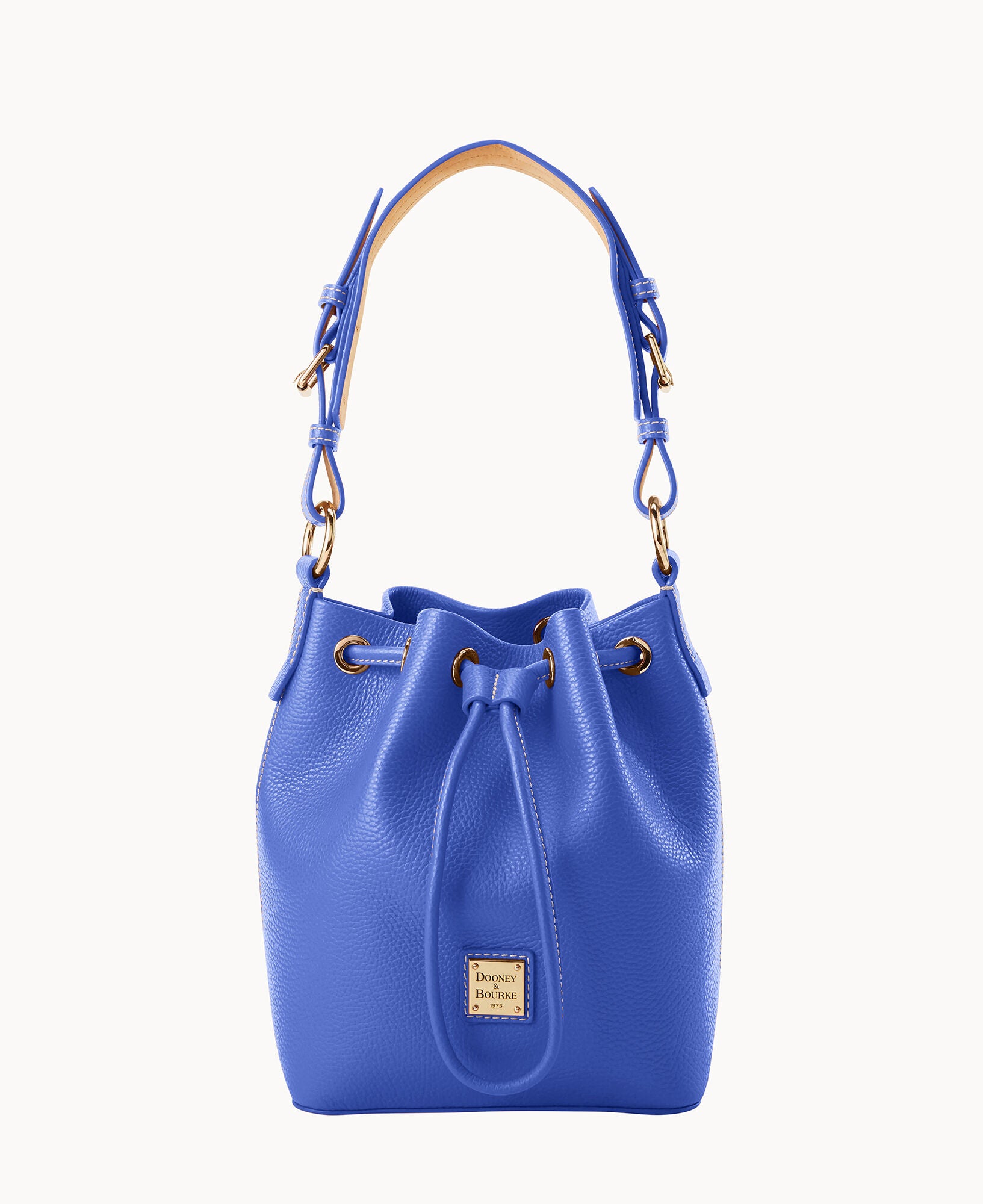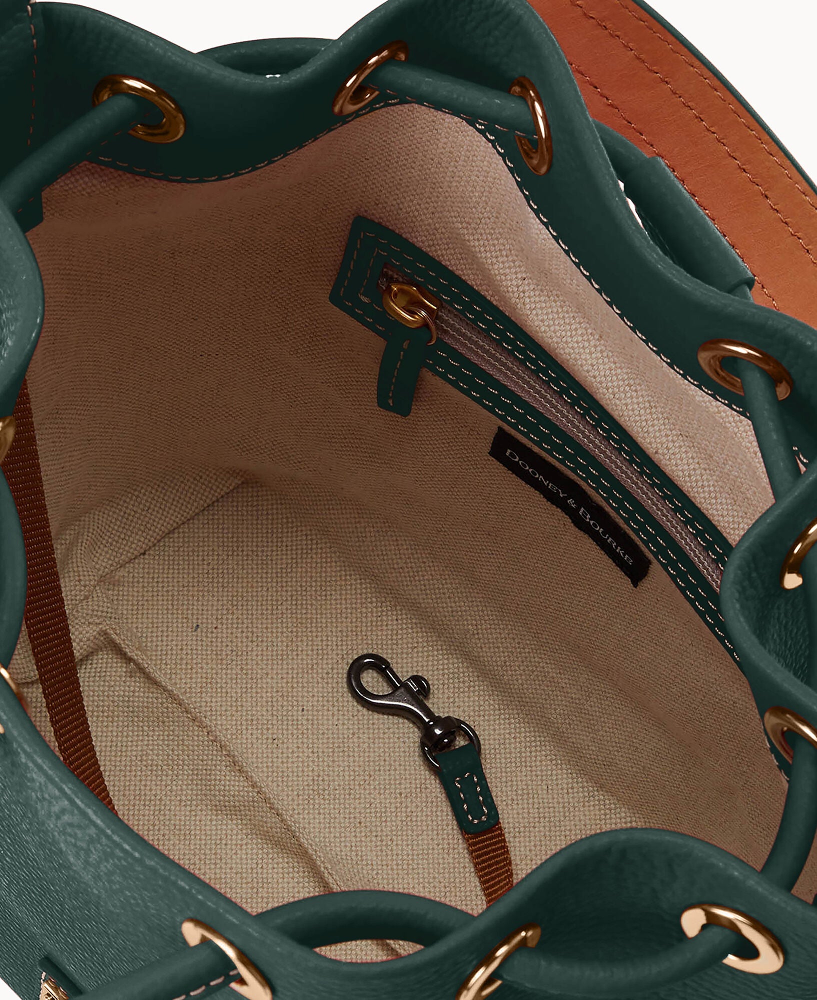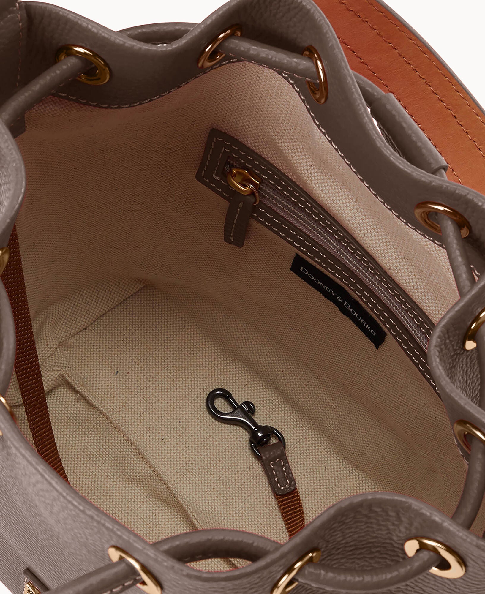 One inside pocket. One inside zip pocket. Inside key hook. Handle drop length 9″. Drawstring closure. Lined.