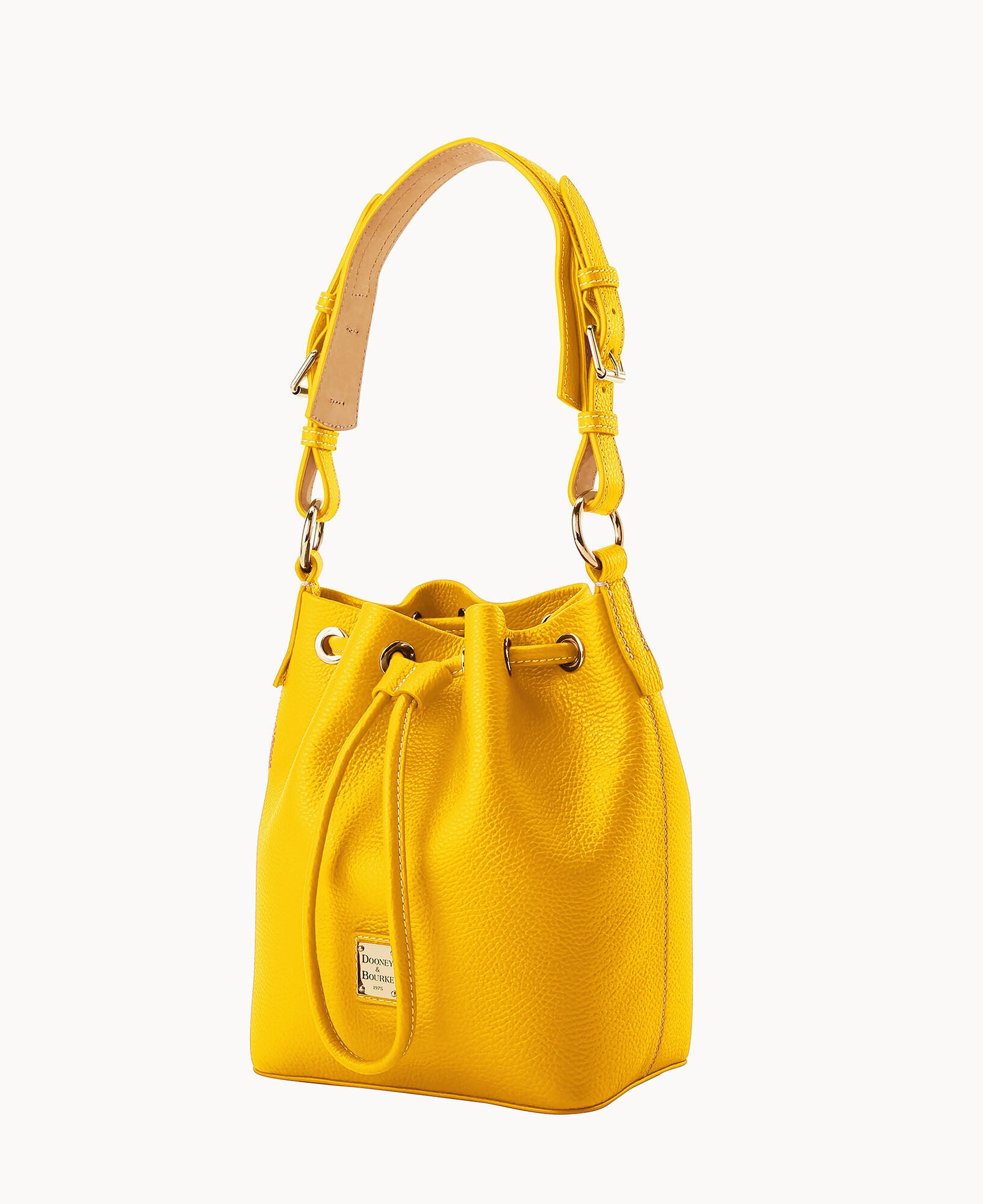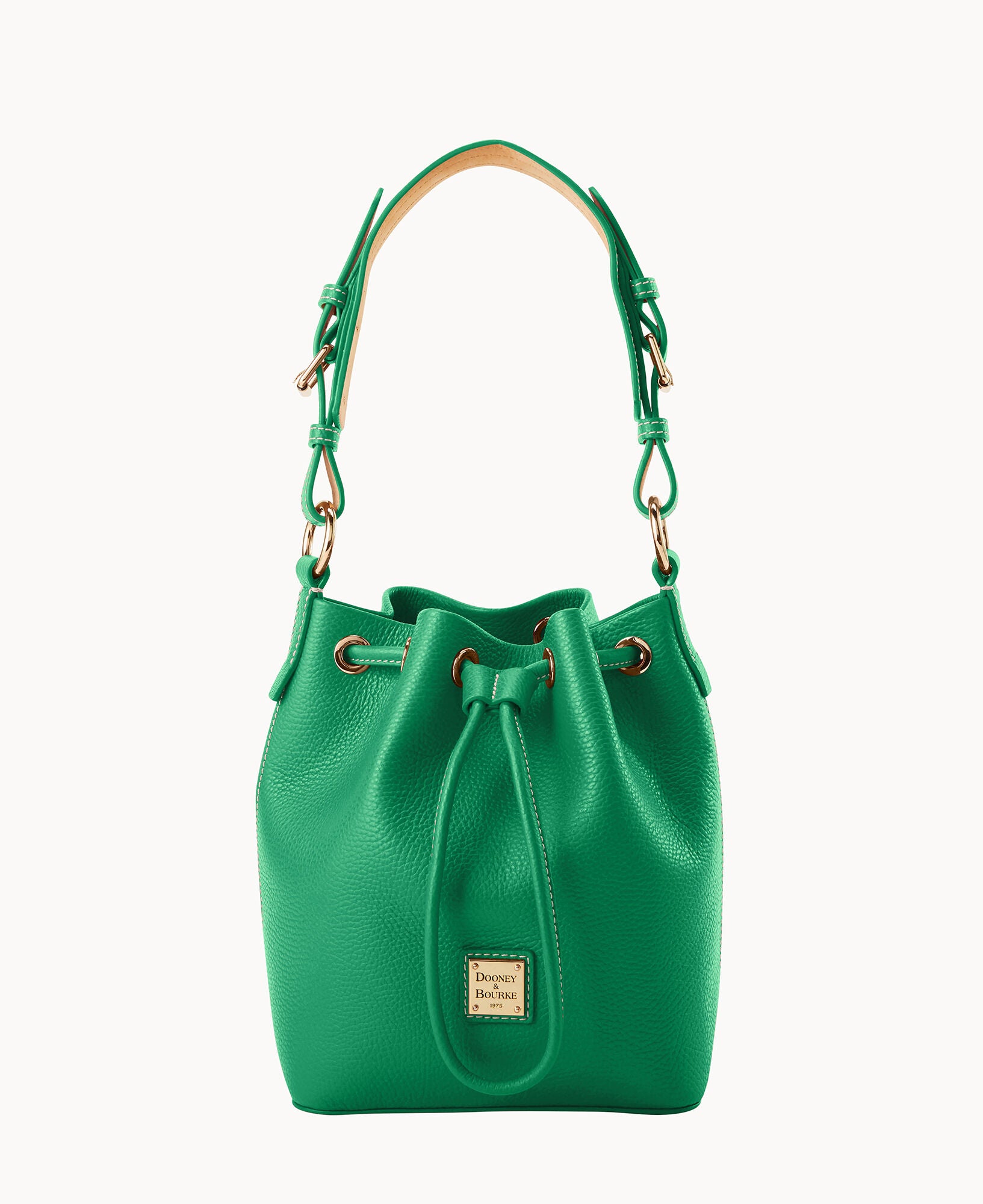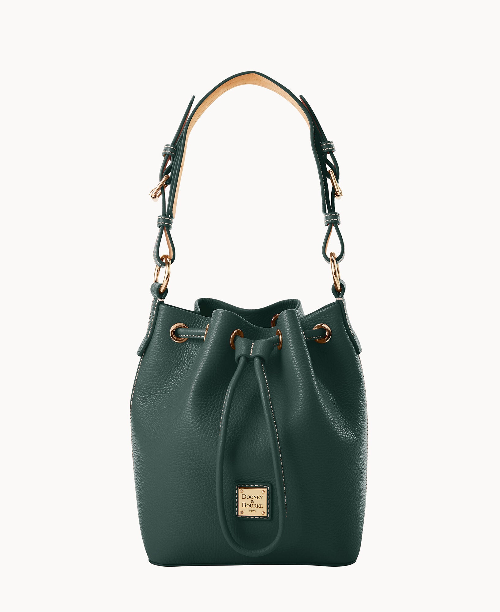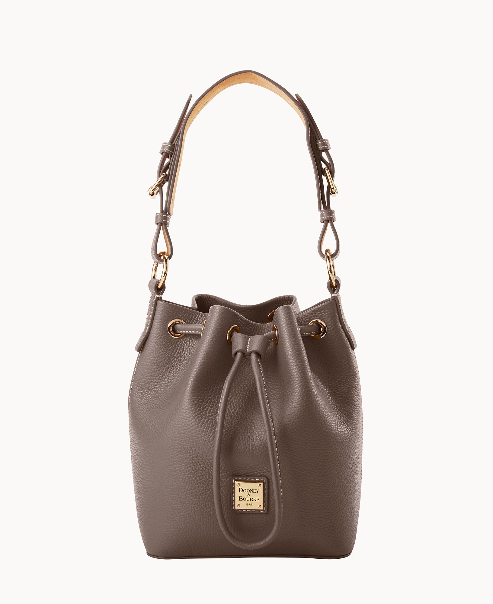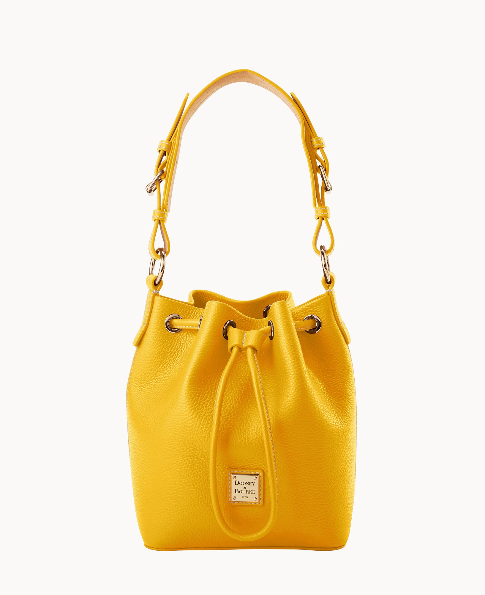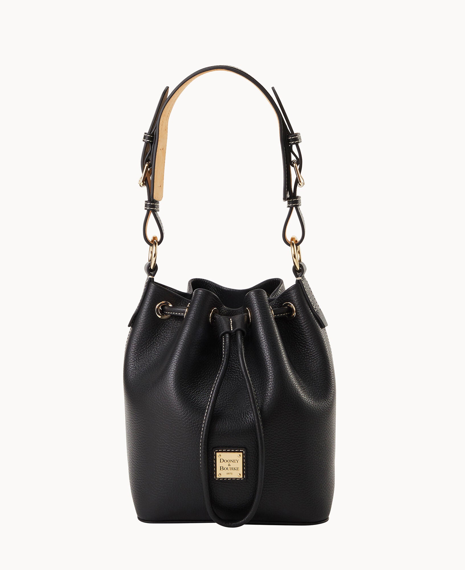 One inside pocket. One inside zip pocket. Inside key hook. Handle drop length 9″. Drawstring closure. Lined.