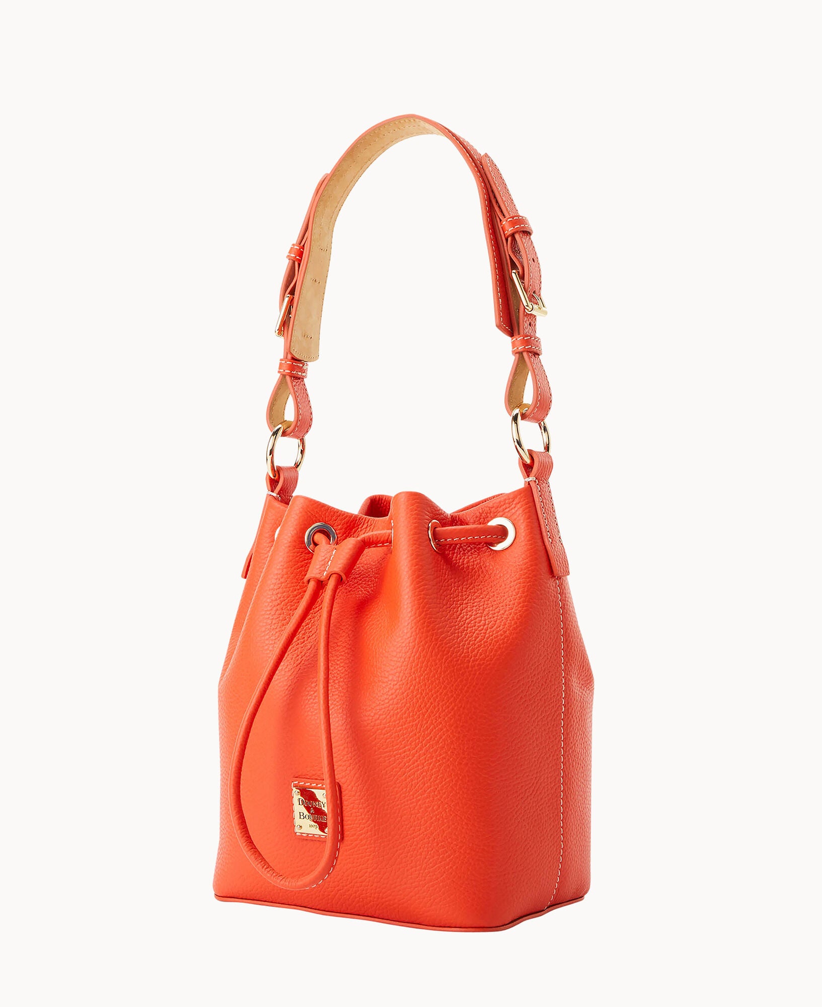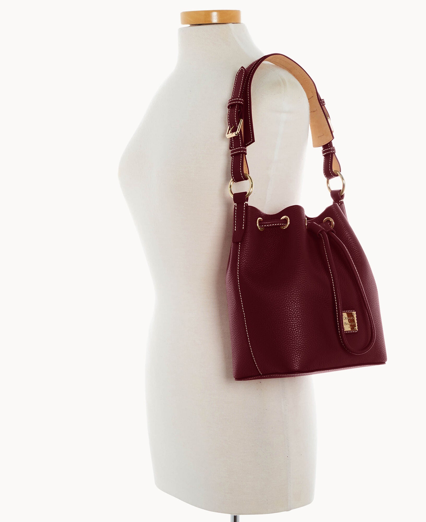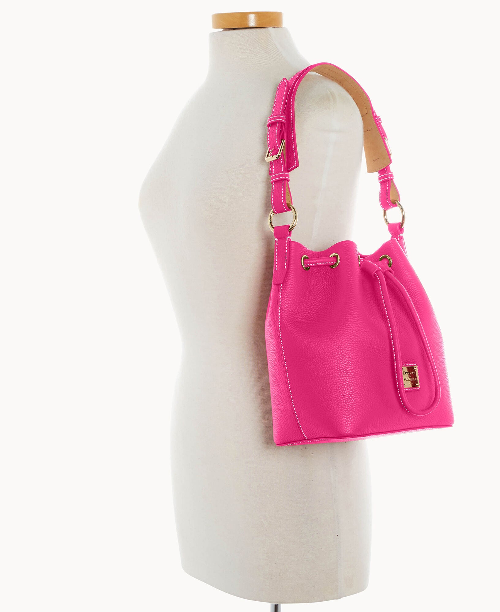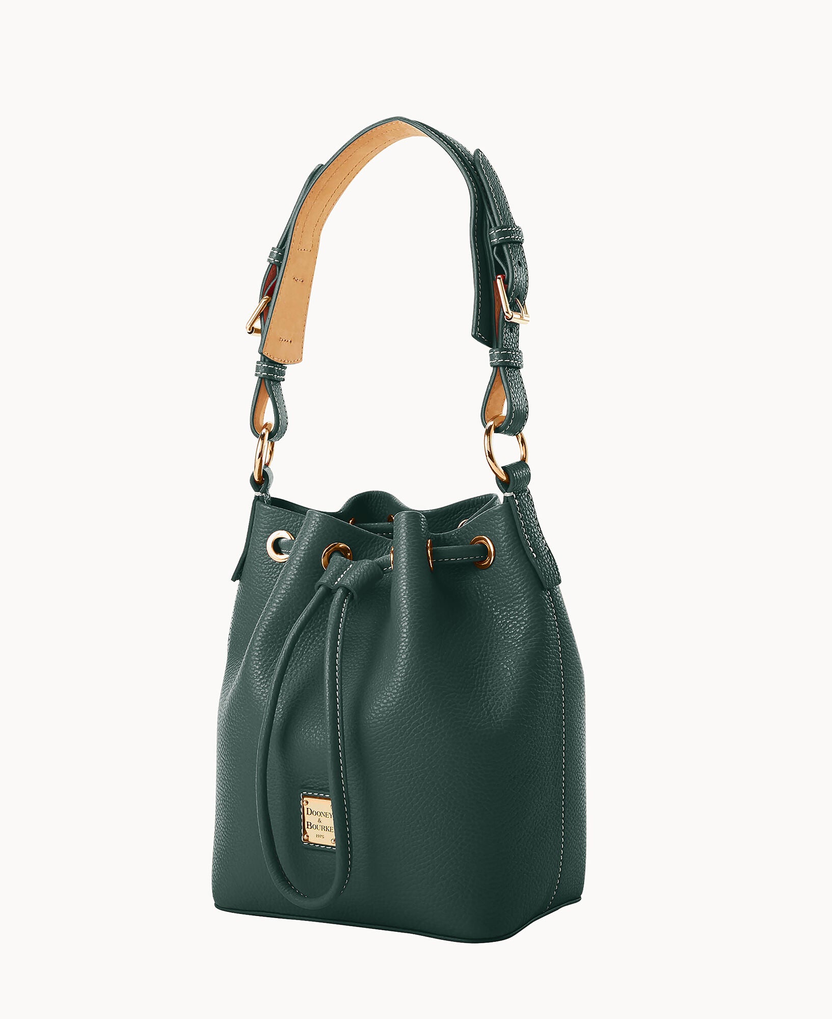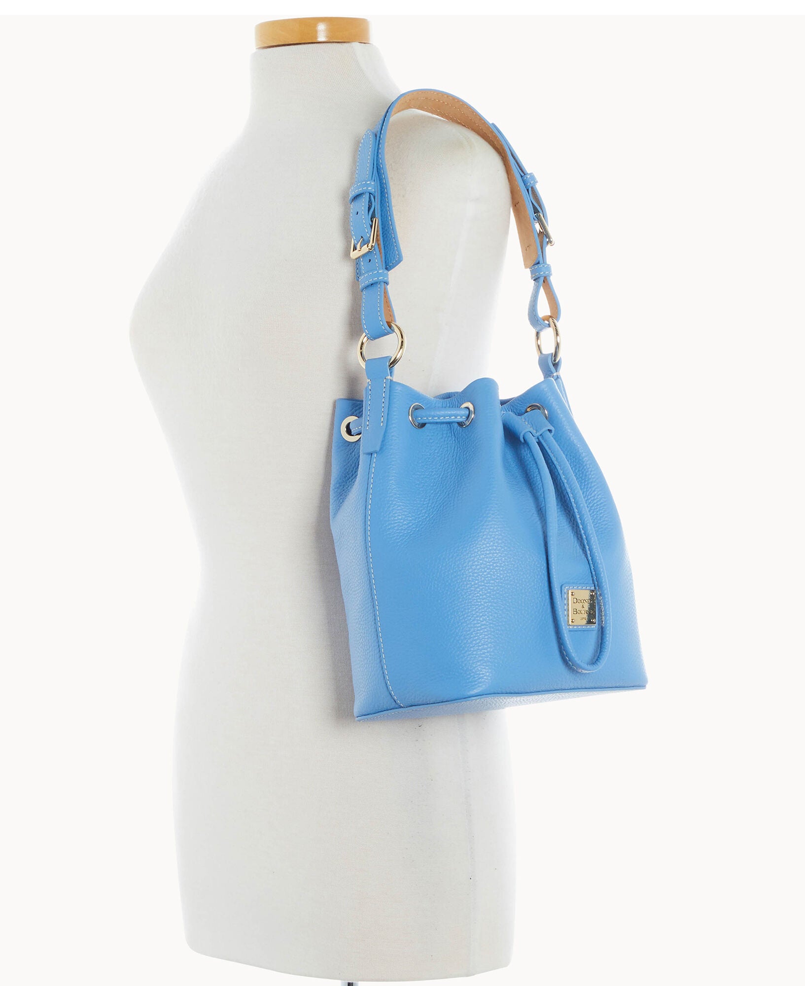 One inside pocket. One inside zip pocket. Inside key hook. Handle drop length 9″. Drawstring closure. Lined.
