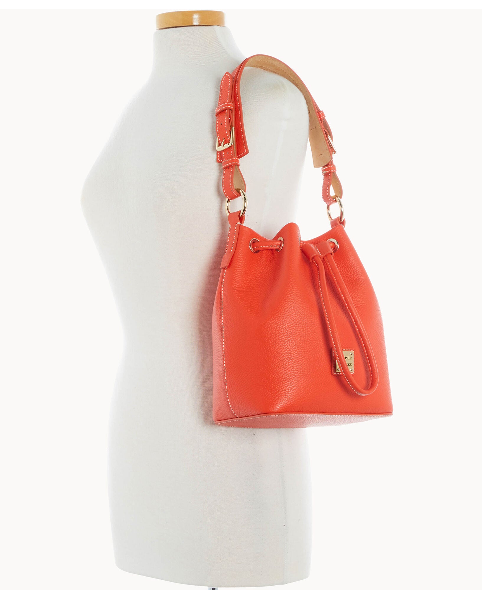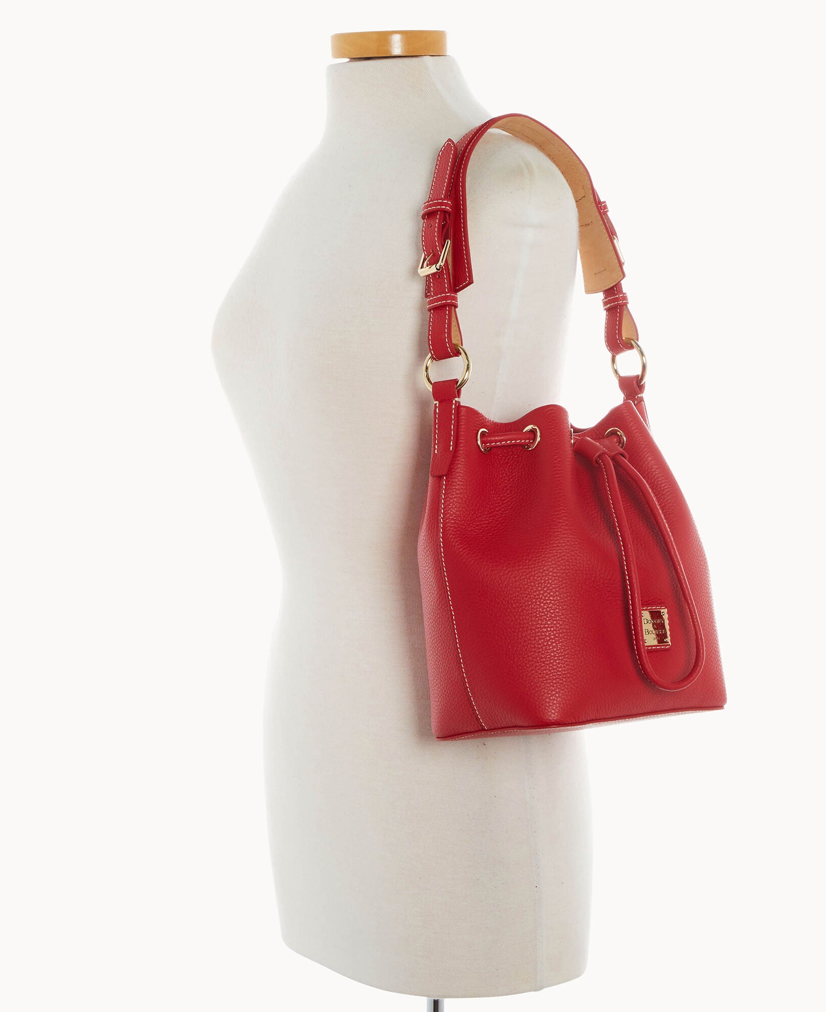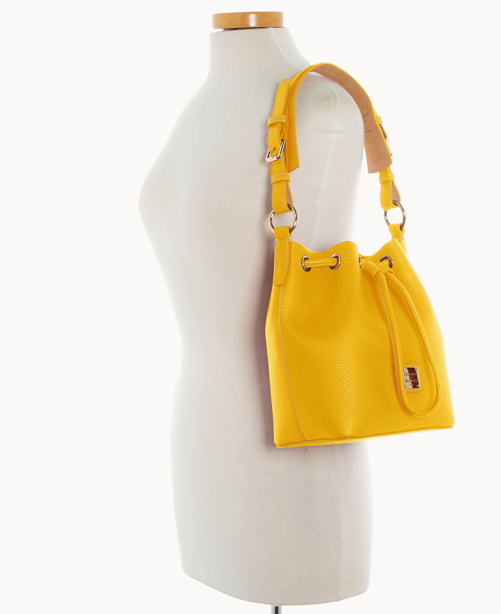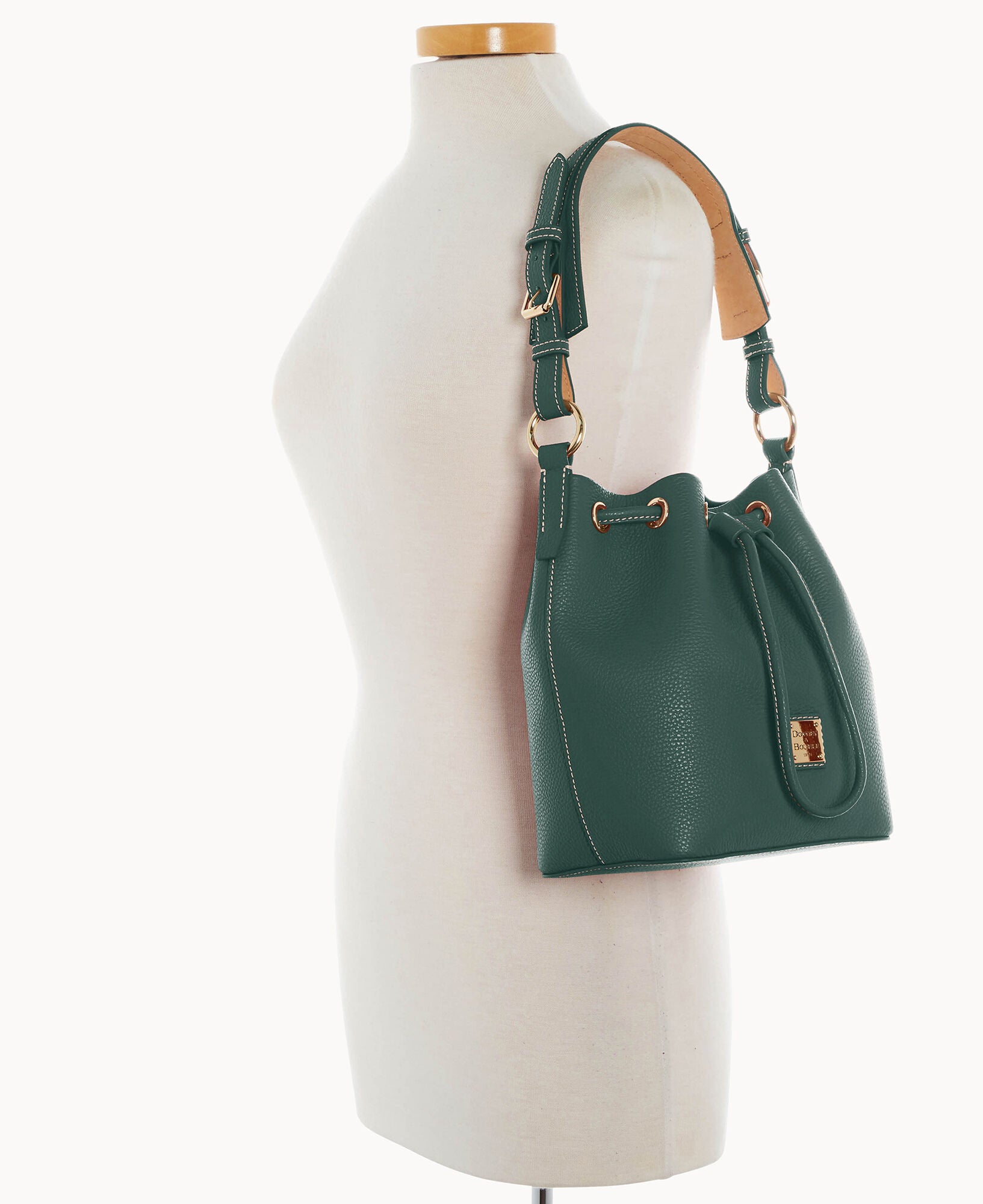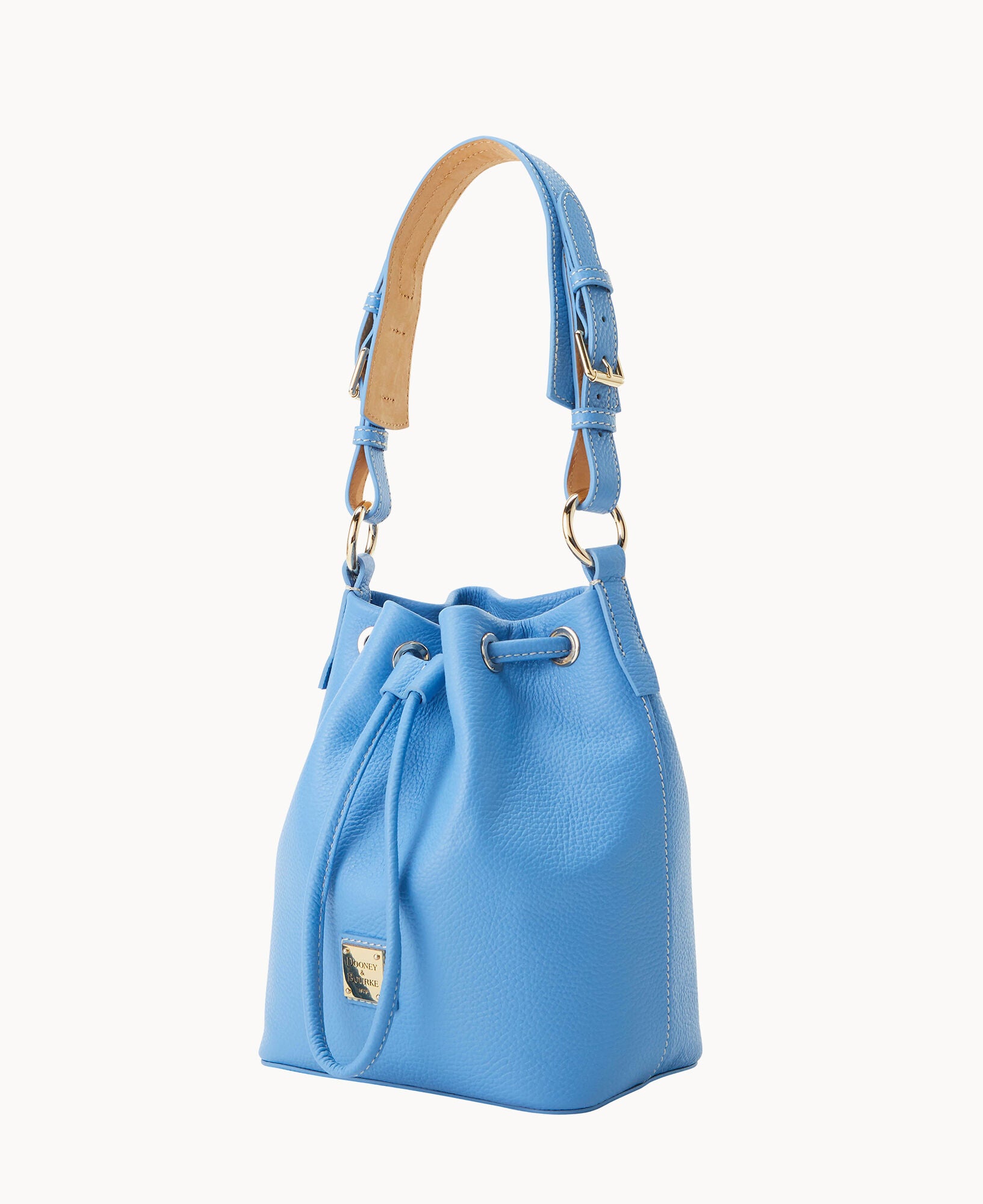 One inside pocket. One inside zip pocket. Inside key hook. Handle drop length 9″. Drawstring closure. Lined.