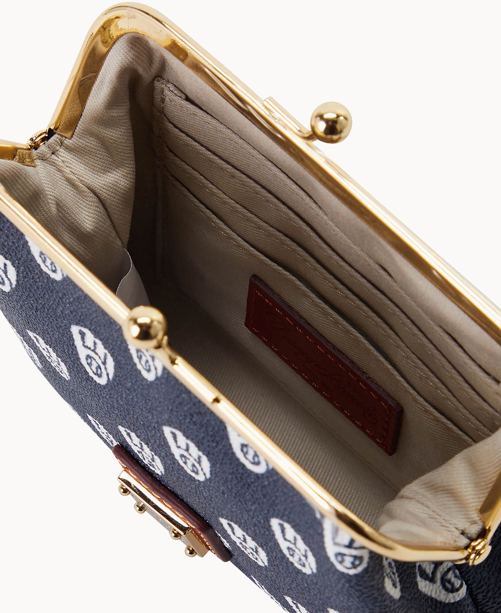 Six credit card slots. Lined. Frame closure.