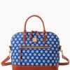 Outside front zip pocket. One inside zip pocket. Six credit card slots. Handle drop length 6″. Lined. Zipper closure.