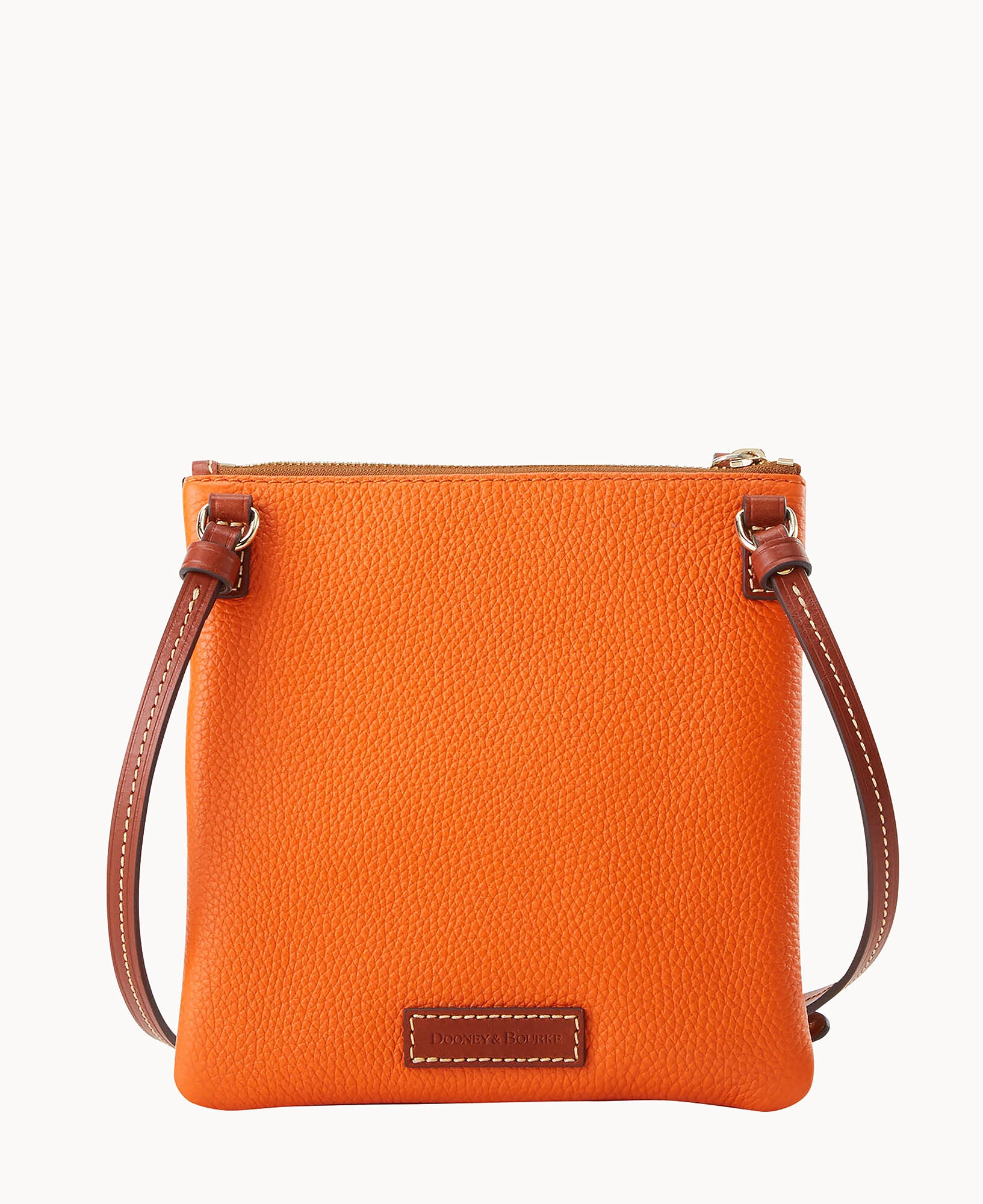Two outside zip pockets. Cell phone pocket. Adjustable shoulder strap. Strap drop length 24″. Lined. Zipper closure.