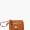 One outside zip pocket. One inside pocket. License pocket with window. Two bill compartments. Seven credit card slots. Lined. Feet. Snap closure.