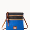 One outside zipper pocket. Two inside pockets. One inside cell phone pocket. One inside zipper pocket. Inside key hook. Strap drop length 9.75″. Zipper closure. Lined. Feet.