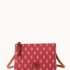 Two outside zip pockets. Cell phone pocket. Adjustable shoulder strap. Strap drop length 24″. Lined. Zipper closure.
