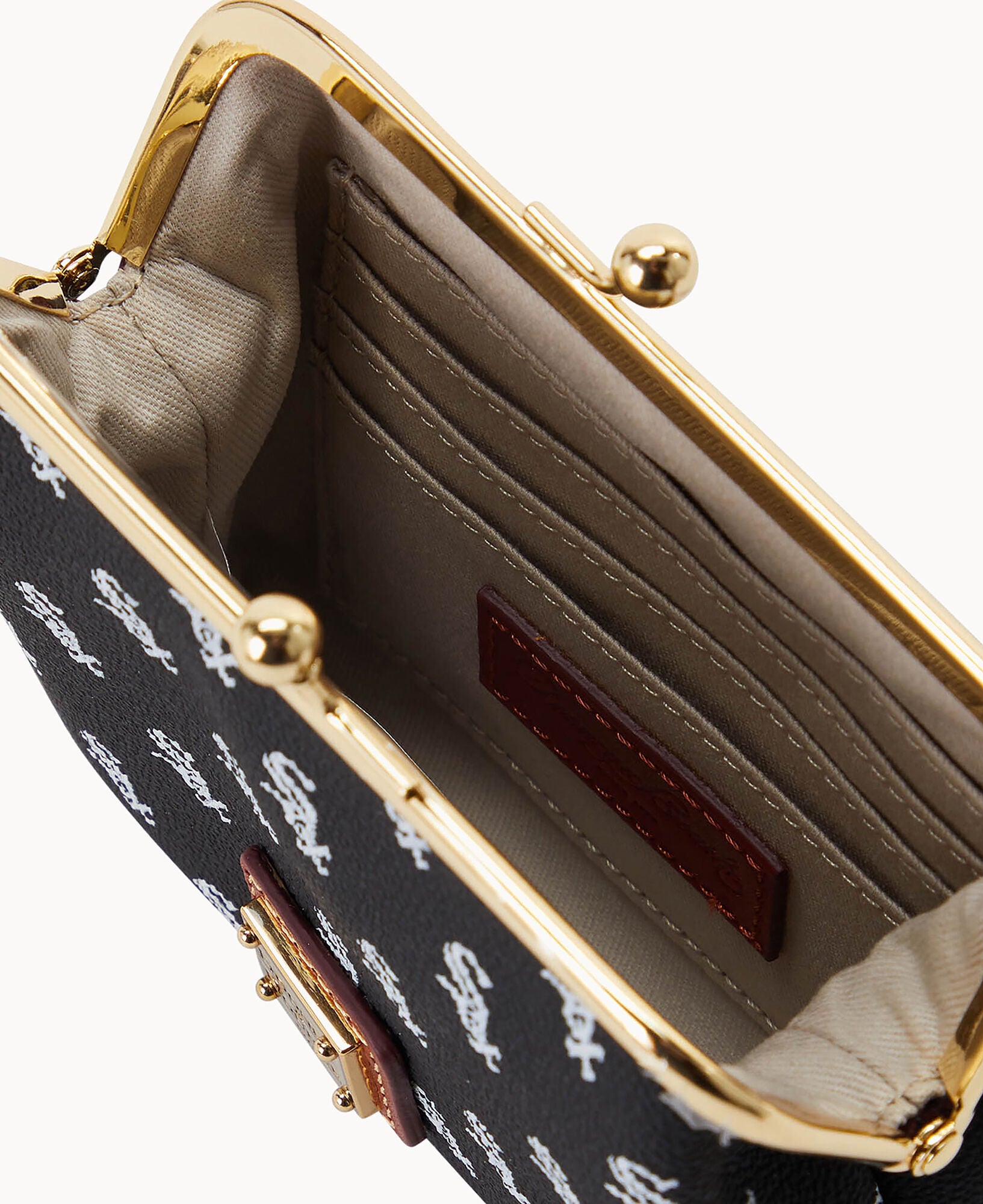 Six credit card slots. Lined. Frame closure.