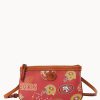One inside zip pocket. One inside slip pocket. Inside key hook. Strap drop length 12″. Lined. Zipper closure.