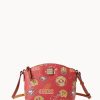 Two outside zip pockets. Cell phone pocket. Adjustable shoulder strap. Strap drop length 24″. Lined. Zipper closure.
