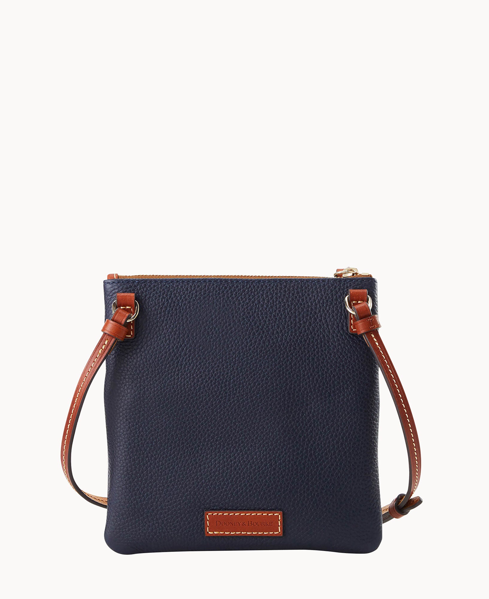 Two outside zip pockets. Cell phone pocket. Adjustable shoulder strap. Strap drop length 24″. Lined. Zipper closure.