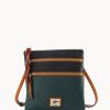 One outside zipper pocket. Two inside pockets. One inside cell phone pocket. One inside zipper pocket. Inside key hook. Strap drop length 9.75″. Zipper closure. Lined. Feet.